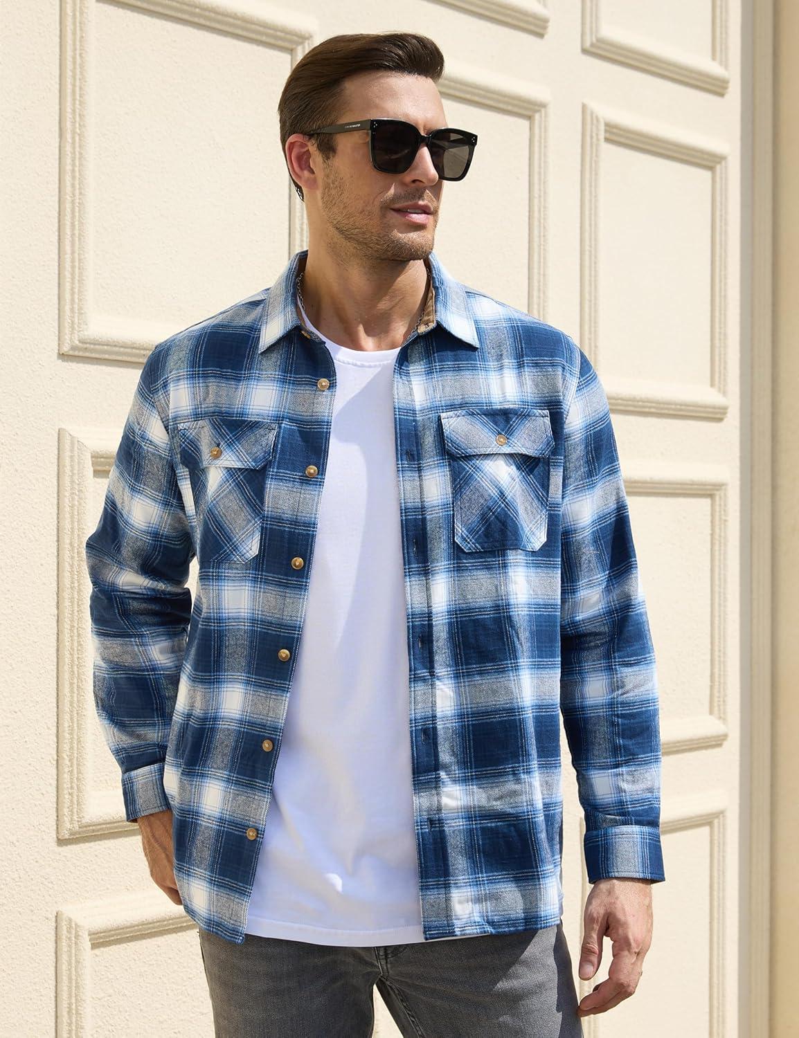 Be the first to review “TACVASEN Flannel Shirt for Men Long Sleeve Plaid Shirt Corduroy Cuff Collar Casual Lightweight Cotton Button Down Shirts(Blue White)”