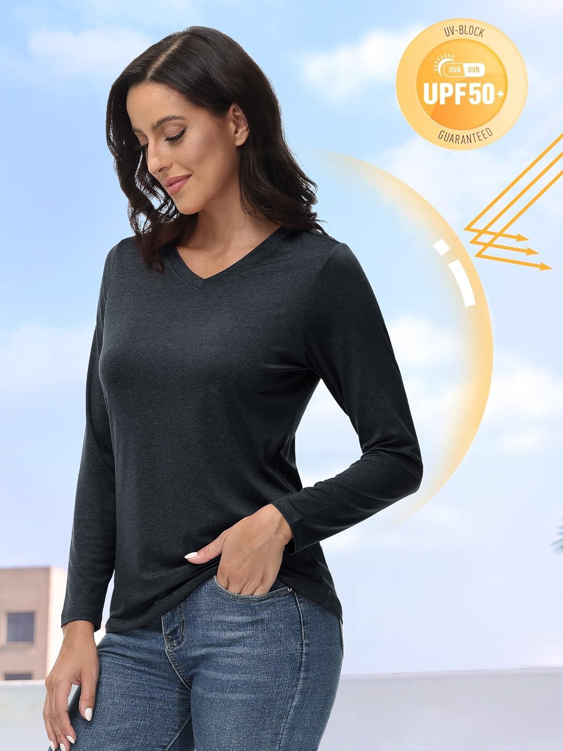 TACVASEN Long Sleeve Shirts Women UPF 50+ Golf Sun Shirts Exercise SPF Shirt Performance Rash Guard Outdoor Hiking Shirts(Dark Grey)