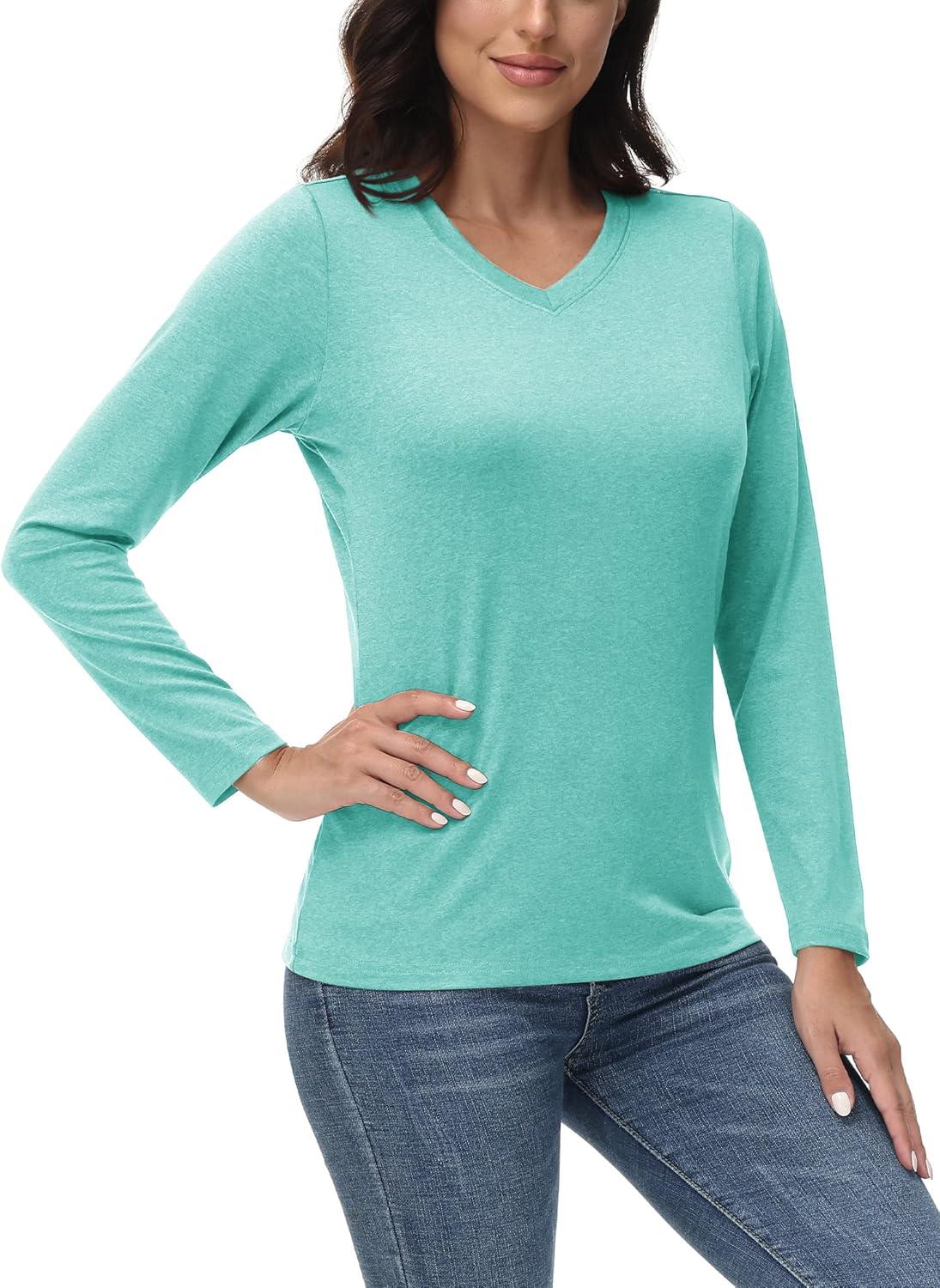 TACVASEN Long Sleeve Shirts Women UPF 50+ Golf Sun Shirts Exercise SPF Shirt Performance Rash Guard Outdoor Hiking Shirts(Light Green)