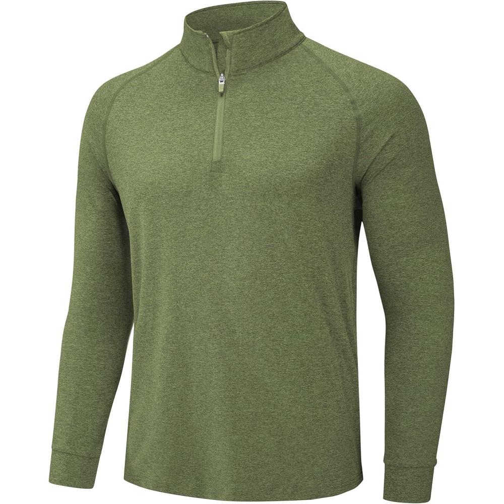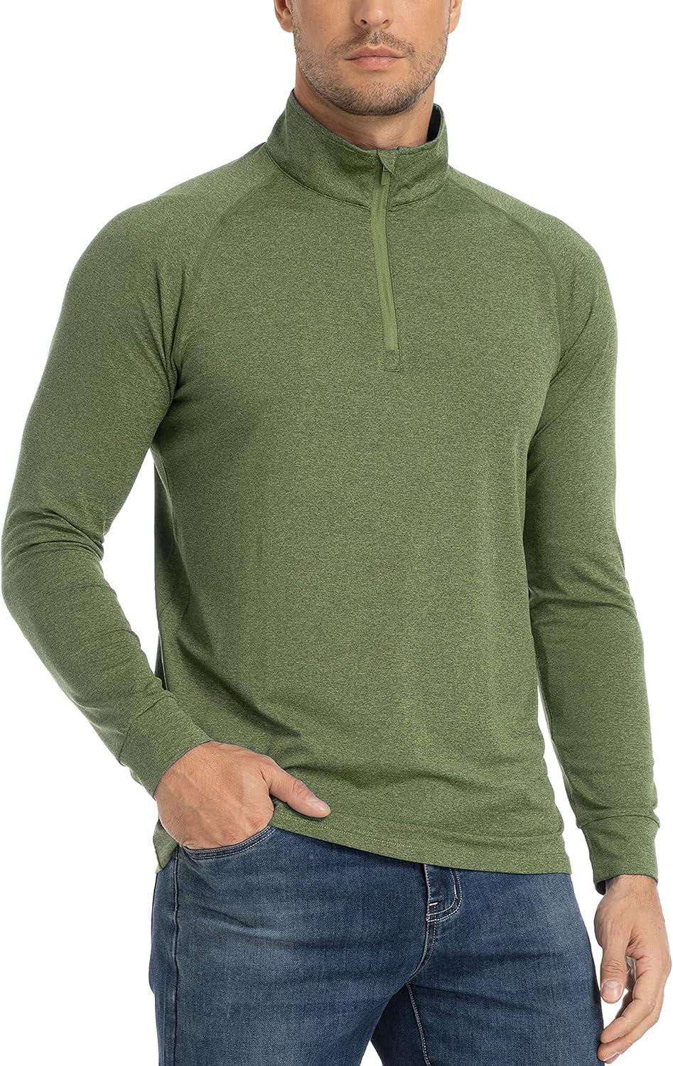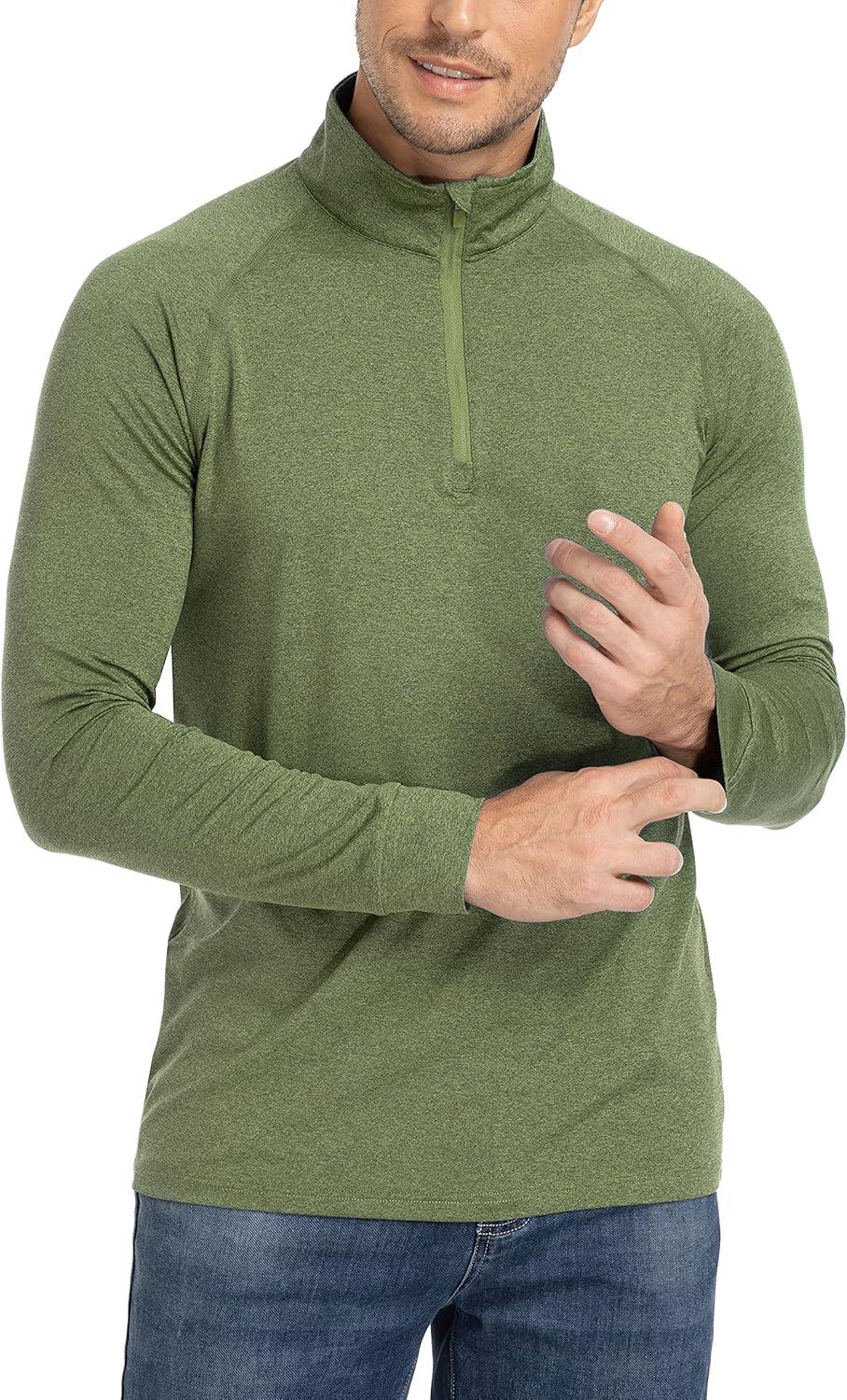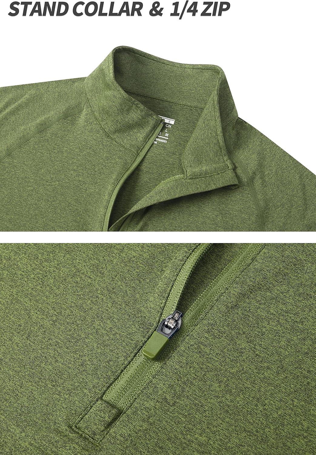 TACVASEN Men’s 1/4 Zip Shirts Long Sleeves Lightweight Sun Protection UPF 50+ Tops Running Workout Golf(Green)