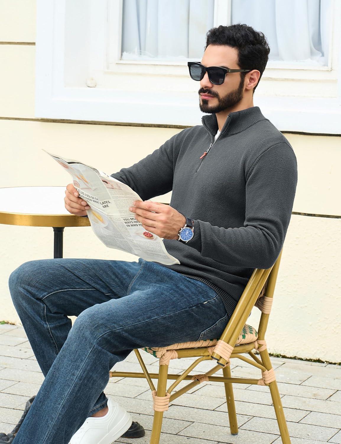 TACVASEN Men’s 1/4 Zip Sweaters Cotton Casual Pullover Sweaters Knit Fall Winter Sweatshirts(#03 Dark Grey)