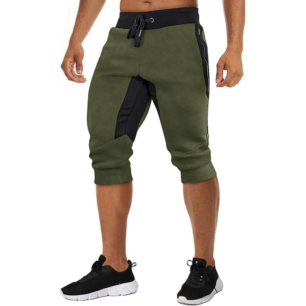 TACVASEN Men’s 3/4 Long Cotton Casual Shorts Jogger Capri Pants Zipper Army Green