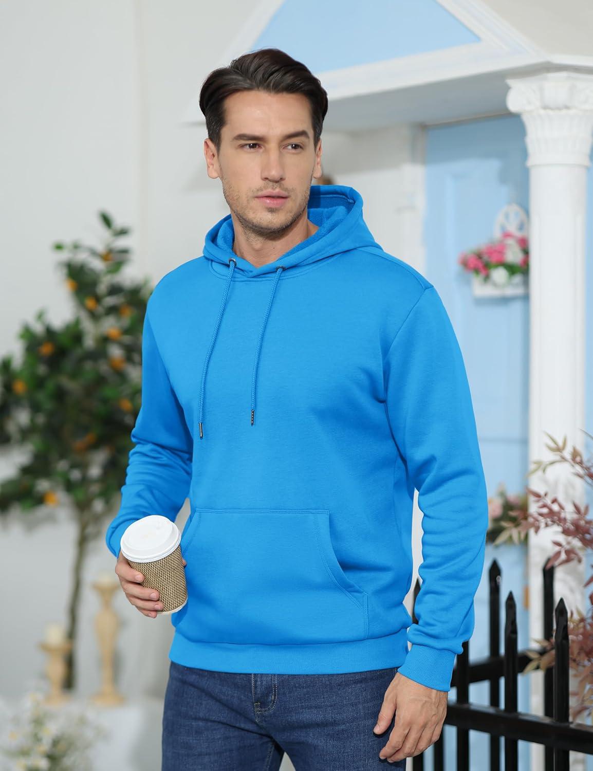 TACVASEN Men’s Athletic Hoodies Fleece Lined Sweatshirt Pullover Soft Casual Hooded Sweatshirt with Pocket(Ice Blue)