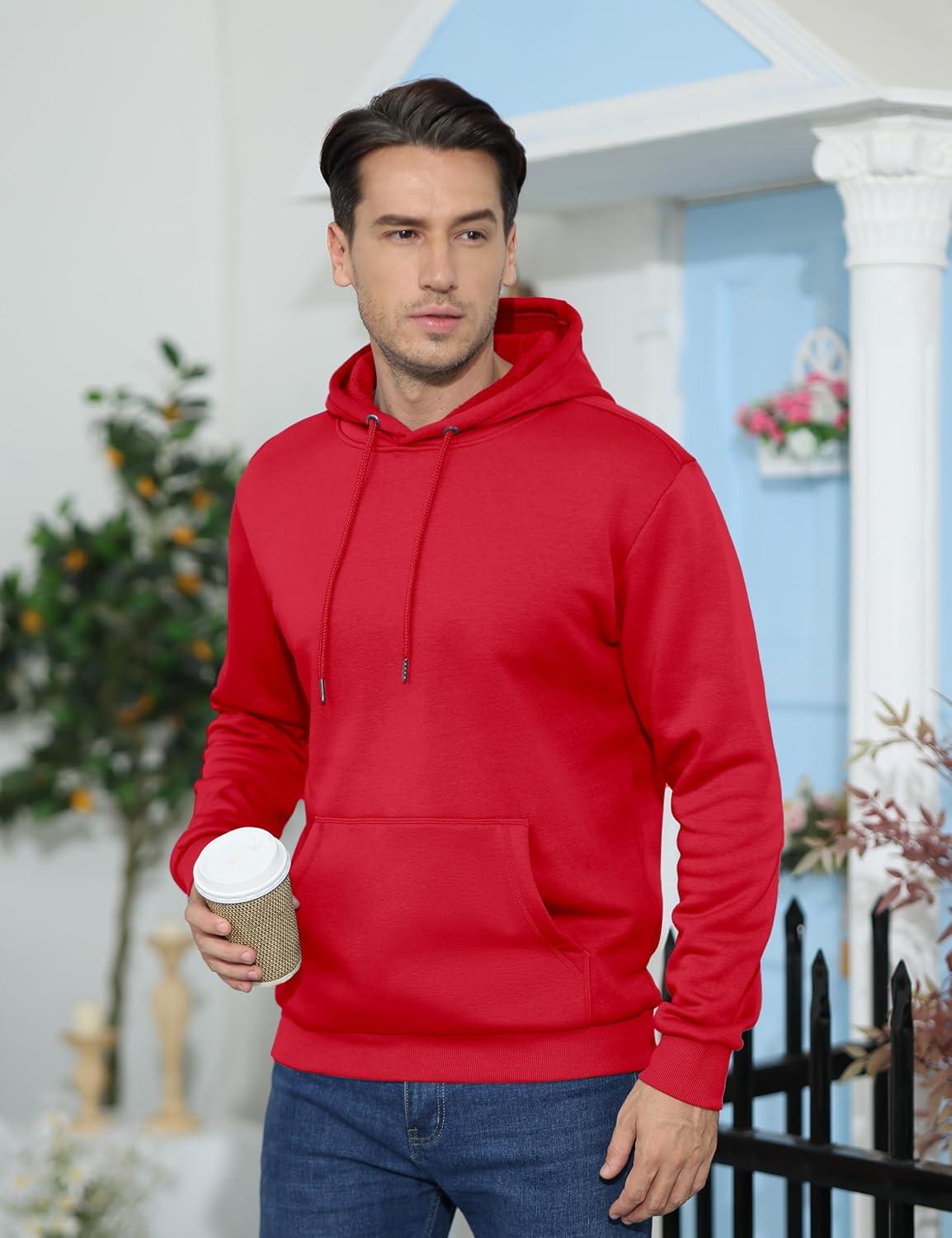 TACVASEN Men’s Athletic Hoodies Fleece Lined Sweatshirt Pullover Soft Casual Hooded Sweatshirt with Pocket(T-red)