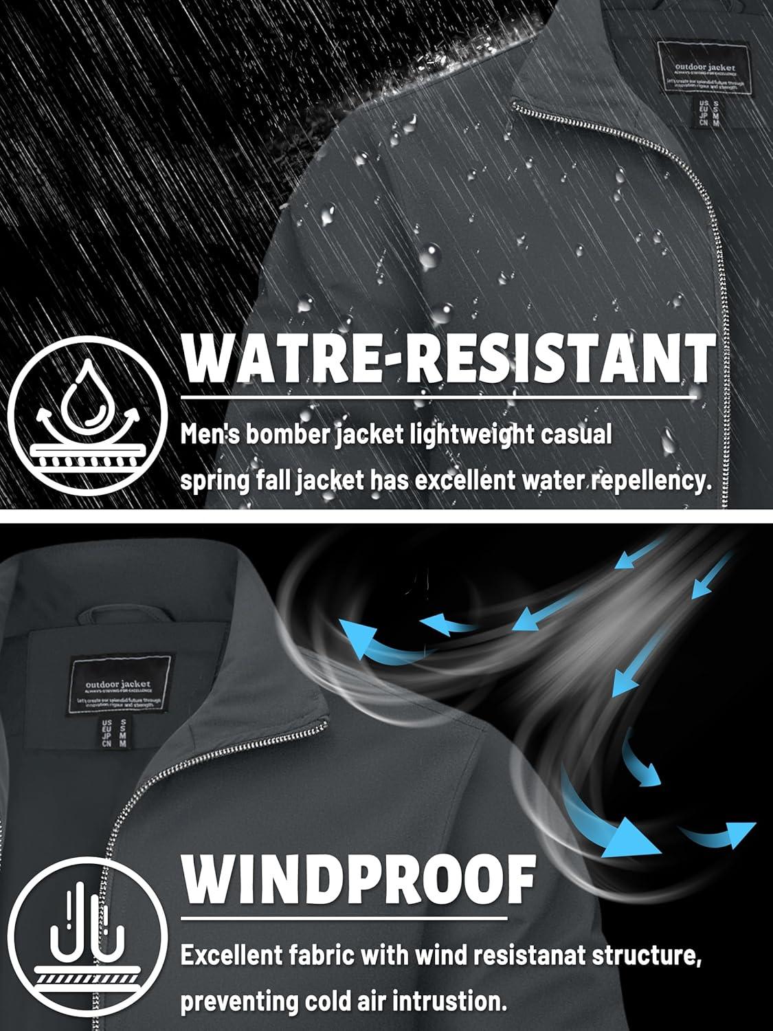imageTACVASEN Mens Bomber Jacket Lightweight Casual Windproof Running Spring Windbreaker Sportswear OuterwearBlack