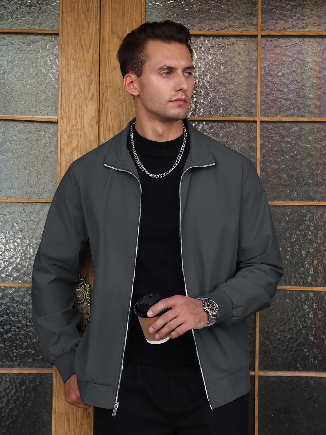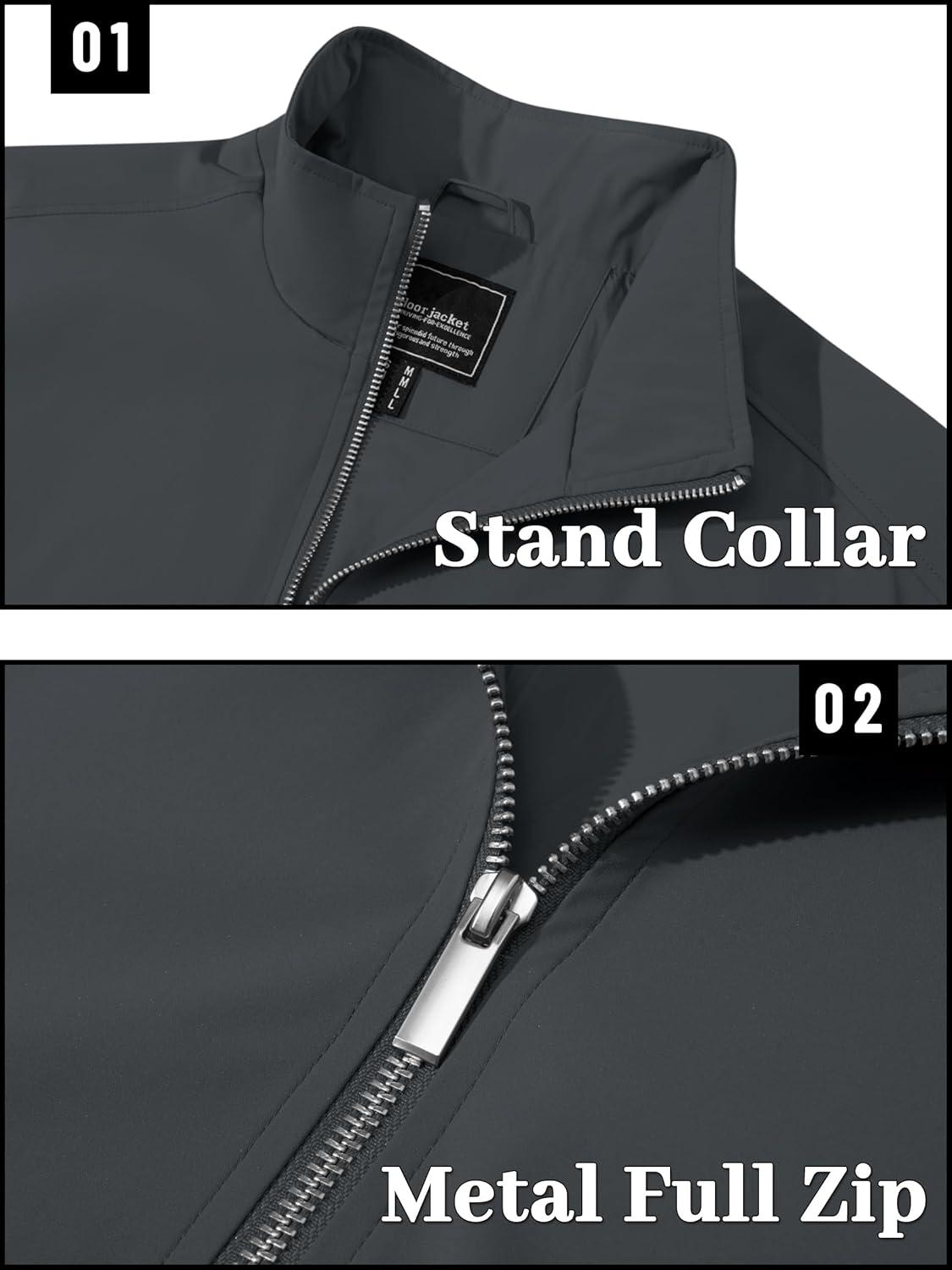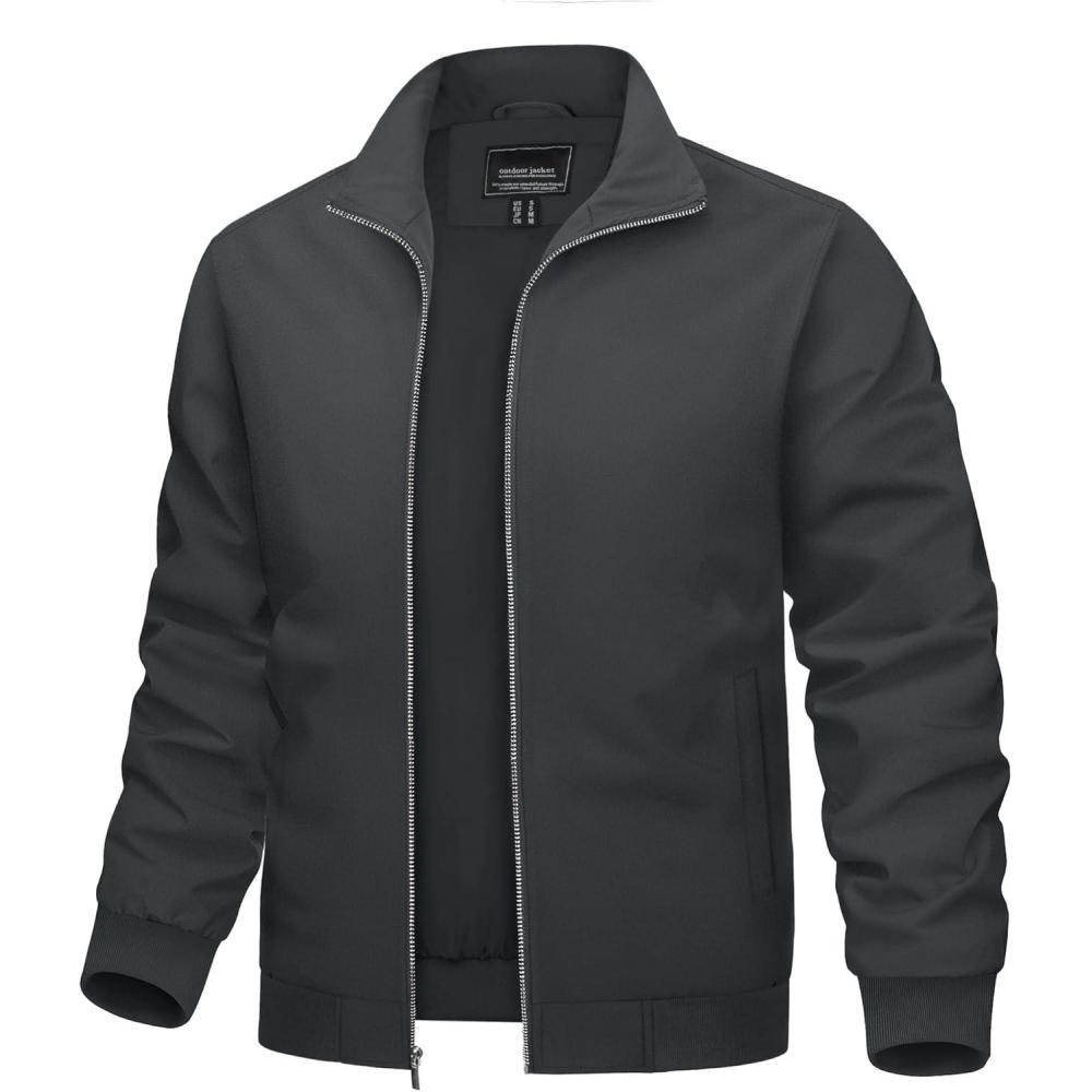 TACVASEN Men’s Bomber Jacket Lightweight Casual Windproof Running Spring Windbreaker Sportswear Outerwear(Dark Grey)