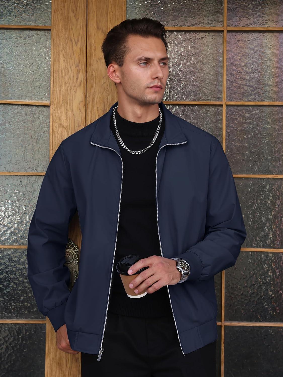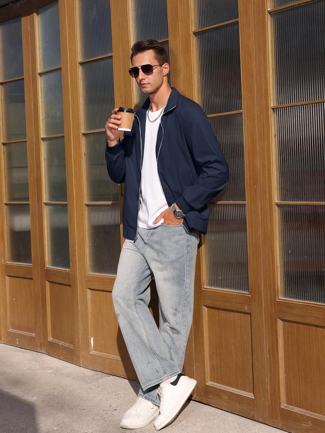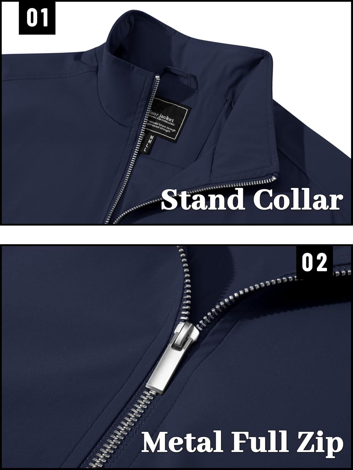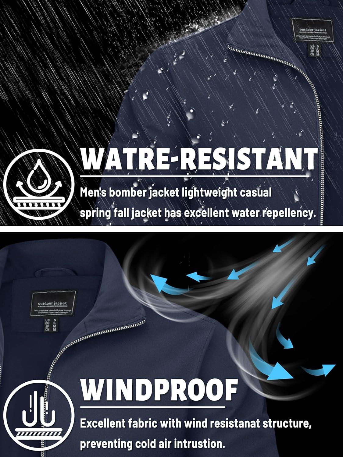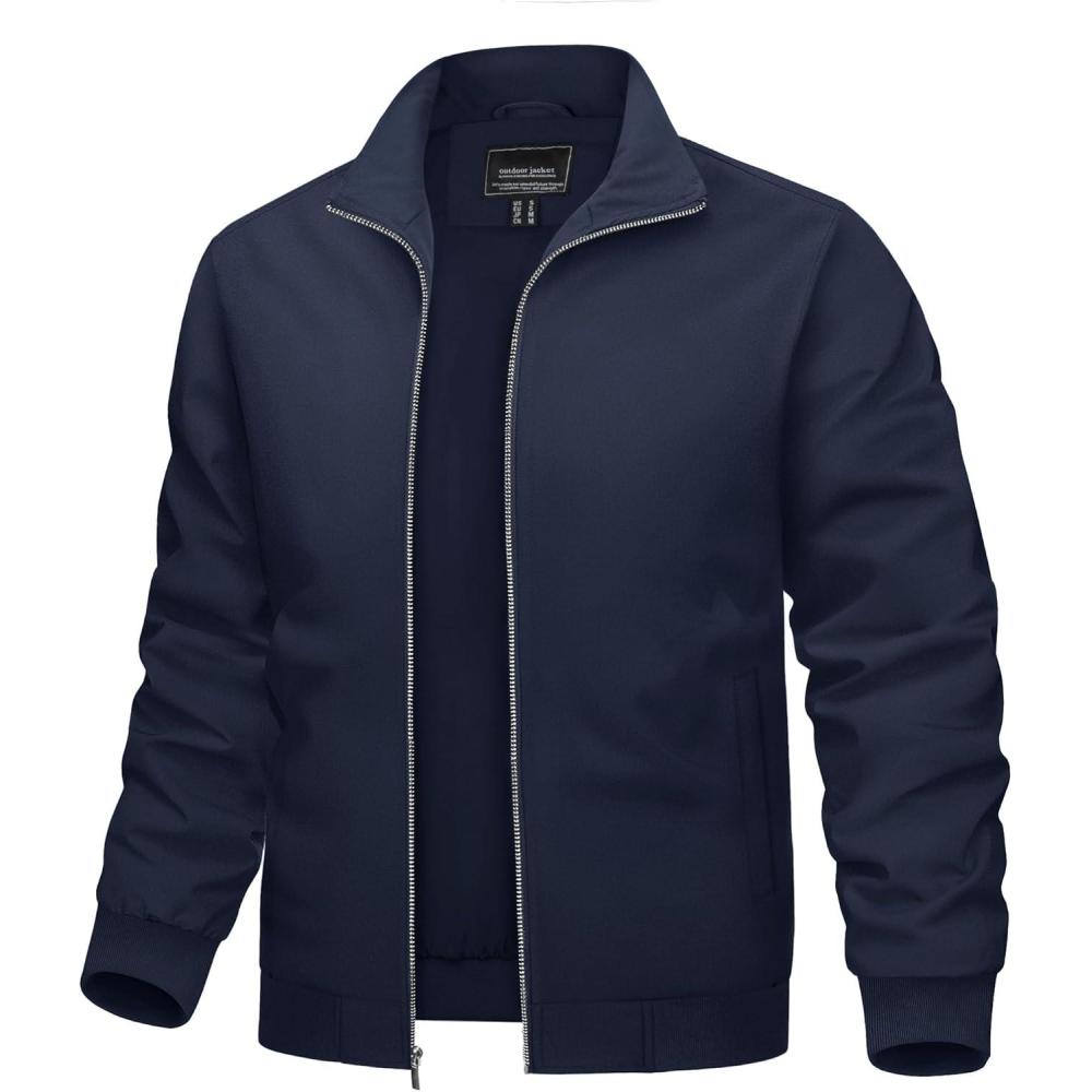 TACVASEN Men’s Bomber Jacket Lightweight Casual Windproof Running Spring Windbreaker Sportswear Outerwear(Navy)