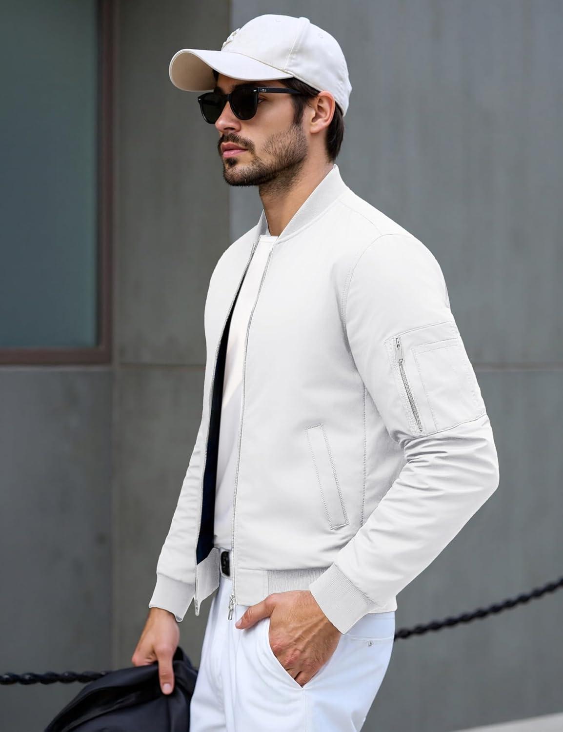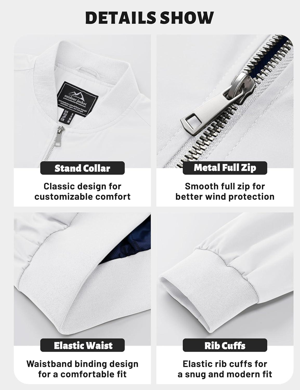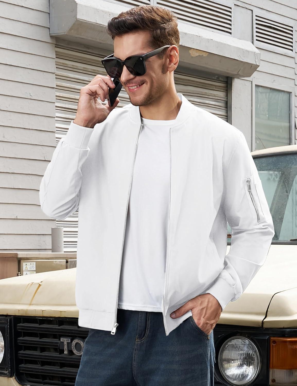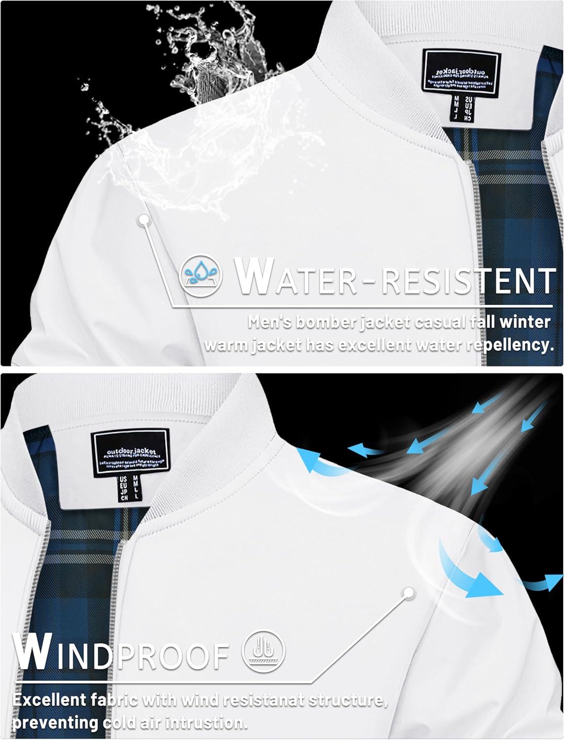 TACVASEN Mens Bomber Jacket Plaid Lined Casual Windbreaker Stylish Light Fall Spring Jackets Windproof Zip Up Coat(#02 White)