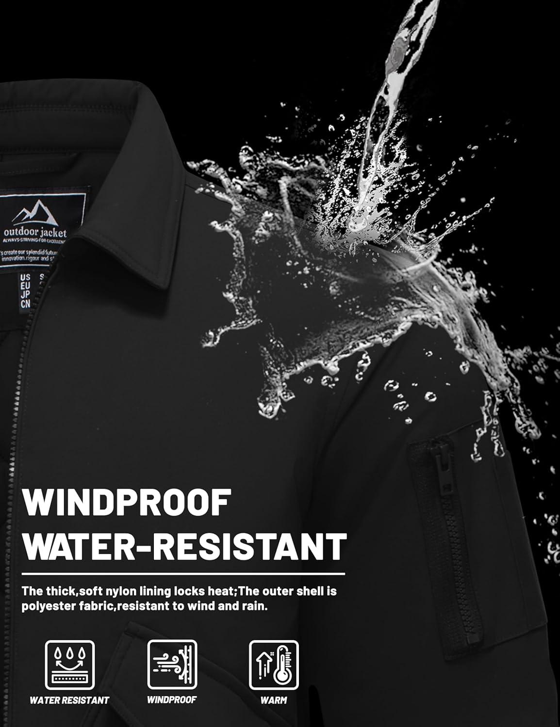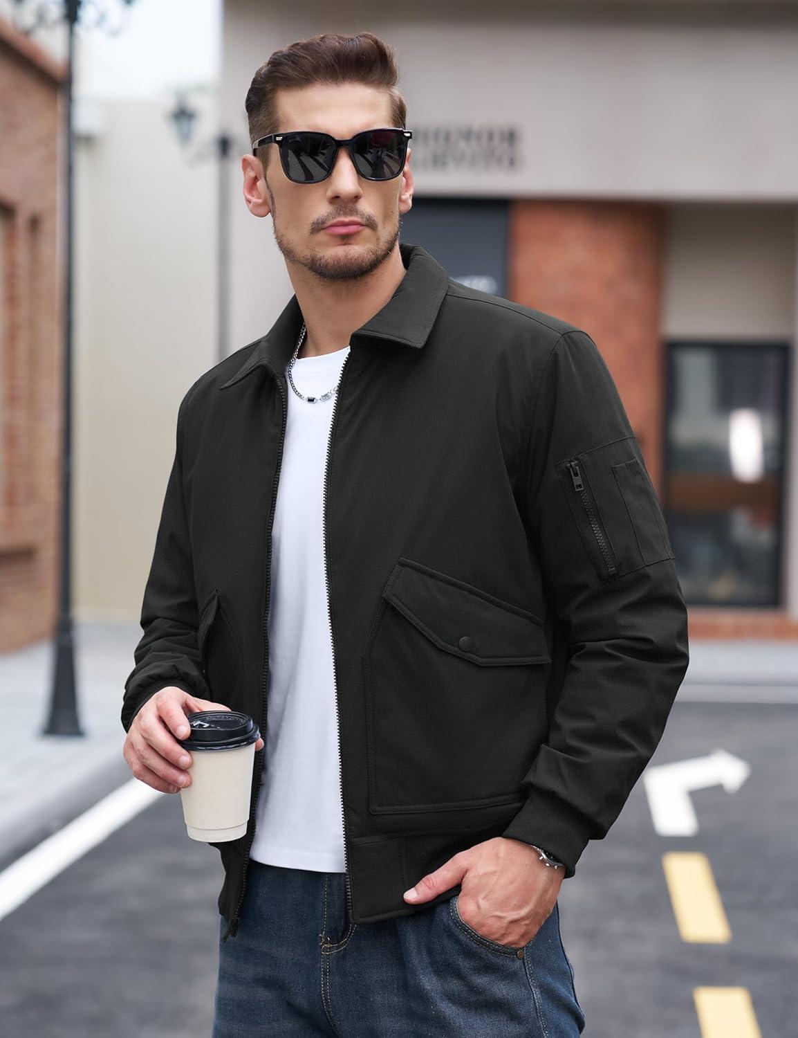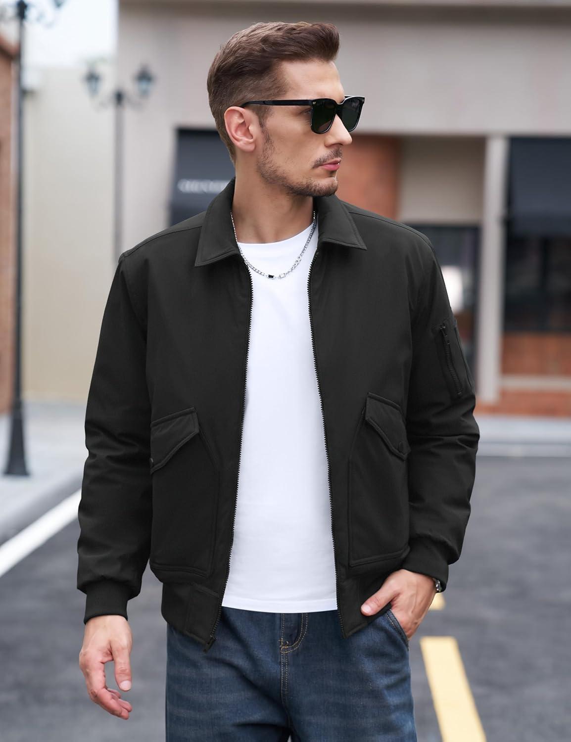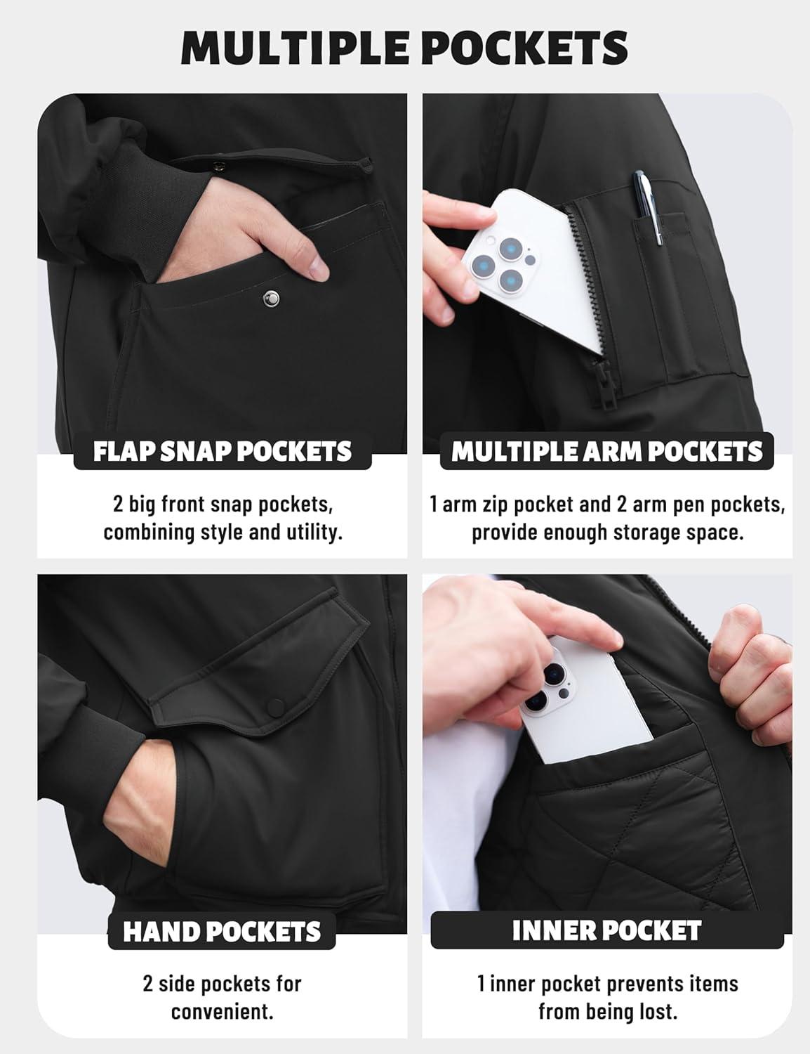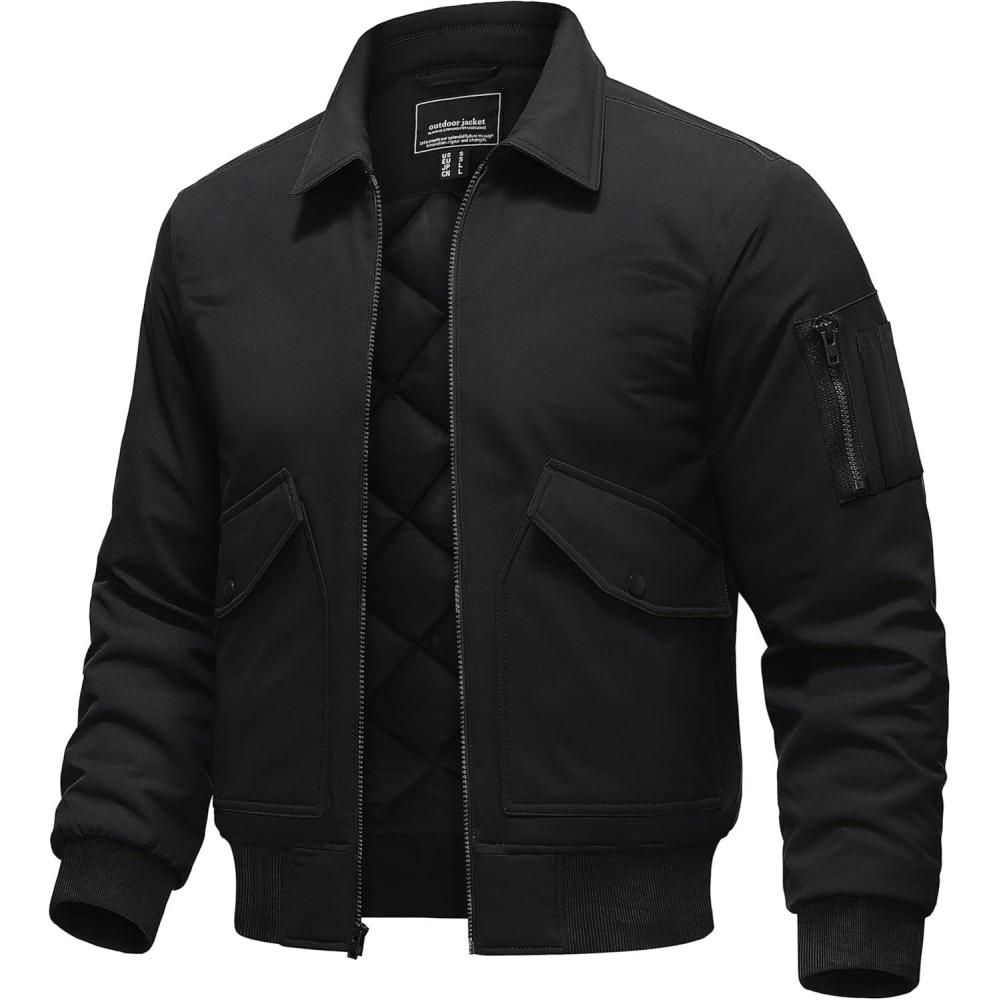 TACVASEN Men’s Bomber Jacket Thick Quilted Jackets Zip Up Water Repellent Windproof Winter Warm Coat with 6 Pockets(Black)