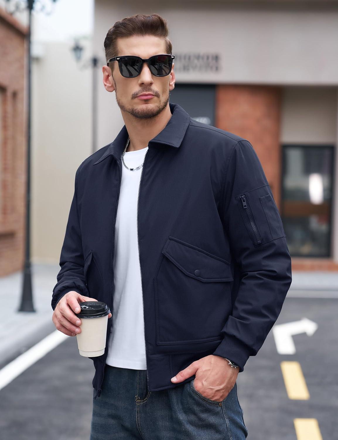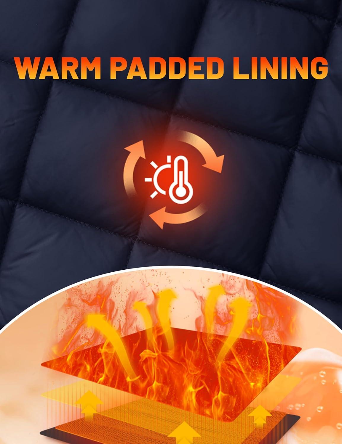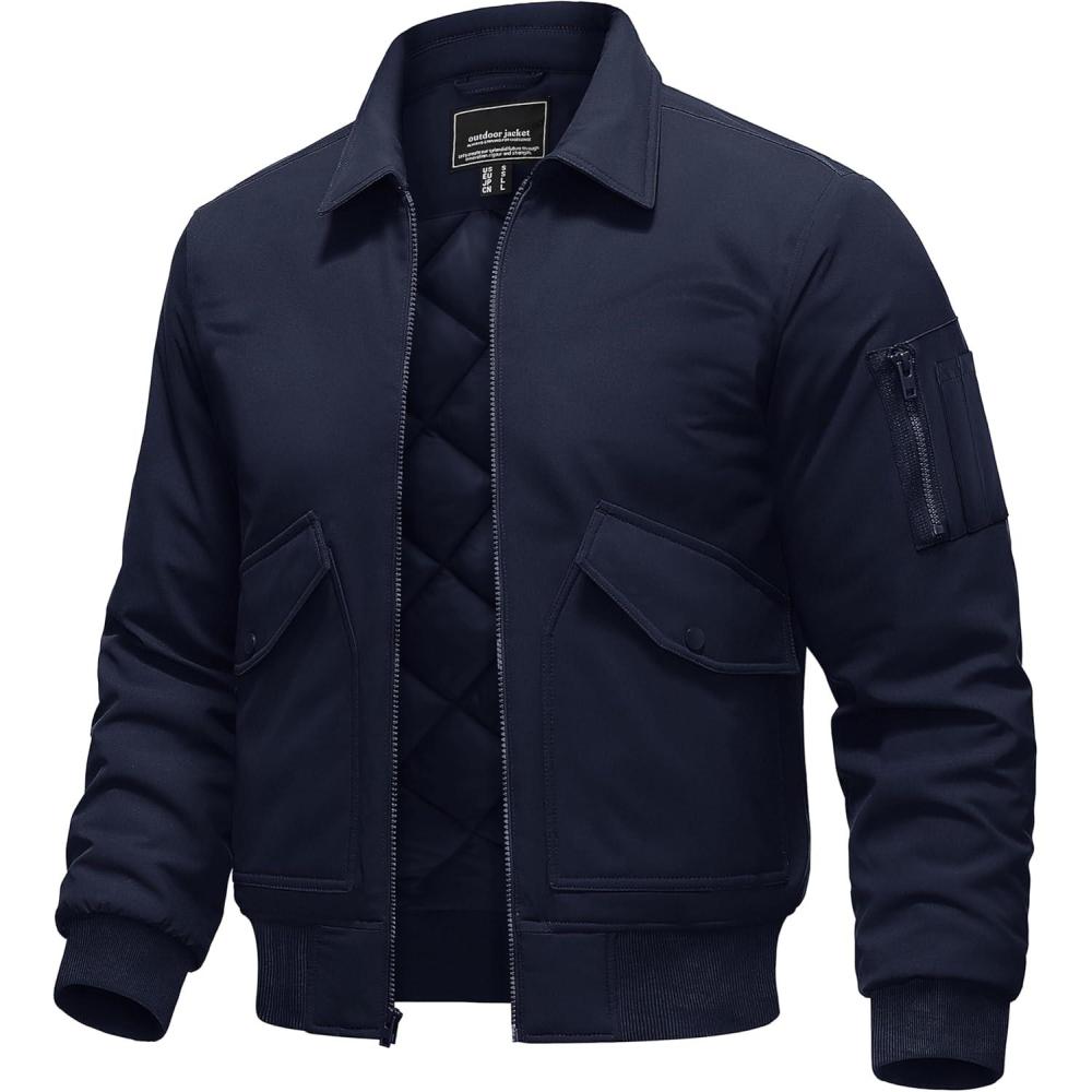 TACVASEN Men’s Bomber Jacket Thick Quilted Jackets Zip Up Water Repellent Windproof Winter Warm Coat with 6 Pockets(Navy)