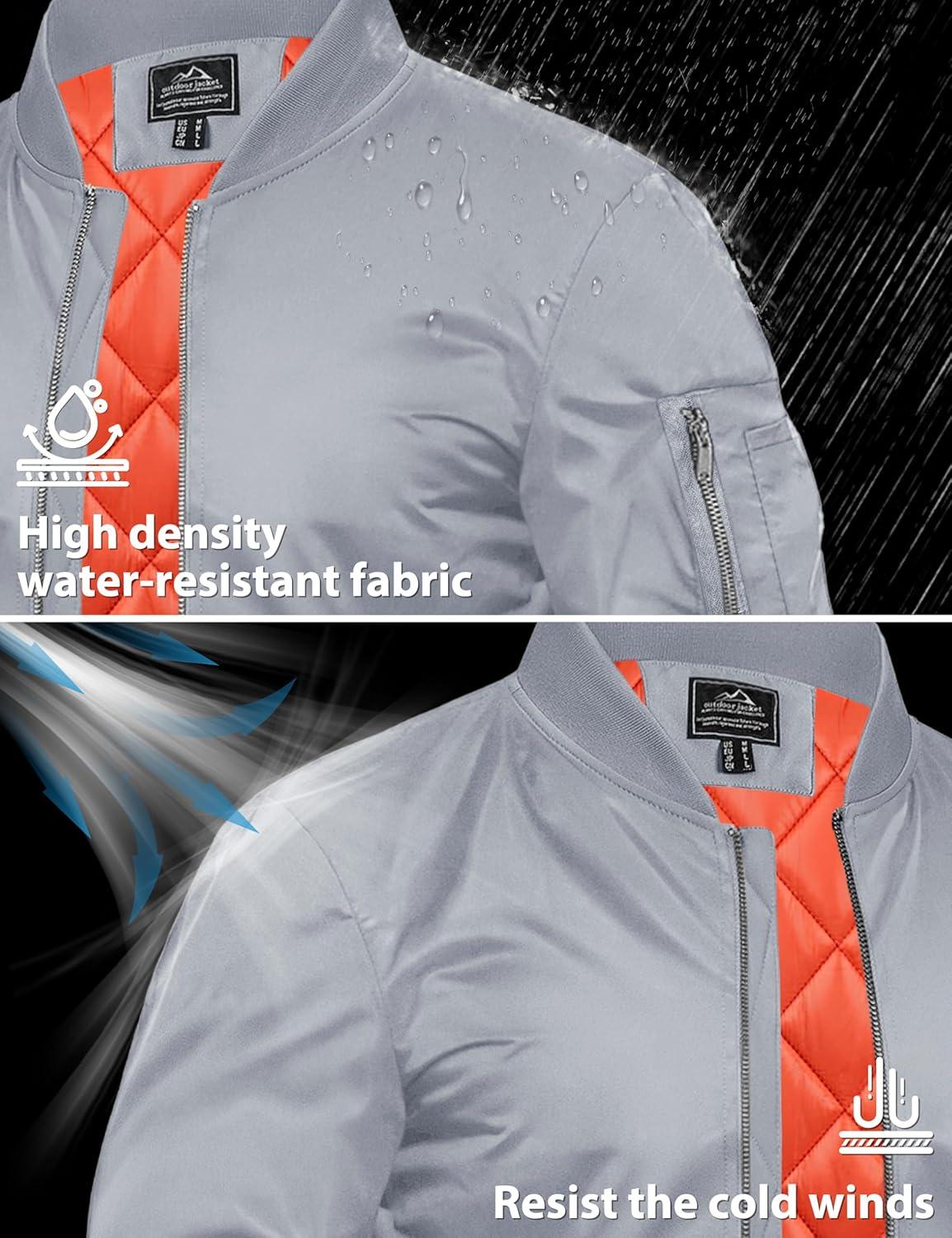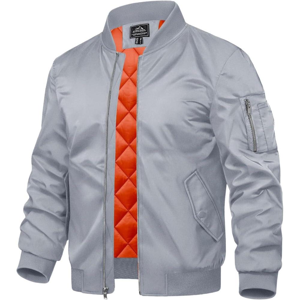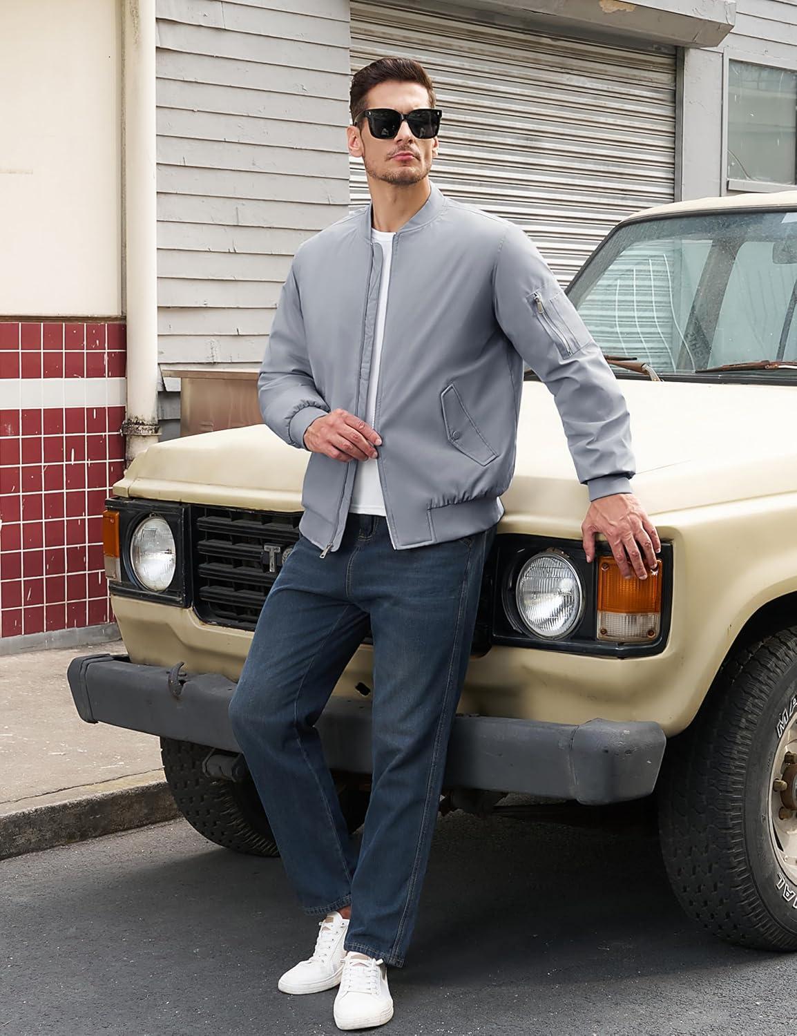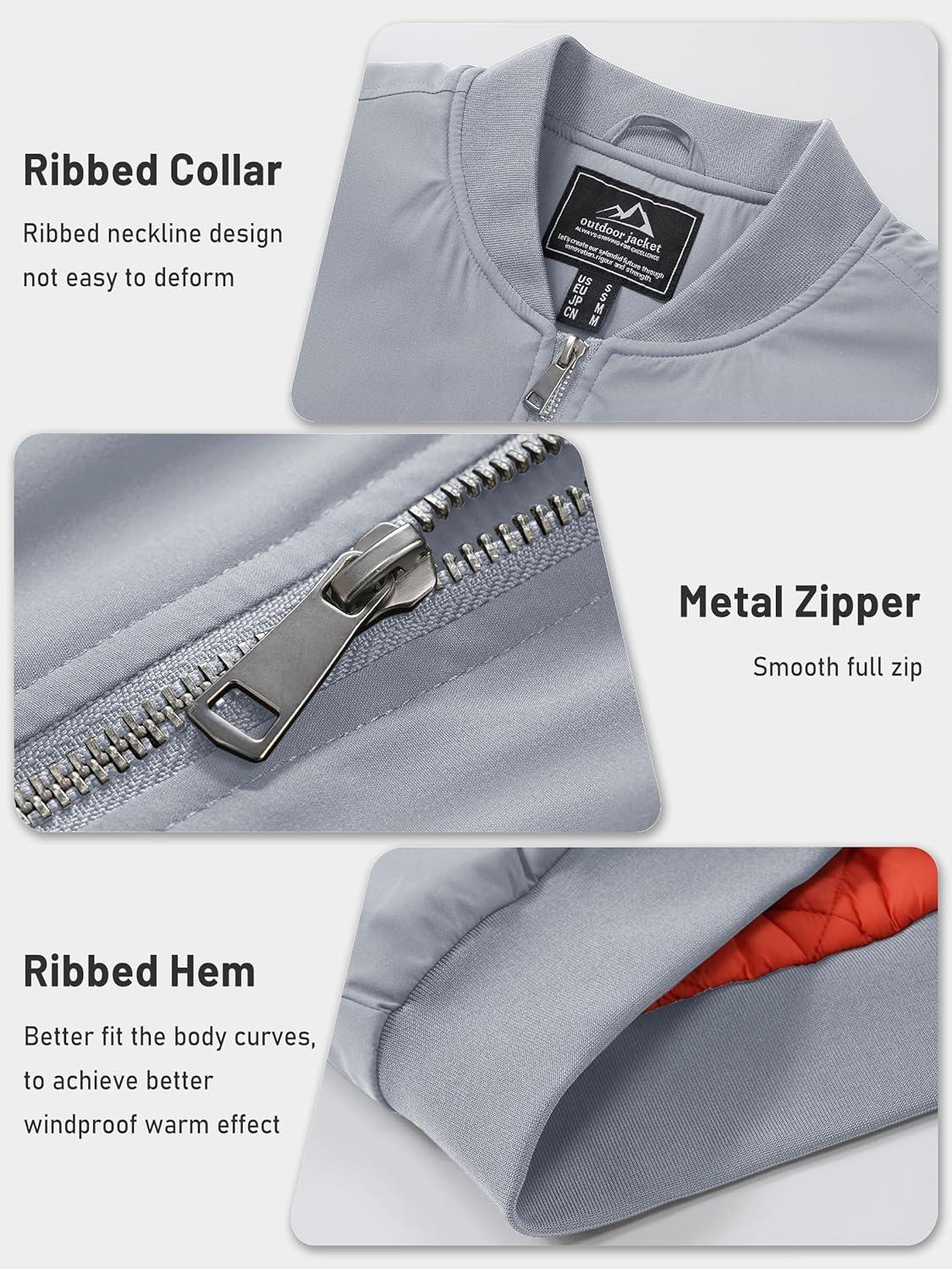 TACVASEN Mens Bomber Jacket Windproof Windbreaker Thermal Quilted Jacket Warm Winter Padded Coats(Lightgrey)
