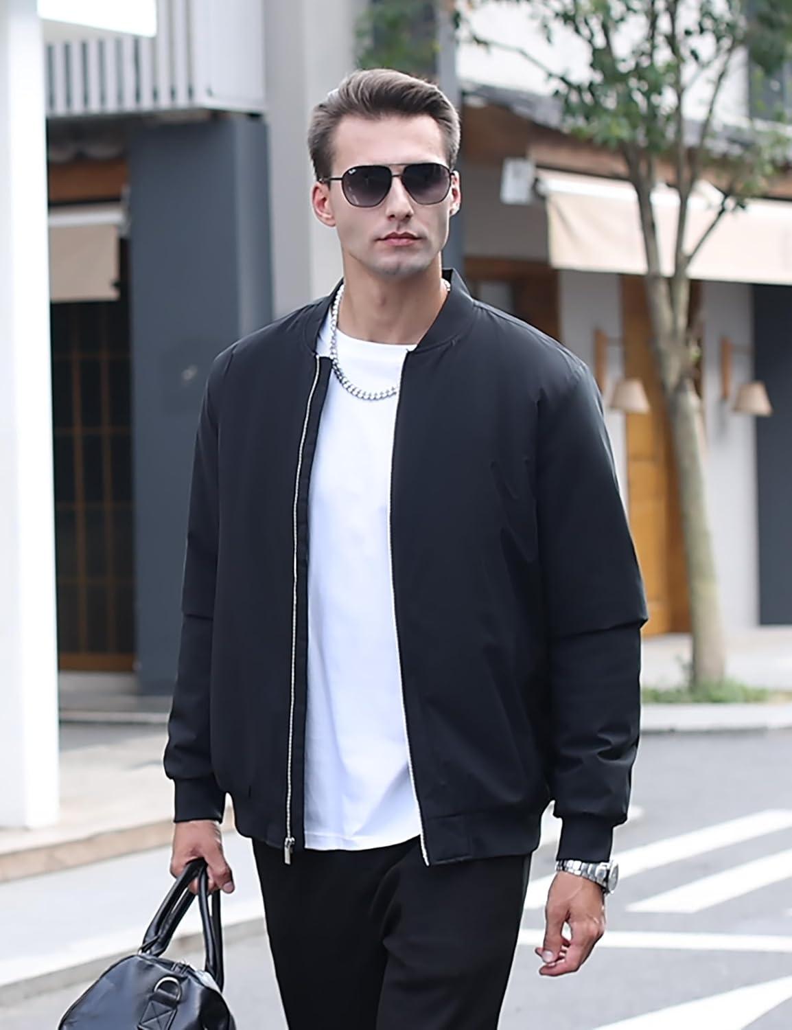 TACVASEN Mens Bomber Jackets Casual Fall Winter Warm Windbreaker Full Zip Windproof Outwear Color-Blocking Coats(Black)