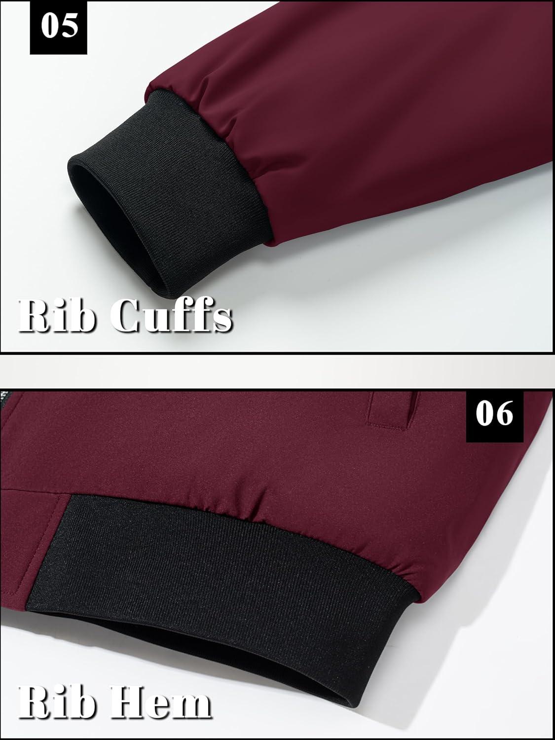 TACVASEN Mens Bomber Jackets Casual Fall Winter Warm Windbreaker Full Zip Windproof Outwear Color-Blocking Coats(Burgundy)