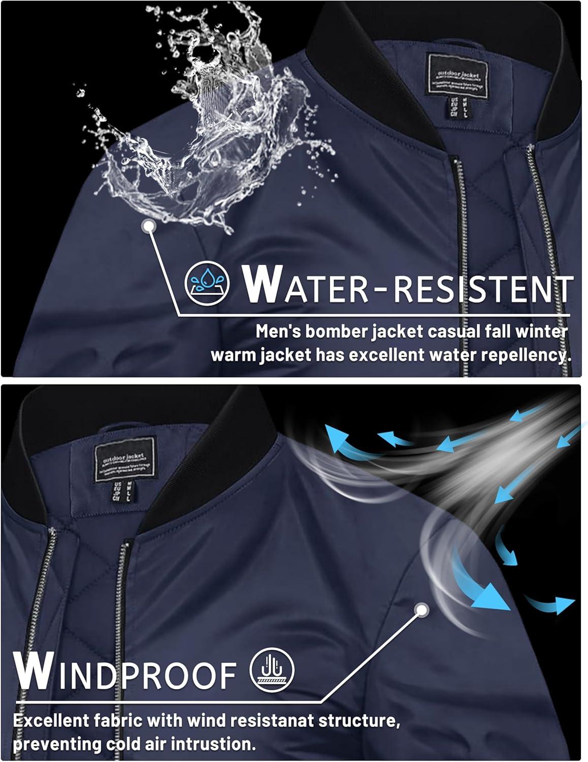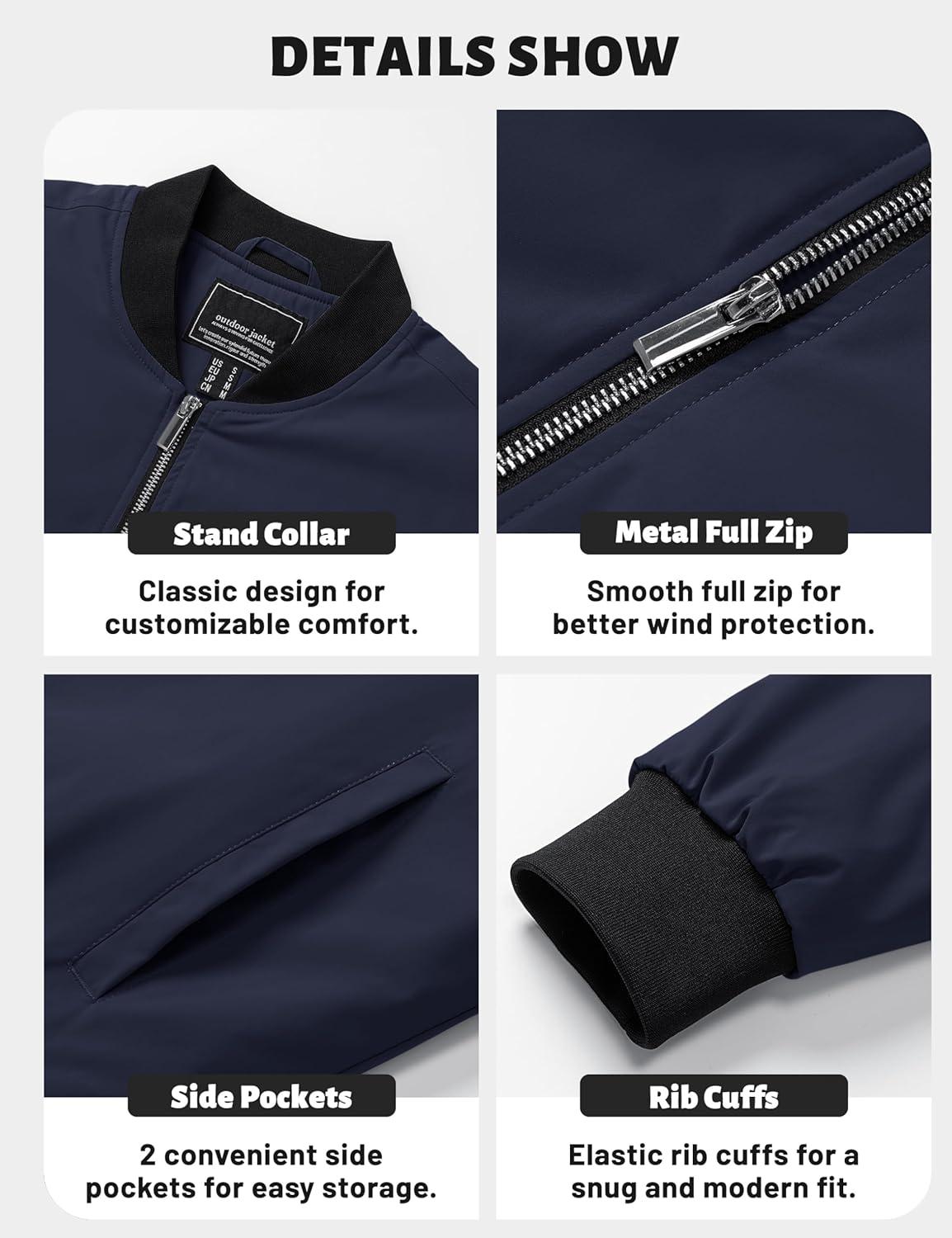 TACVASEN Mens Bomber Jackets Casual Fall Winter Warm Windbreaker Full Zip Windproof Outwear Color-Blocking Coats(Navy)