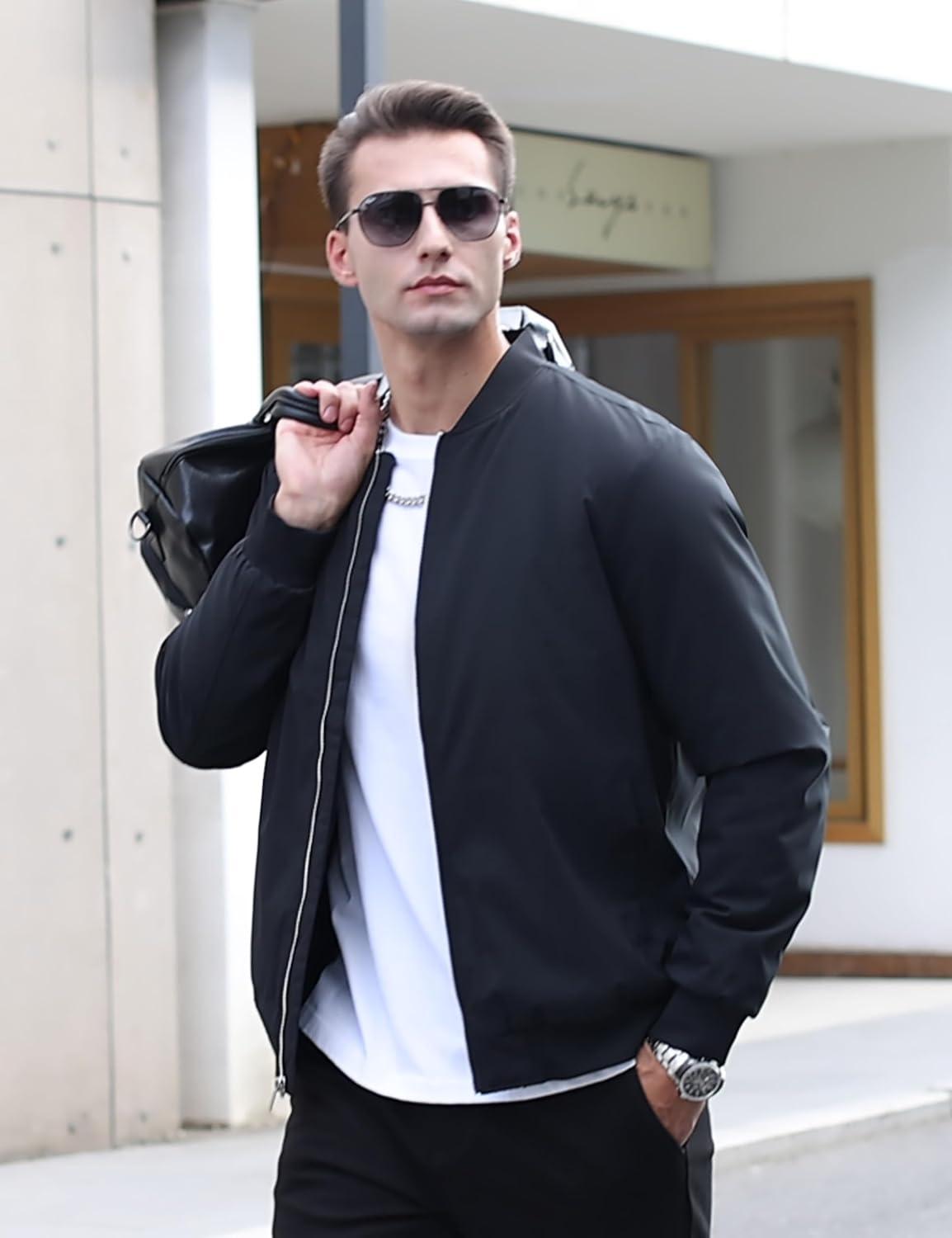 TACVASEN Mens Bomber Jackets Casual Fall Winter Warm Windbreaker Full Zip Windproof Outwear Color-Blocking Coats(Light Gray)
