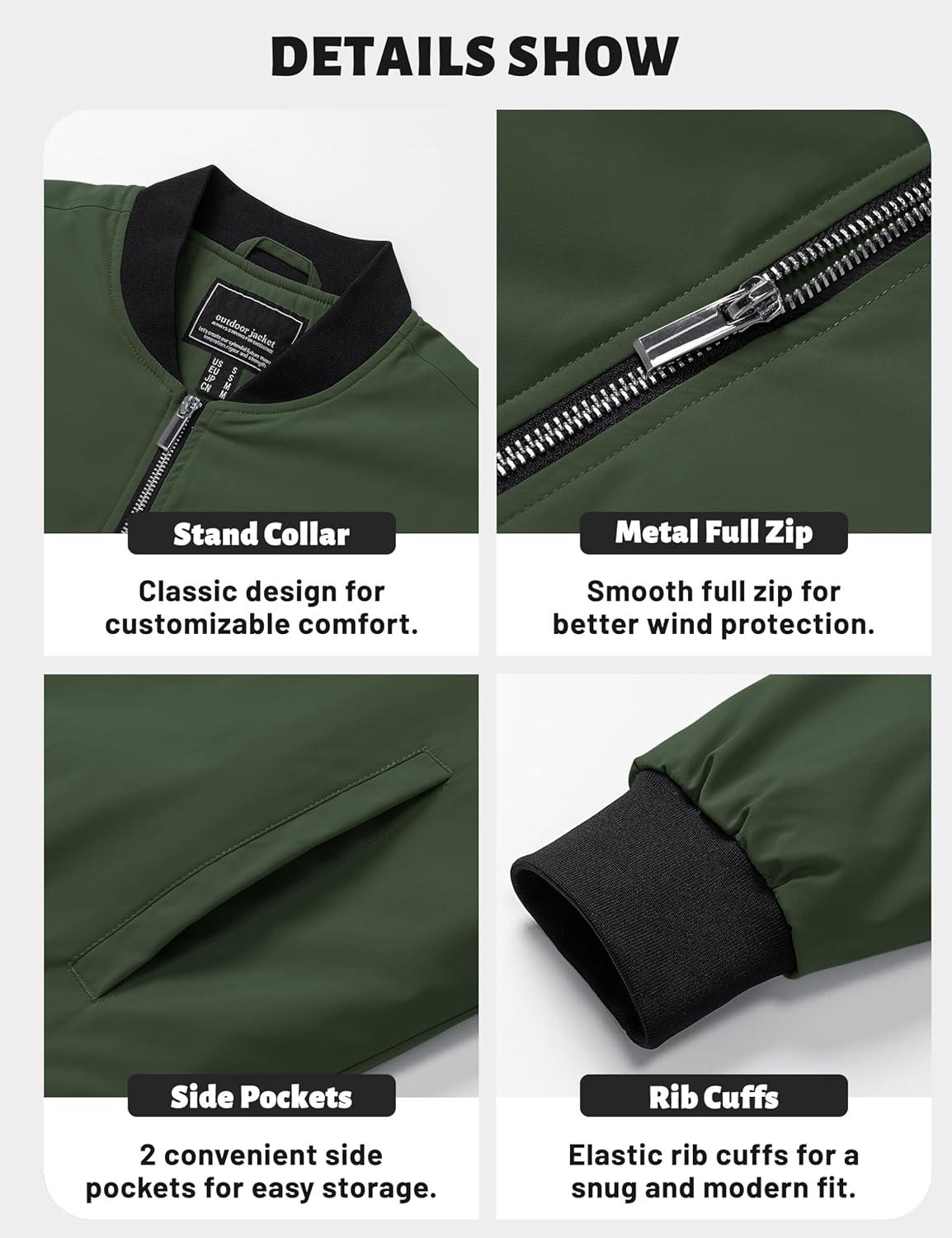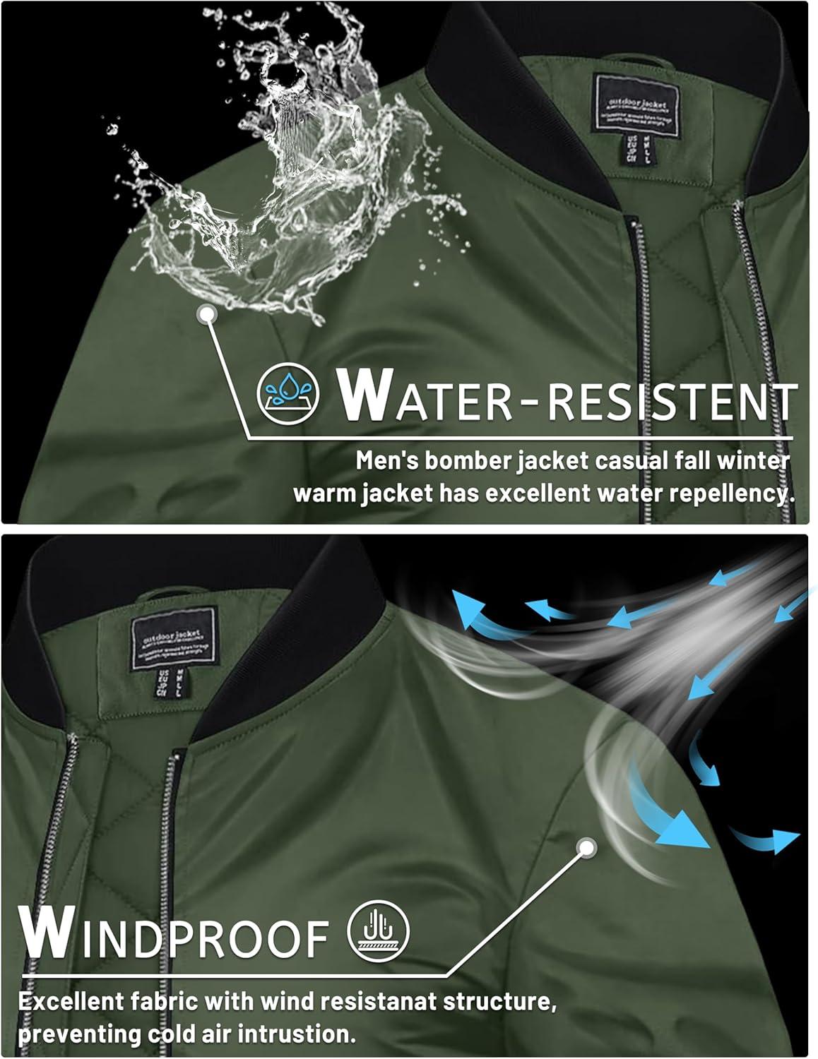 TACVASEN Mens Bomber Jackets Casual Fall Winter Warm Windbreaker Full Zip Windproof Outwear Color-Blocking Coats(Olive Green)
