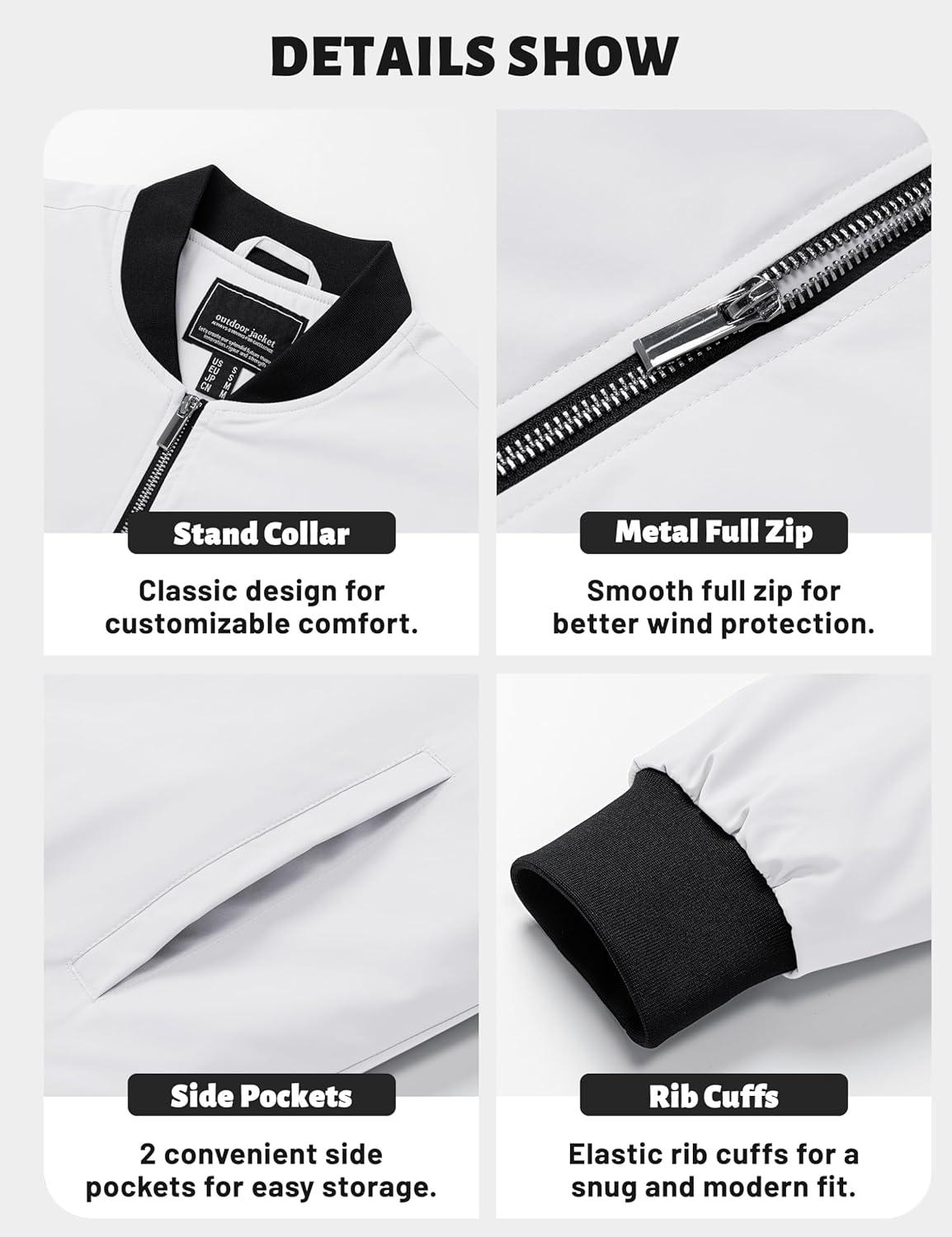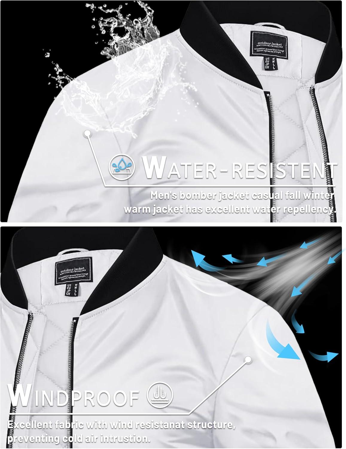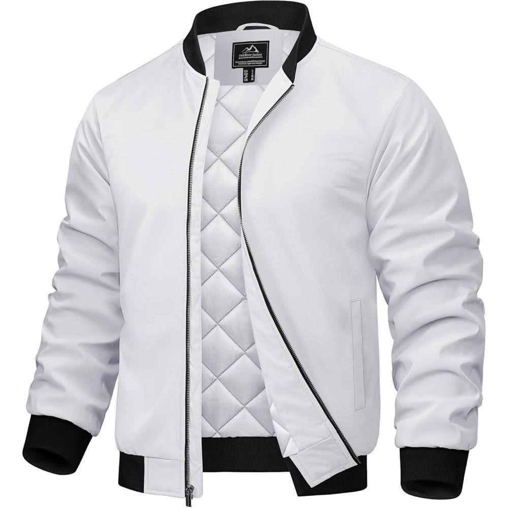 TACVASEN Mens Bomber Jackets Casual Fall Winter Warm Windbreaker Full Zip Windproof Outwear Color-Blocking Coats(White)