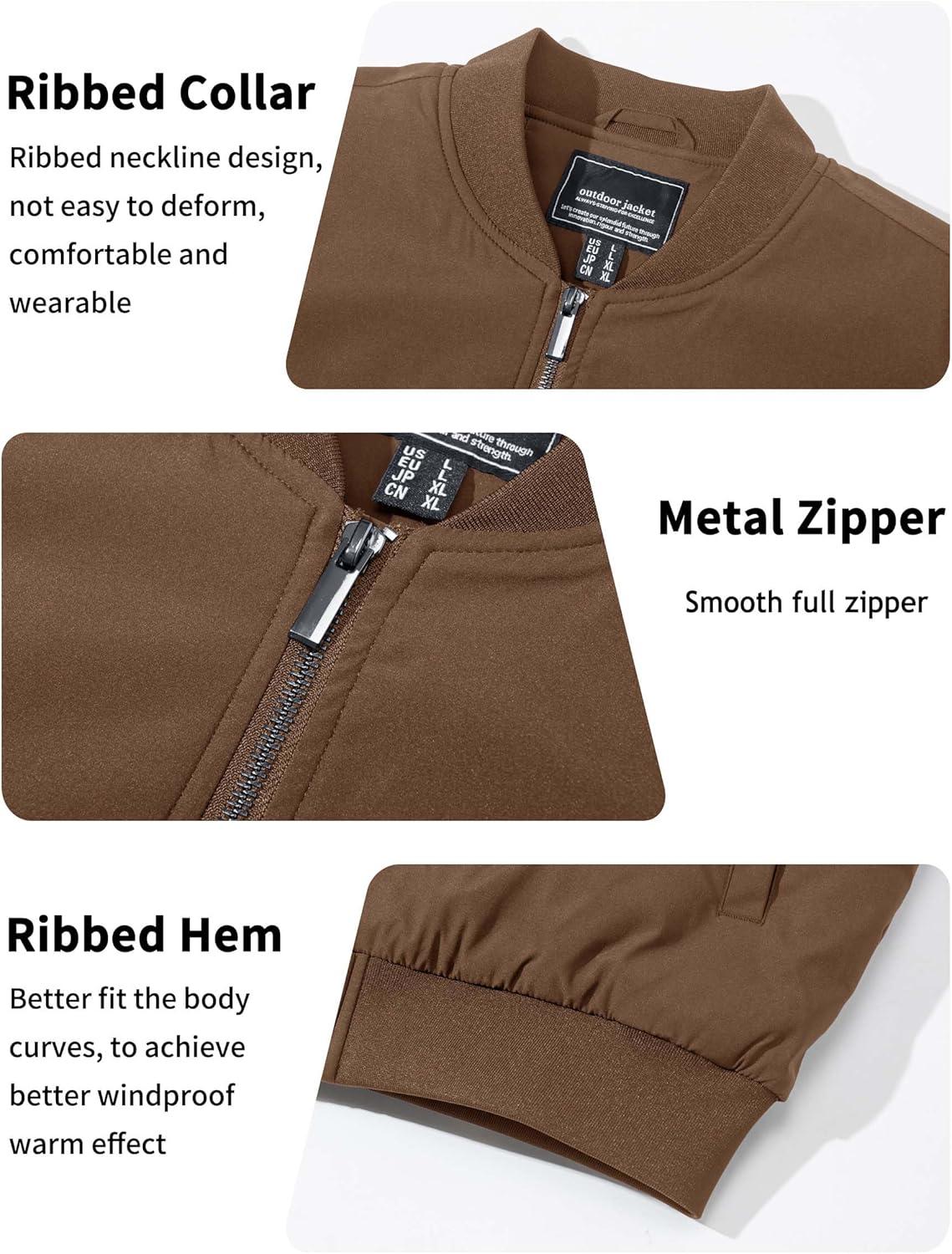TACVASEN Men’s Bomber Jackets Thermal Quilted Jacket Water Resistant Warm Winter Coats with 4-Pockets(Coffee)