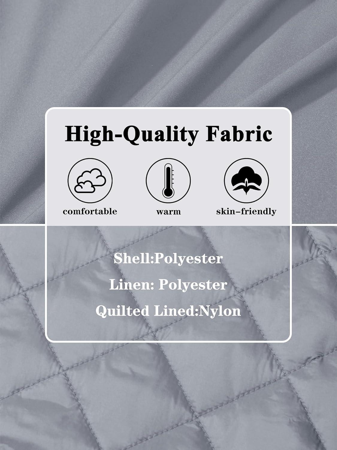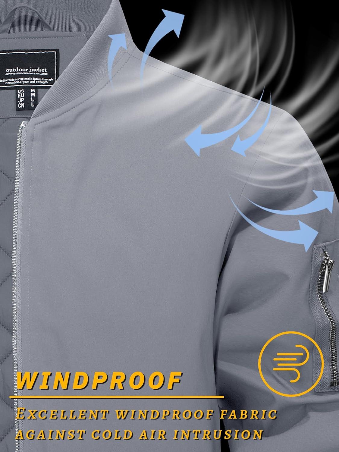 TACVASEN Men’s Bomber Jackets Thermal Quilted Jacket Water Resistant Warm Winter Coats with 4-Pockets(Light Grey)