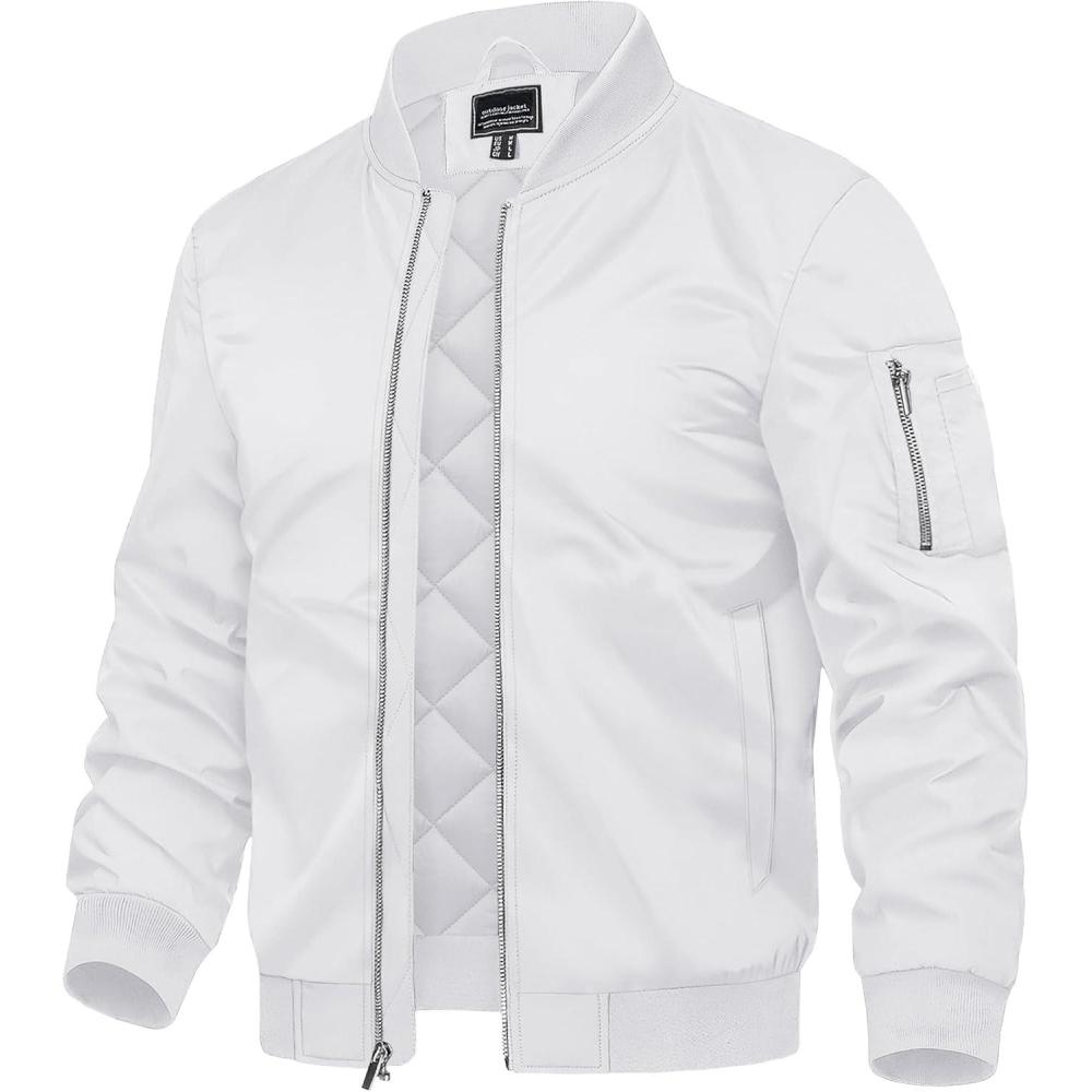 TACVASEN Men’s Bomber Jackets Thermal Quilted Jacket Water Resistant Warm Winter Coats(White)