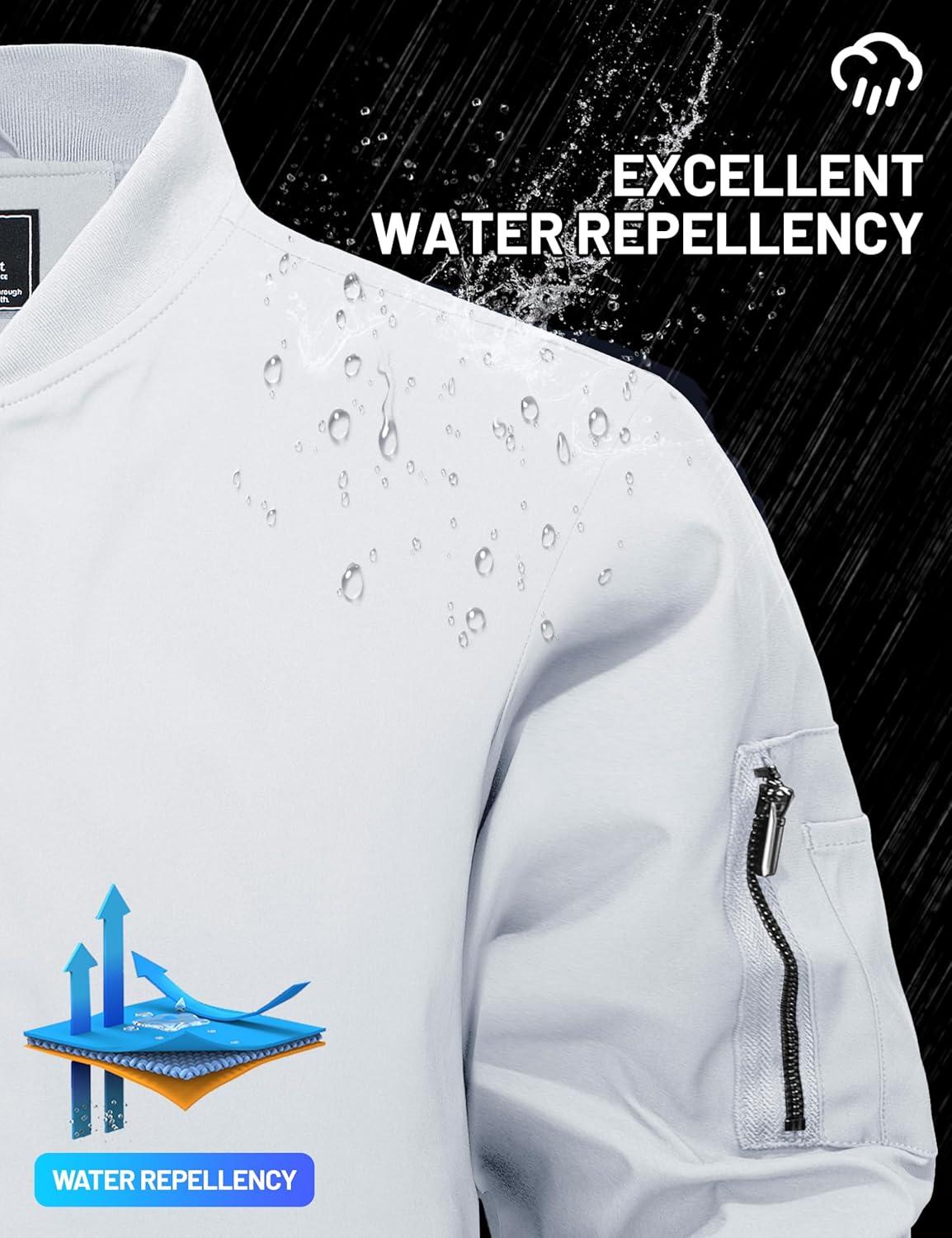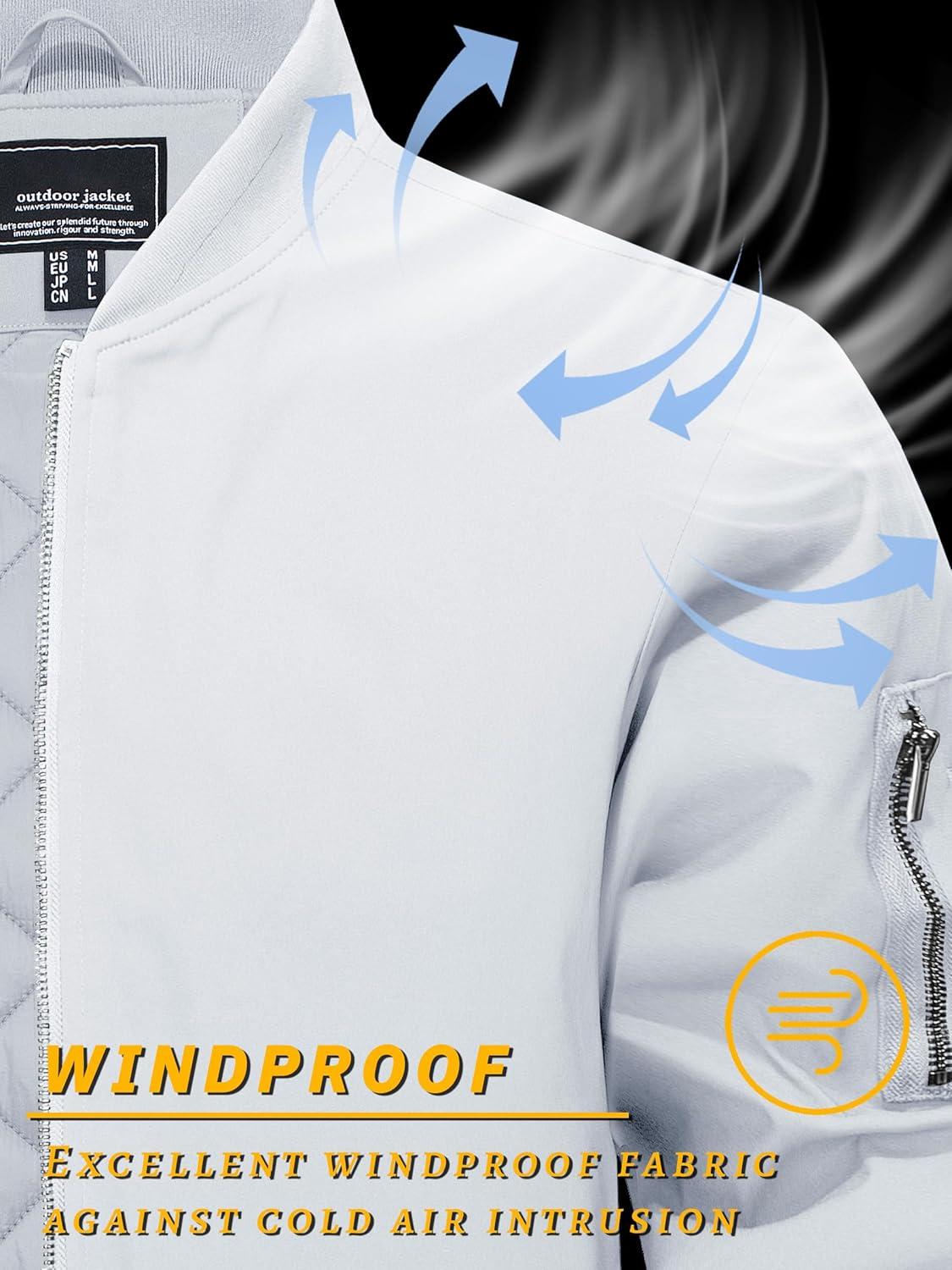 TACVASEN Men’s Bomber Jackets Thermal Quilted Jacket Water Resistant Warm Winter Coats(White)