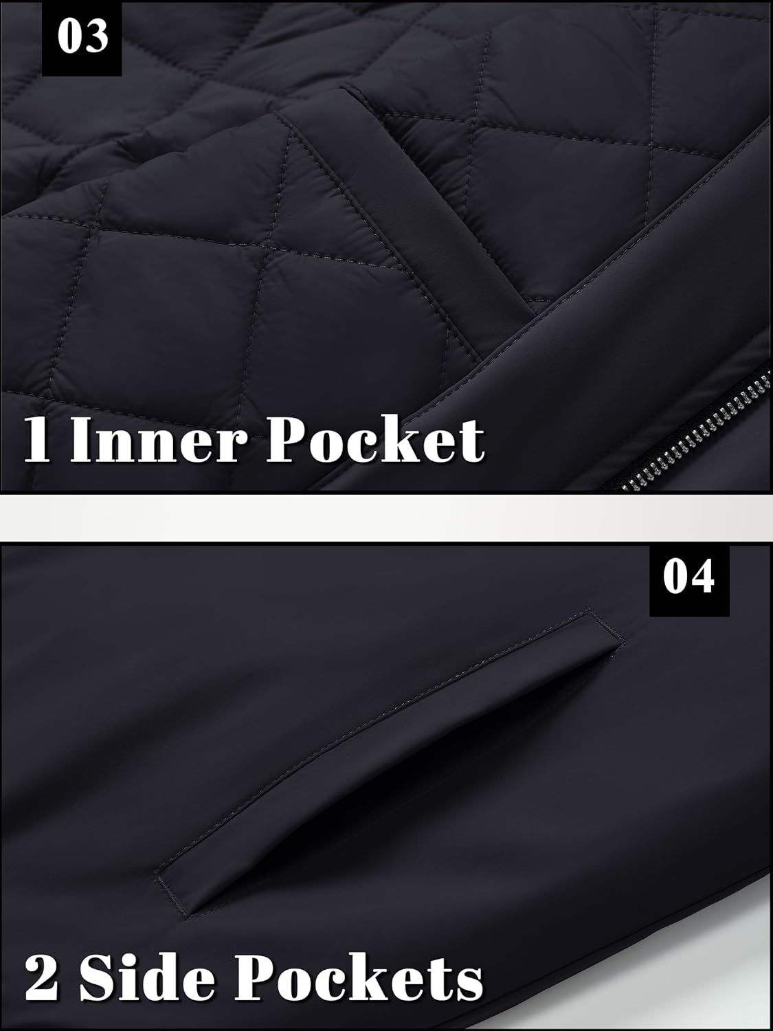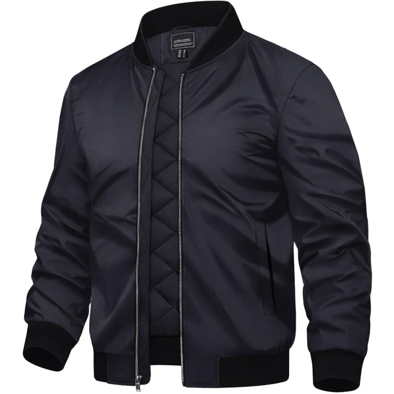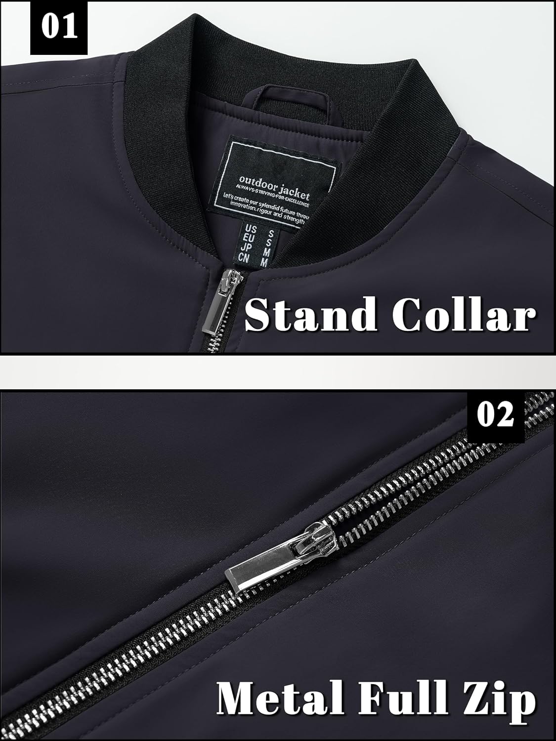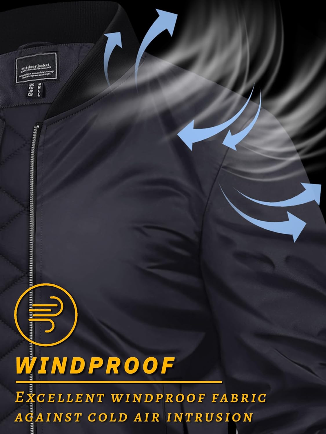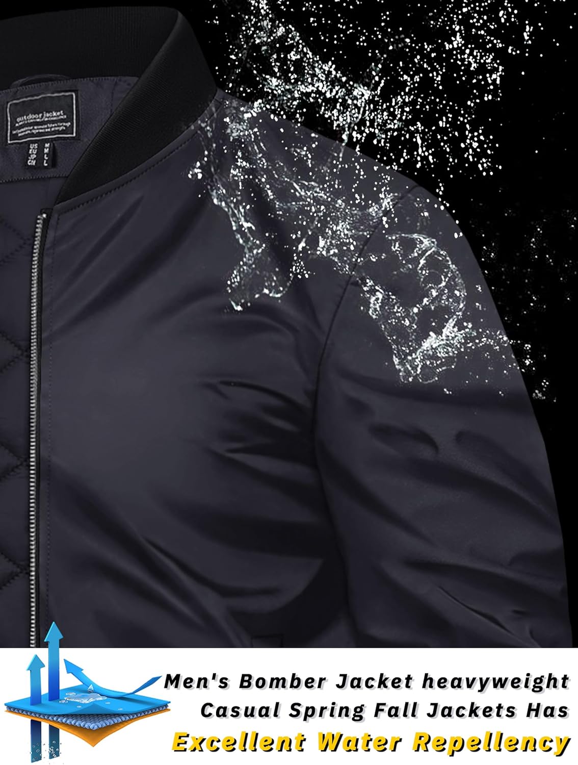 TACVASEN Men’s Bomber Jackets Water-Resistant Windproof Warm Full Zip Windbreaker Fall Winter Casual Padded Coats Outwear(Black)