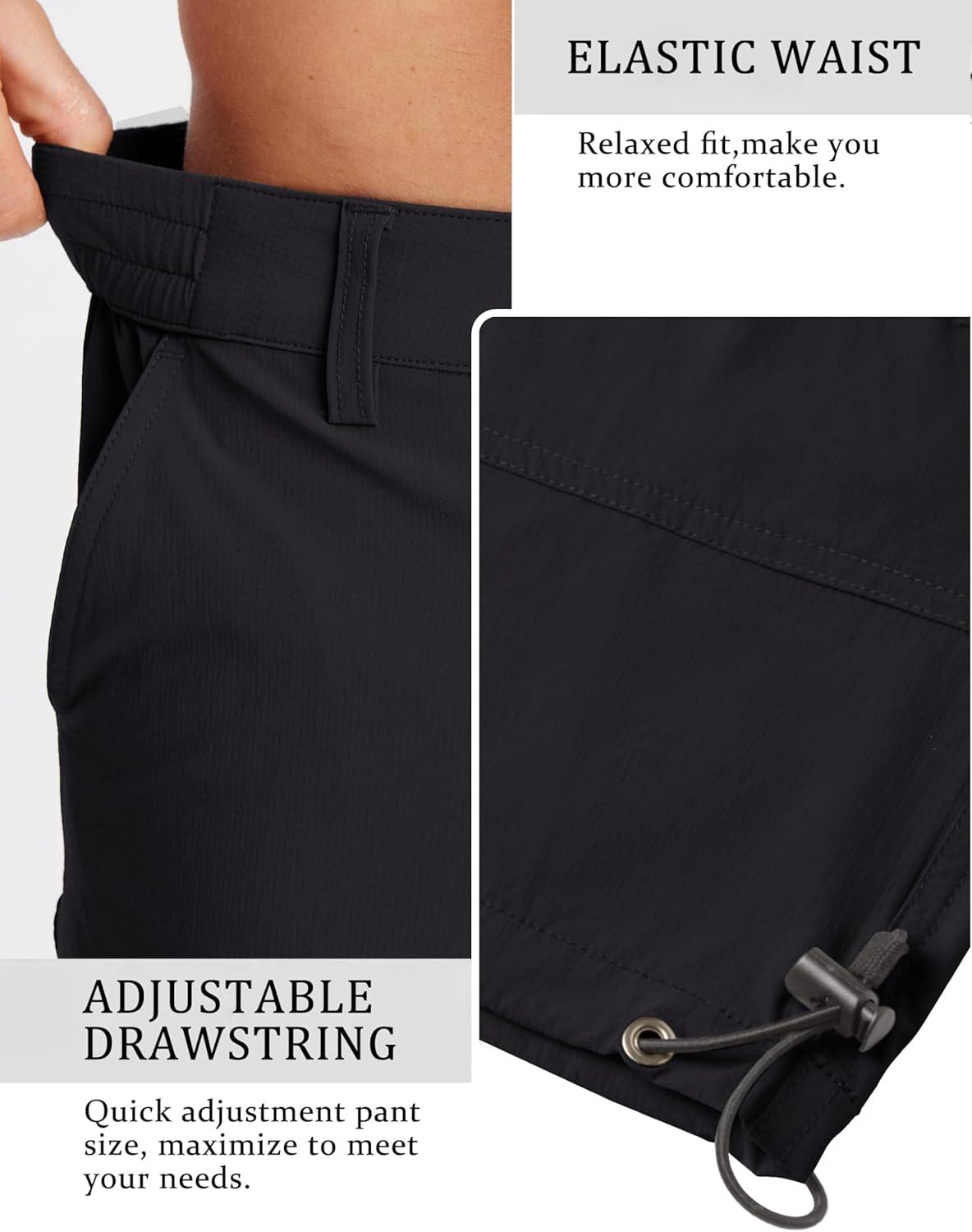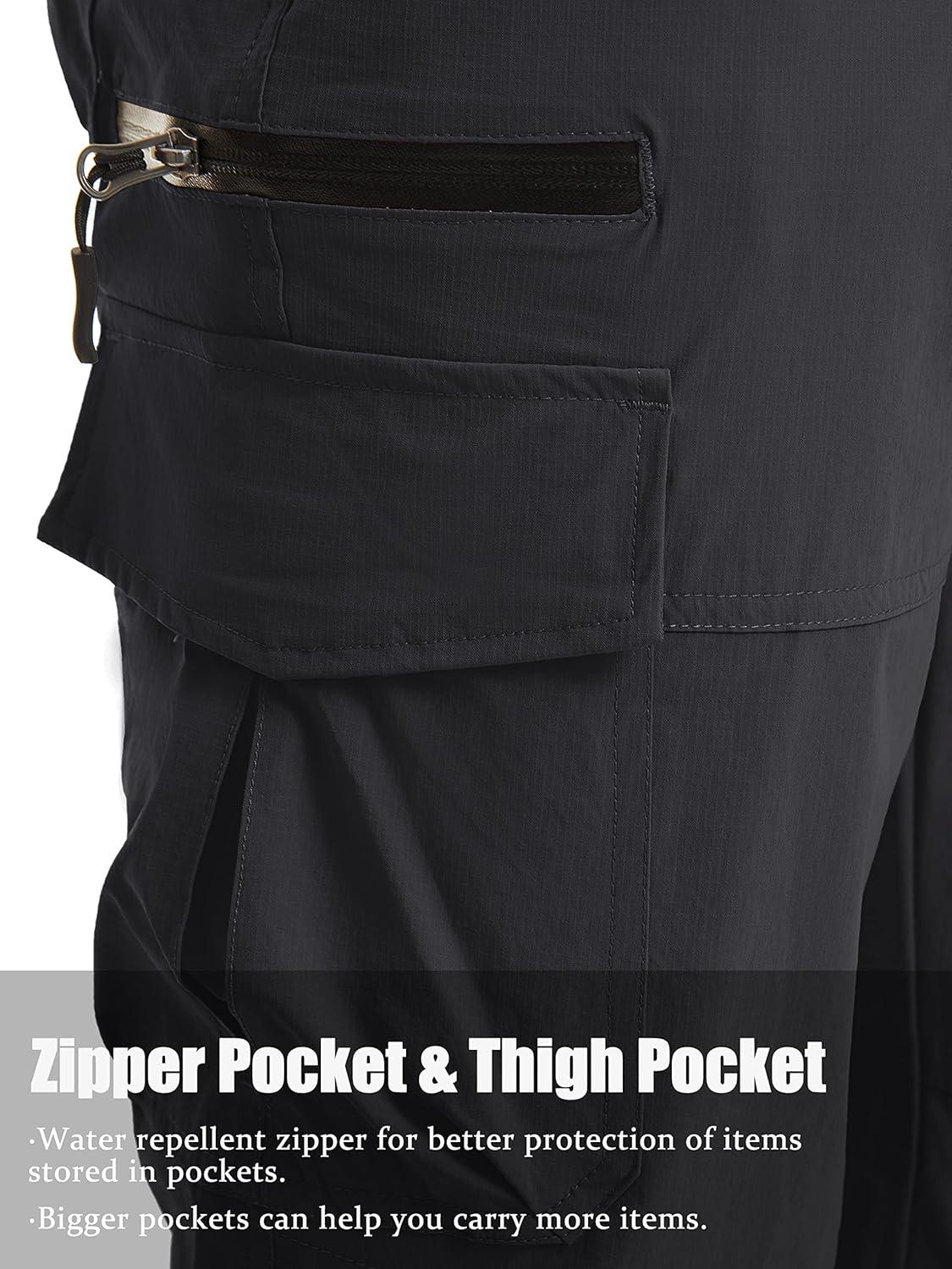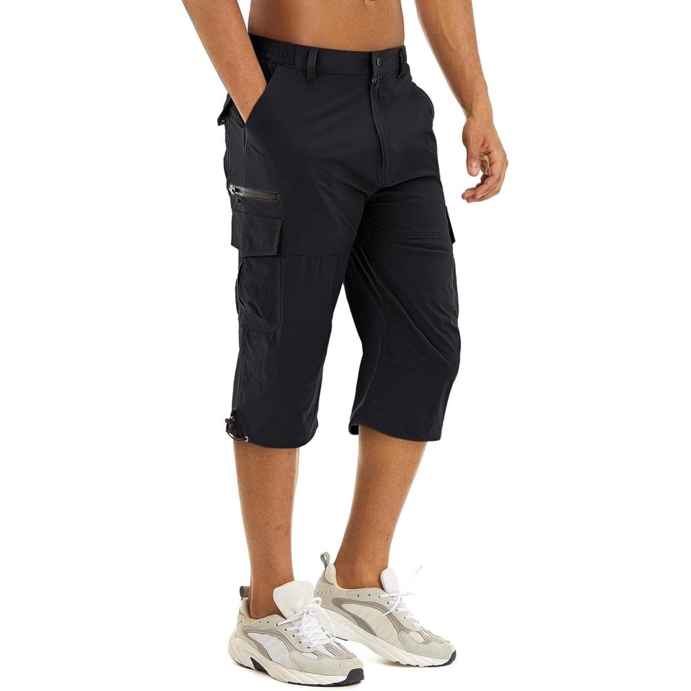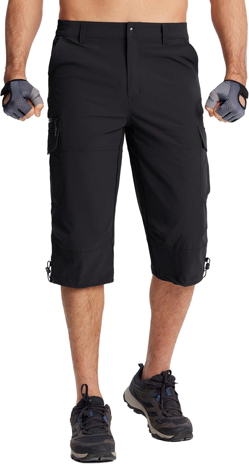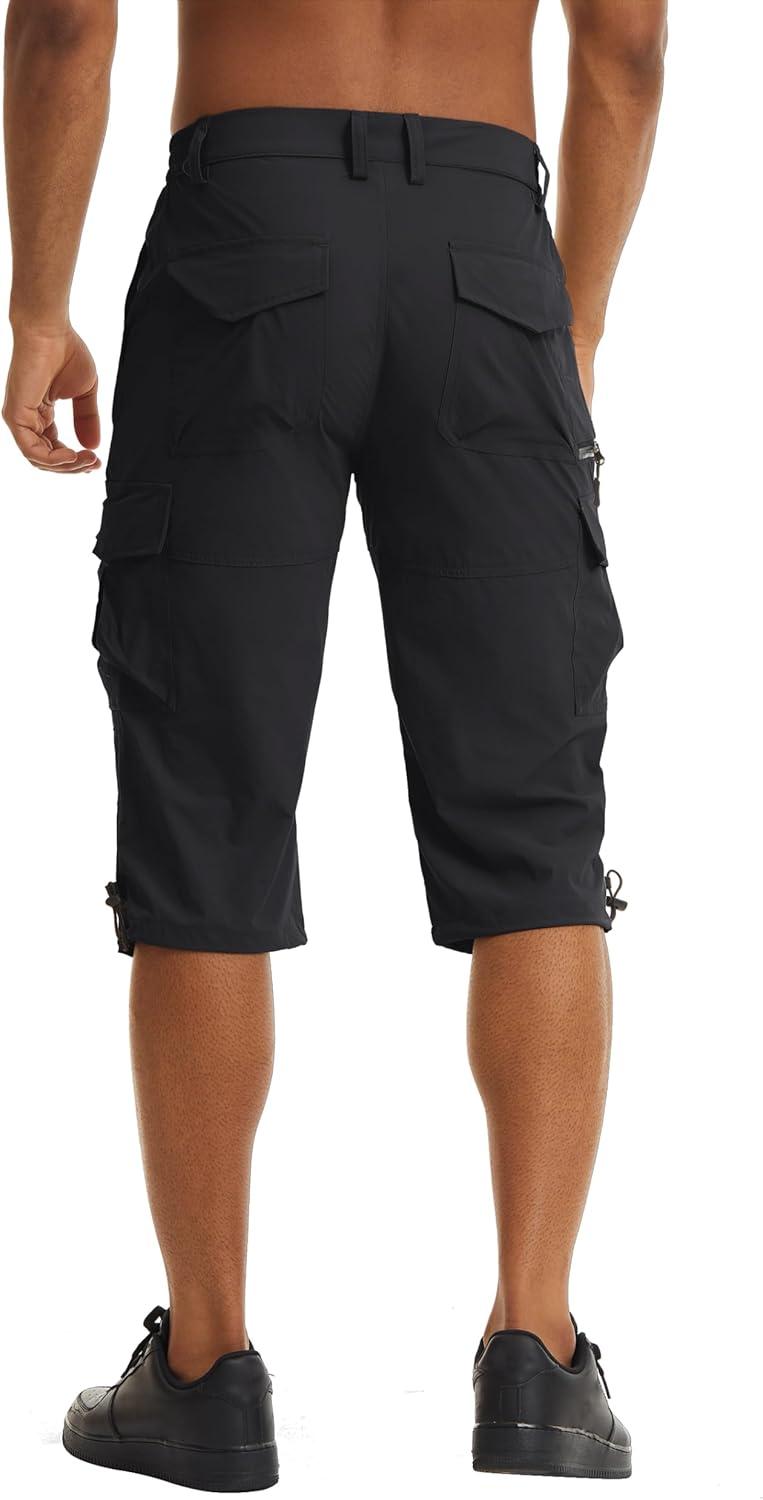TACVASEN Men’s Capri Pants Quick Dry Cargo Hiking Water Resistant Work Summer Long Shorts Below Knee(Black)