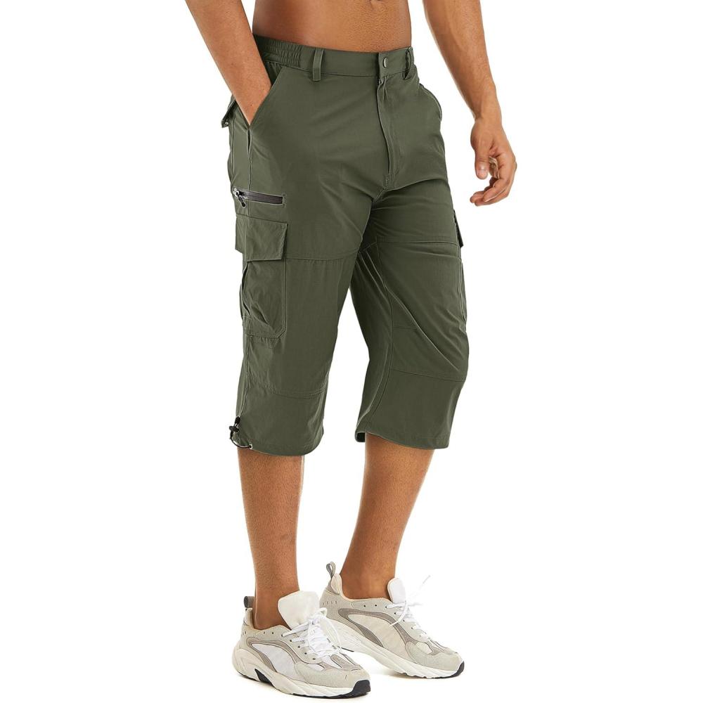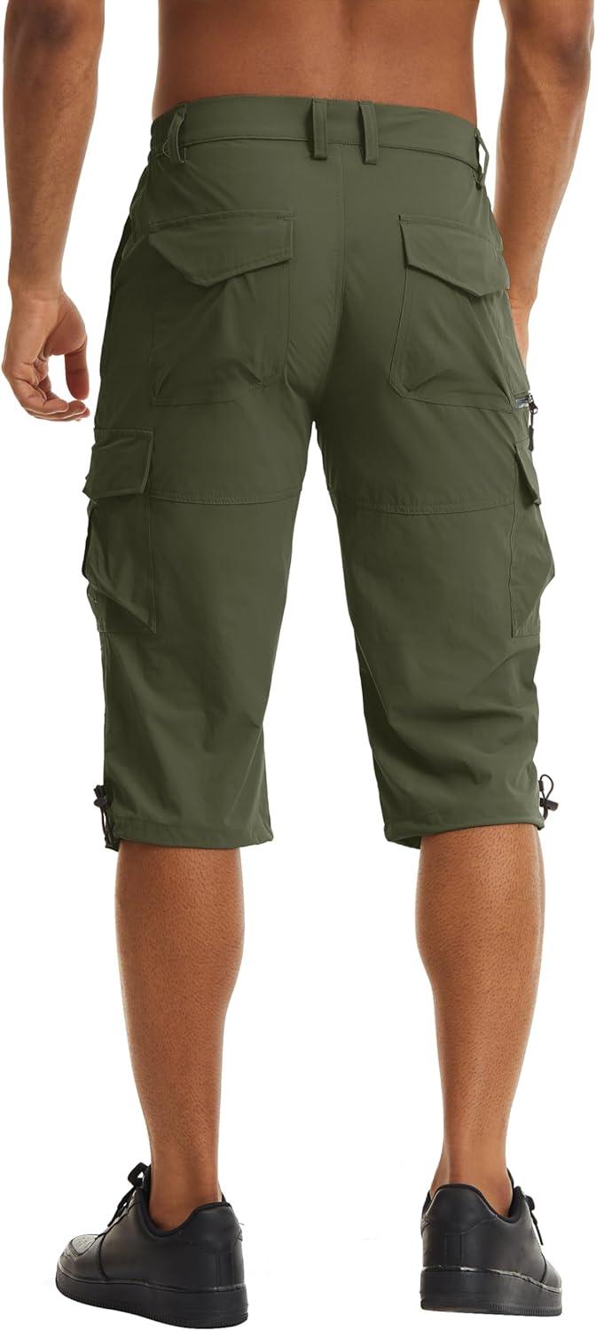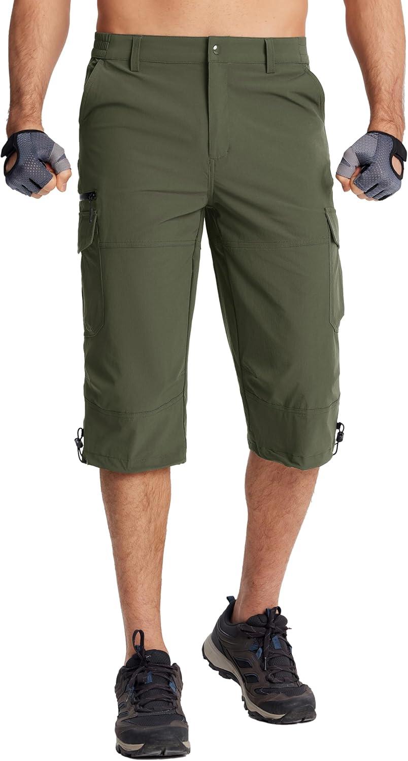 TACVASEN Men’s Capri Pants Quick Dry Cargo Hiking Water Resistant Work Summer Long Shorts Below Knee(G Green)