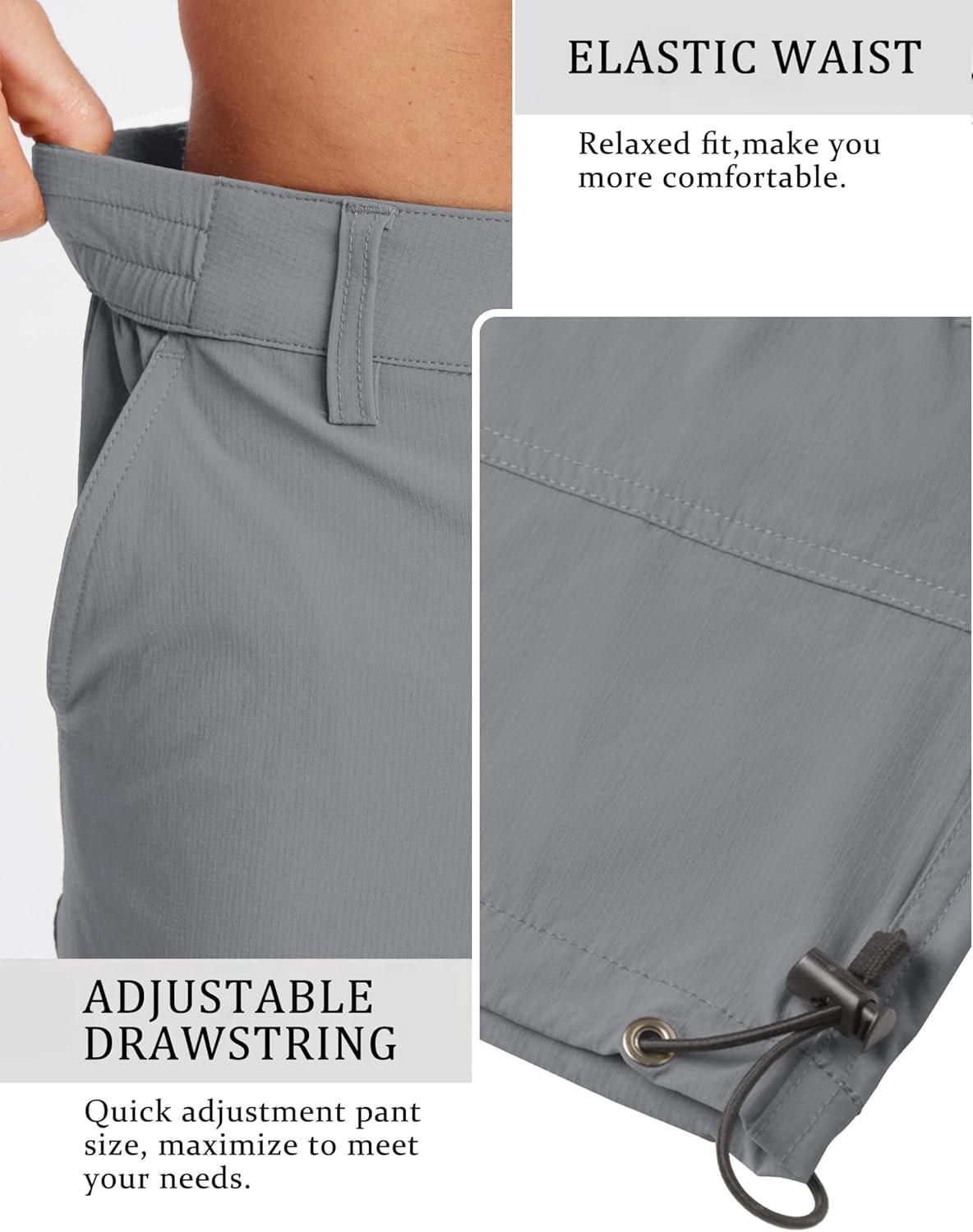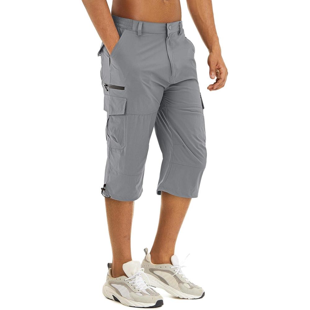 TACVASEN Men’s Capri Pants Quick Dry Cargo Hiking Water Resistant Work Summer Long Shorts Below Knee(Light Grey)