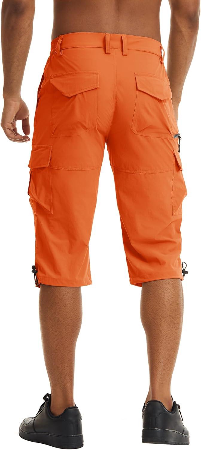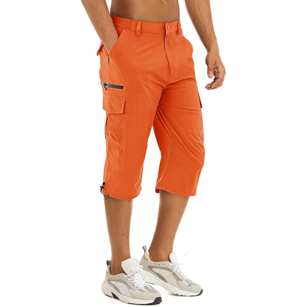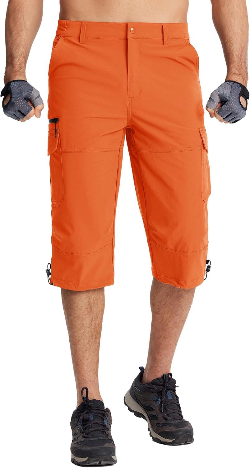 TACVASEN Men’s Capri Pants Quick Dry Cargo Hiking Water Resistant Work Summer Long Shorts Below Knee(Orange)