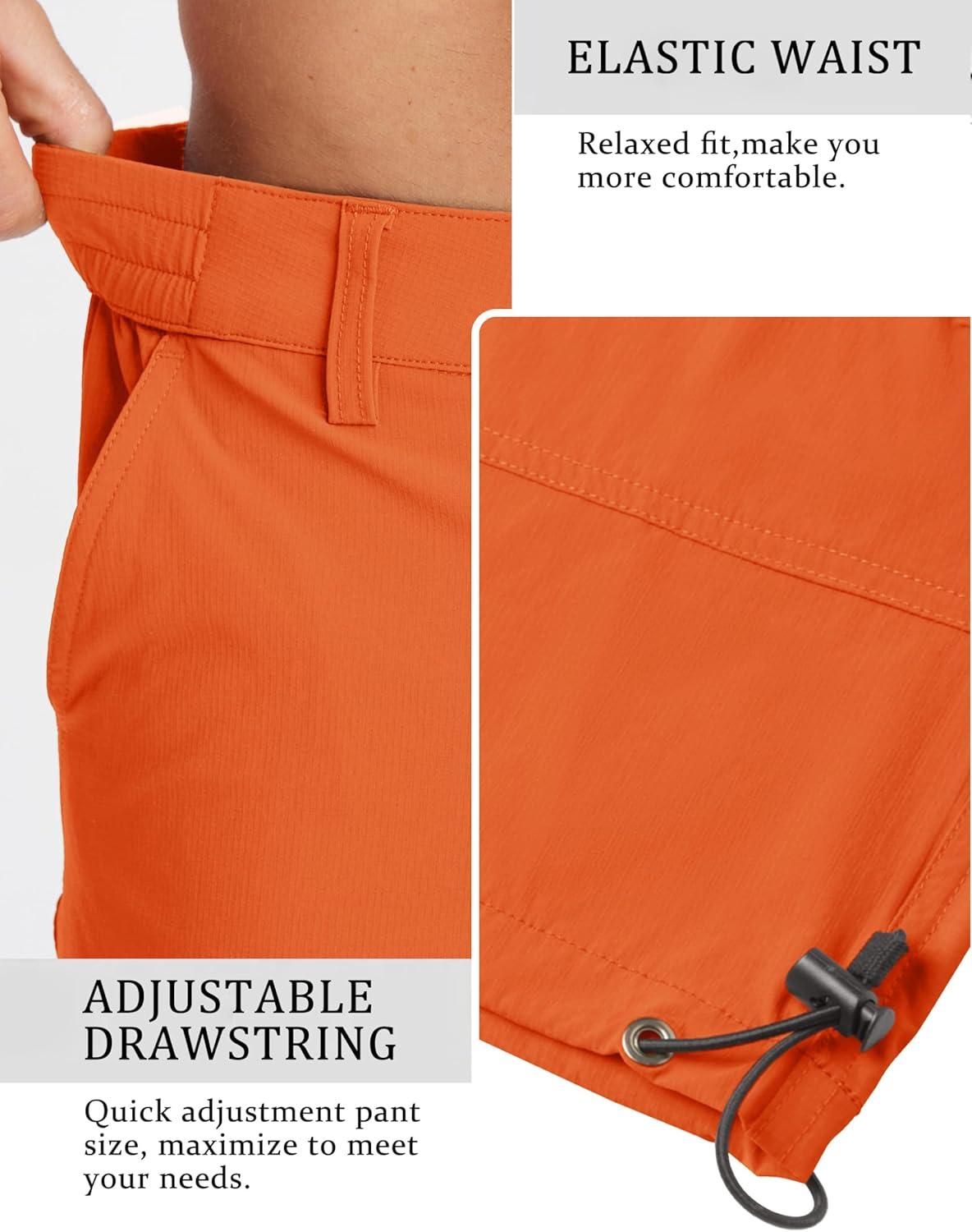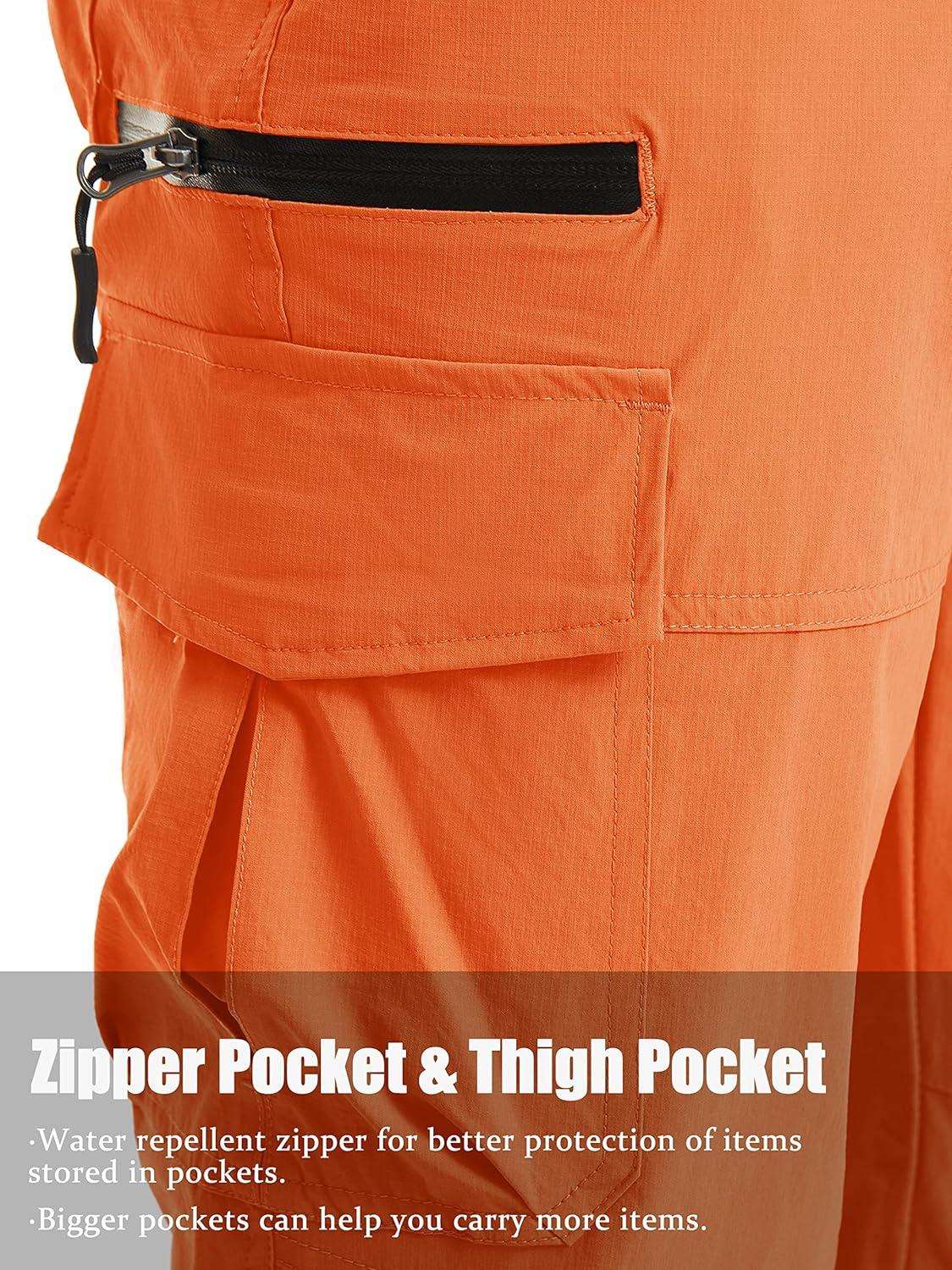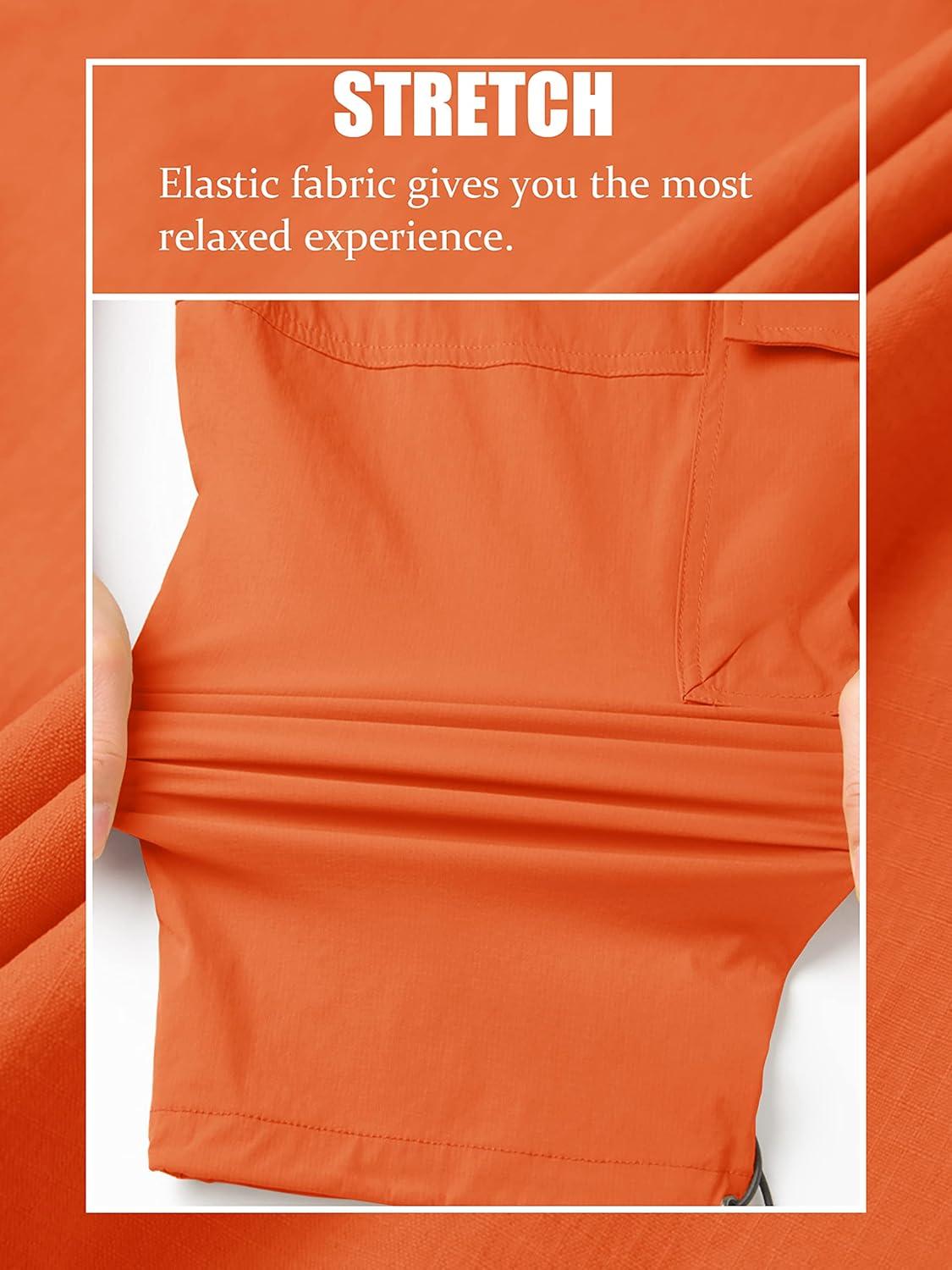 TACVASEN Men’s Capri Pants Quick Dry Cargo Hiking Water Resistant Work Summer Long Shorts Below Knee(Orange)