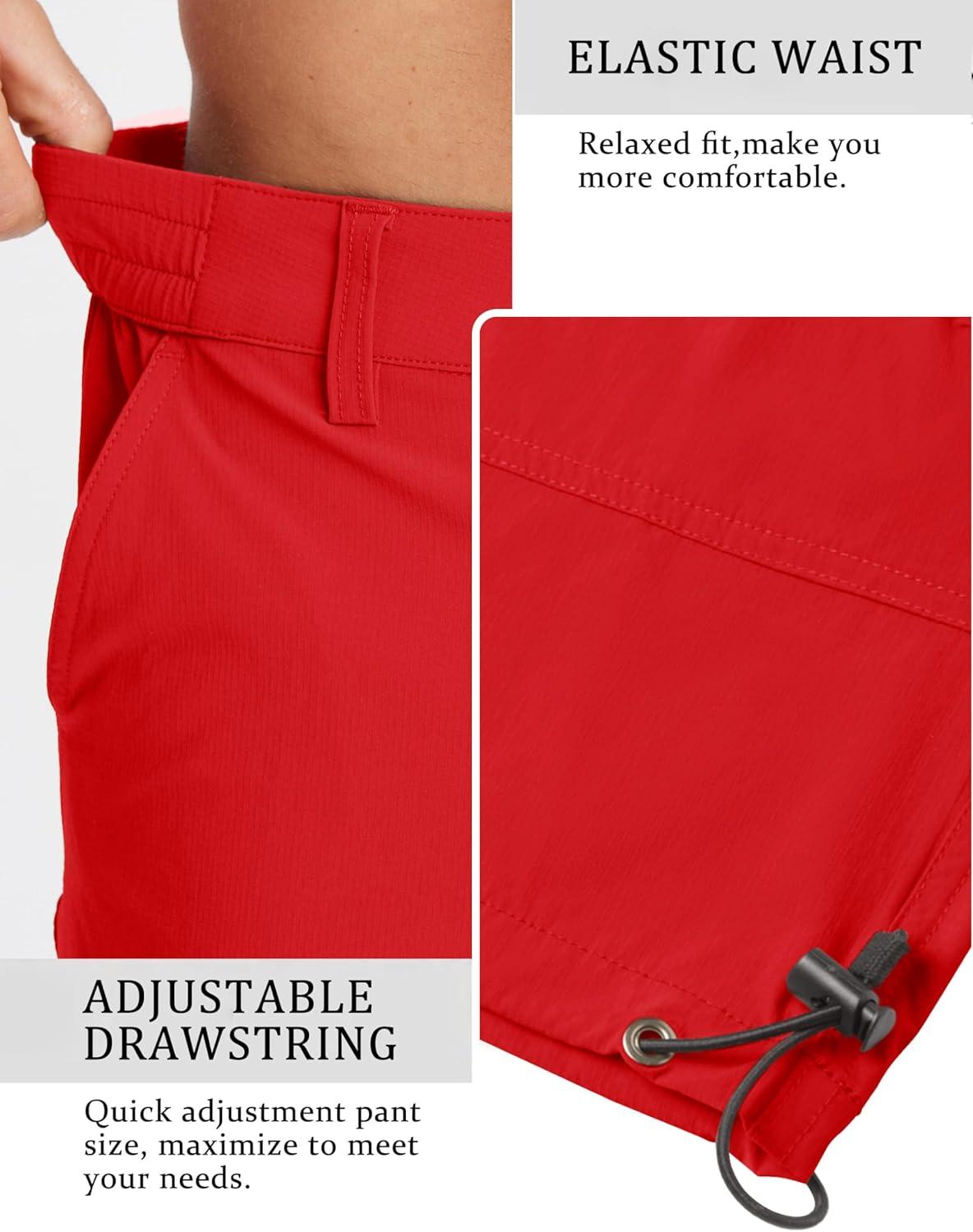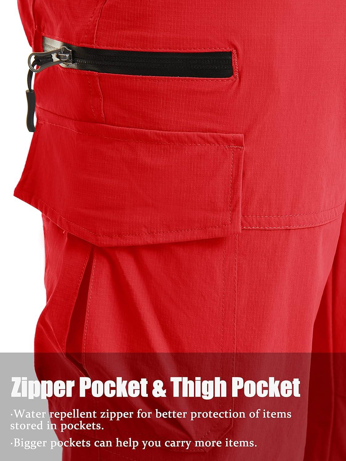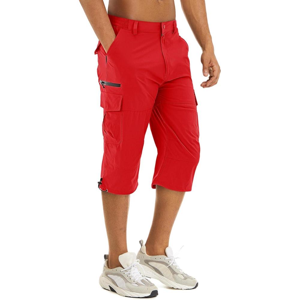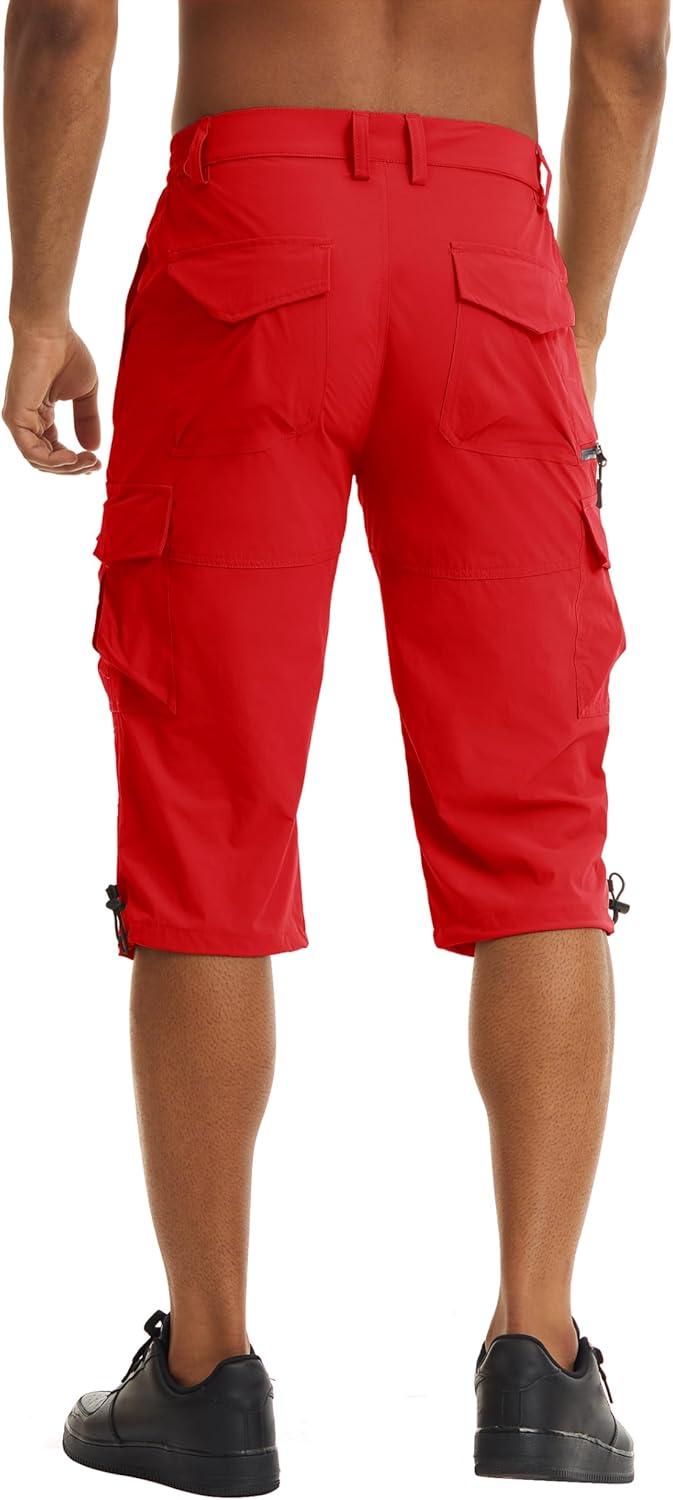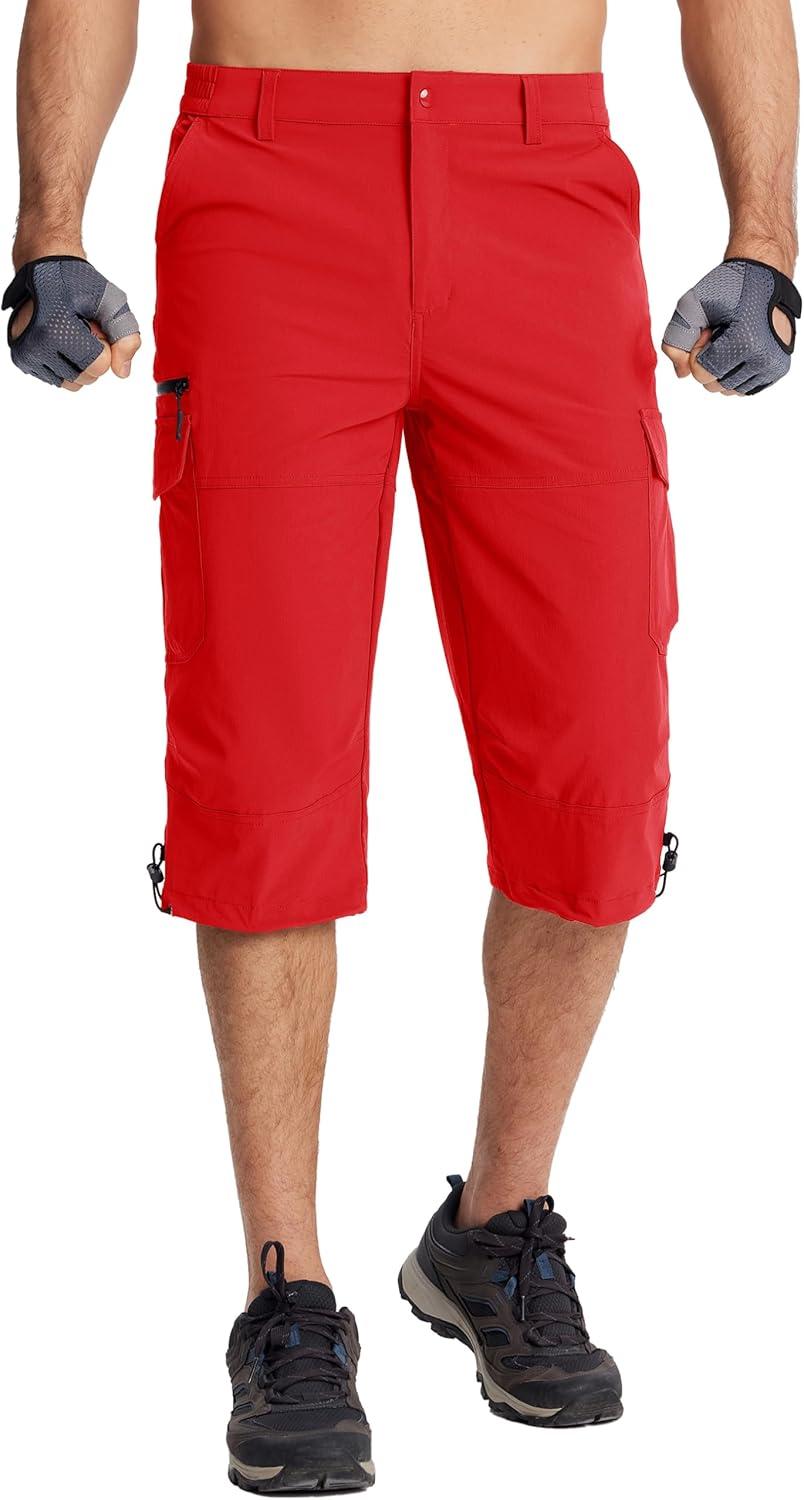 TACVASEN Men’s Capri Pants Quick Dry Cargo Hiking Water Resistant Work Summer Long Shorts Below Knee(Tomato Red)