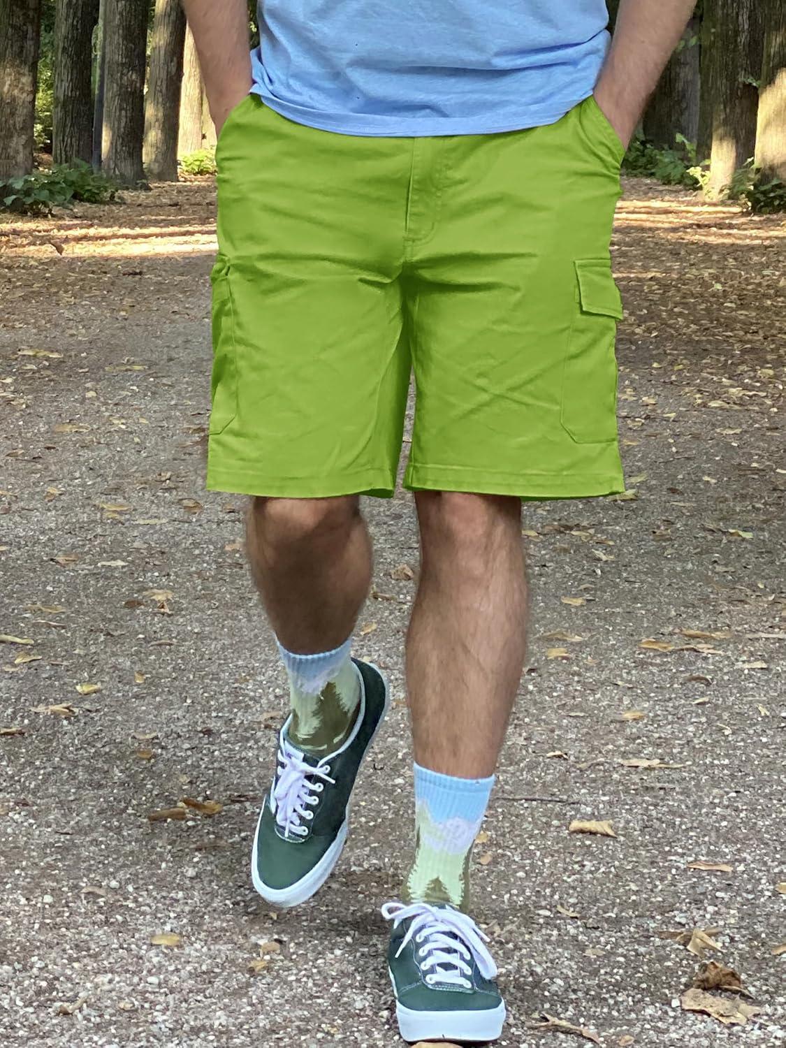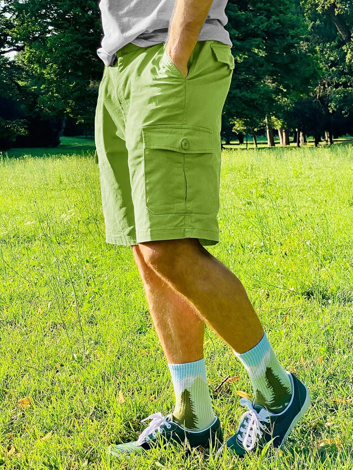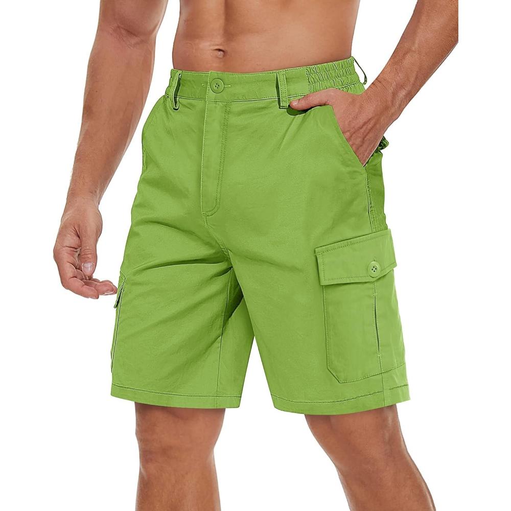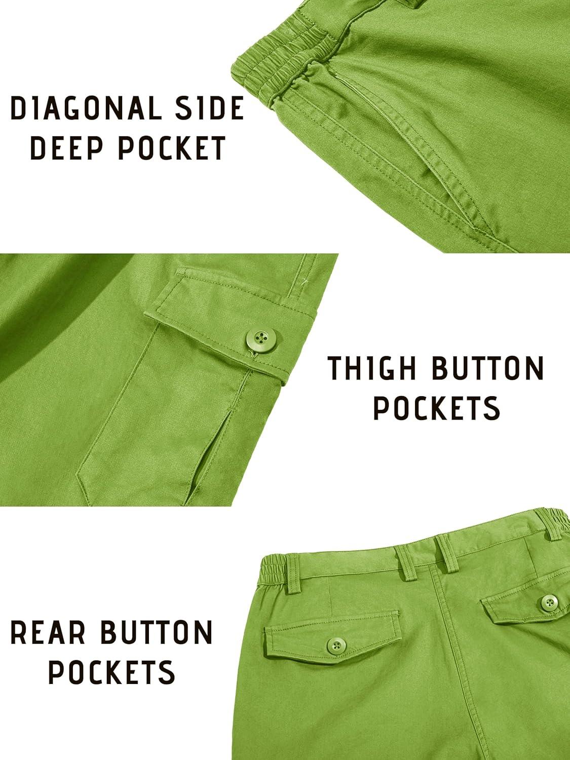TACVASEN Men’s Cargo Short 6 Pockets Comfortable Twill Cotton Elastic Waist Causal Work Shorts(Fruit Green)