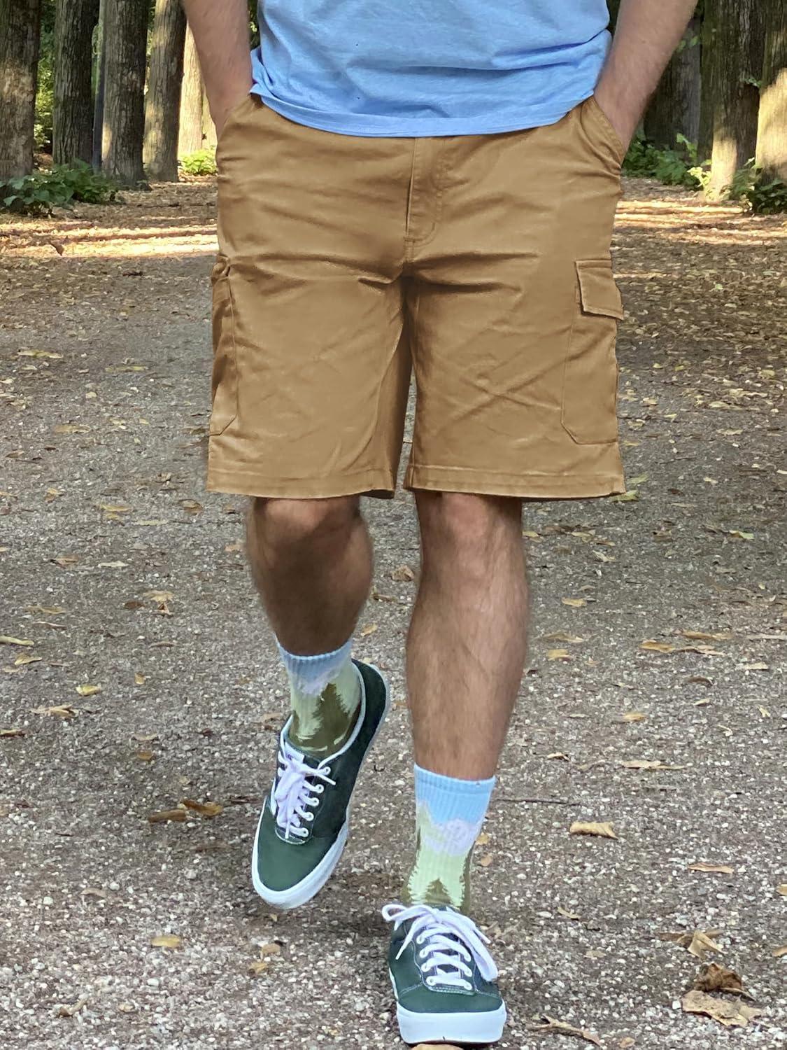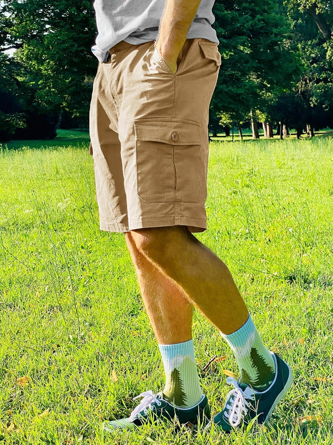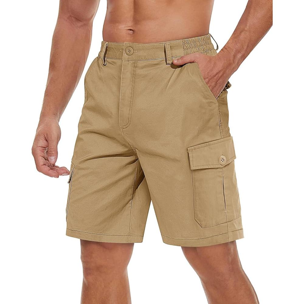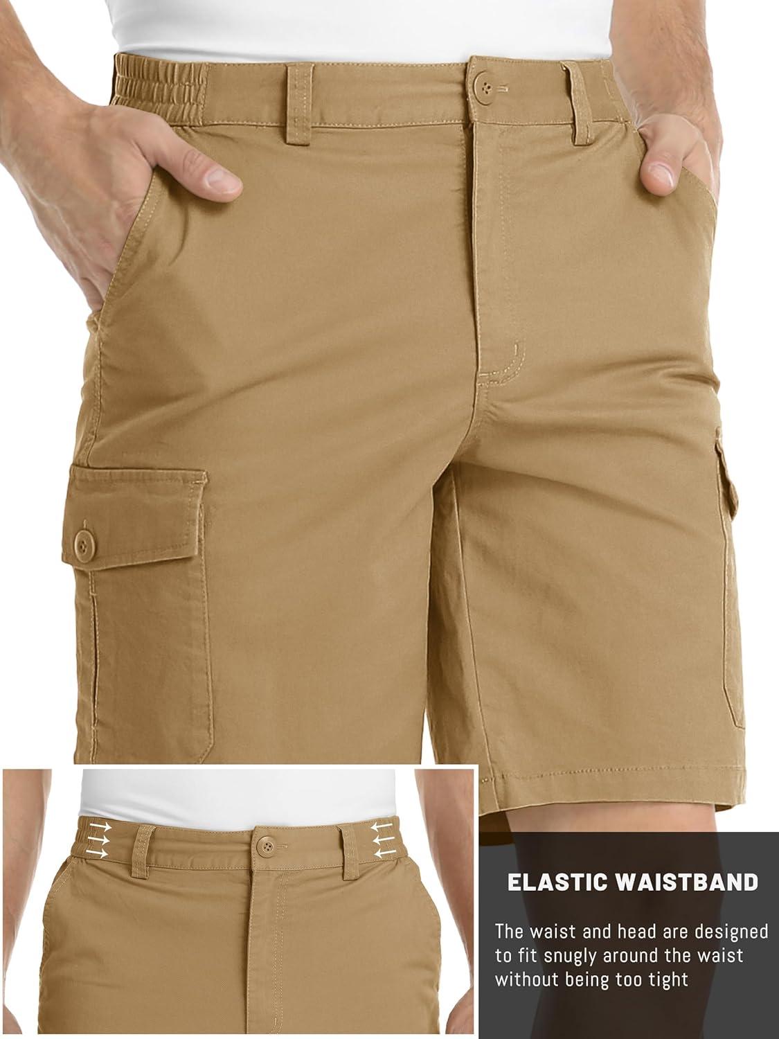 TACVASEN Men’s Cargo Short 6 Pockets Comfortable Twill Cotton Elastic Waist Causal Work Shorts(Khaki)