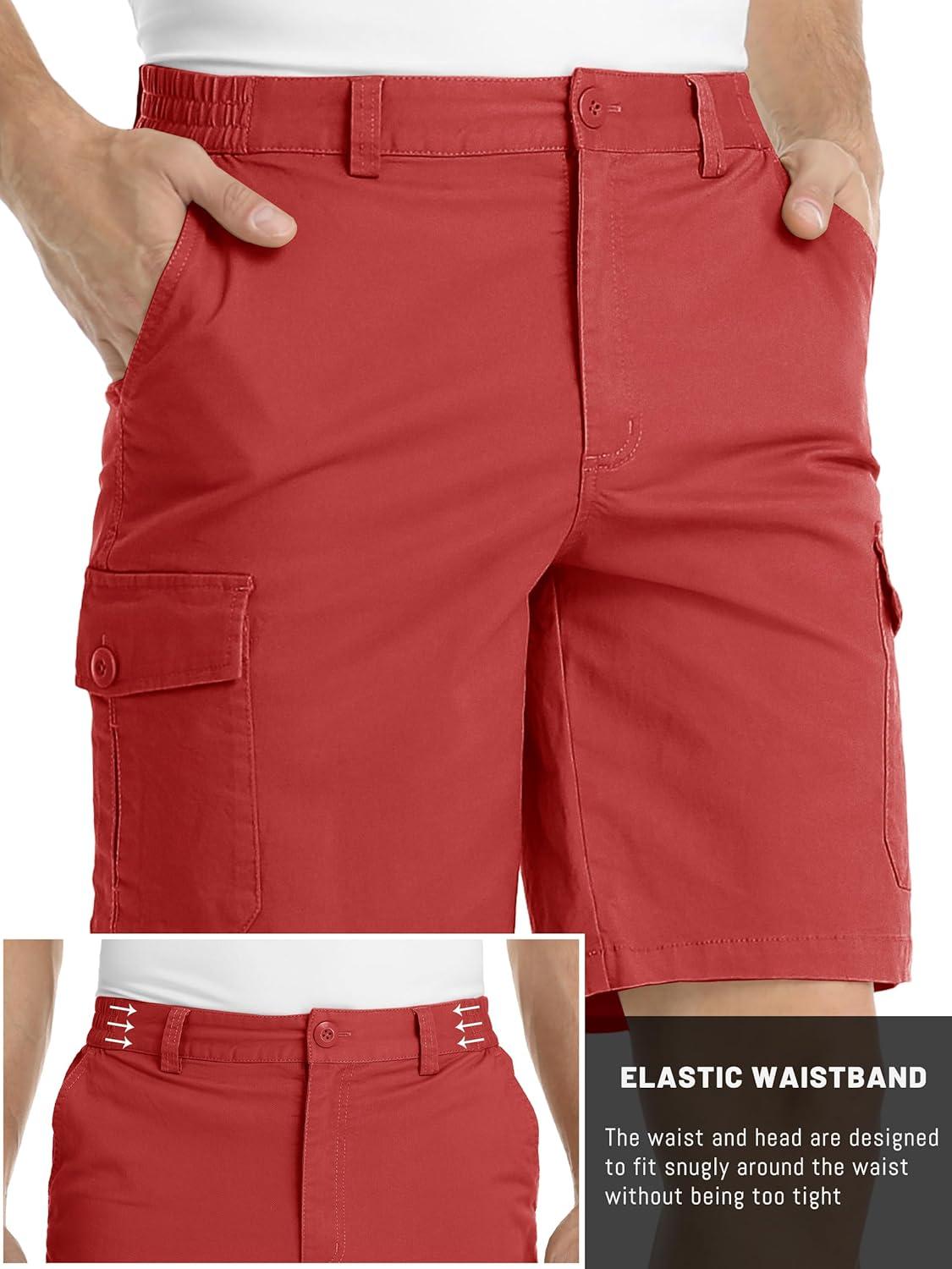 TACVASEN Men’s Cargo Short 6 Pockets Comfortable Twill Cotton Elastic Waist Causal Work Shorts(Magenta)