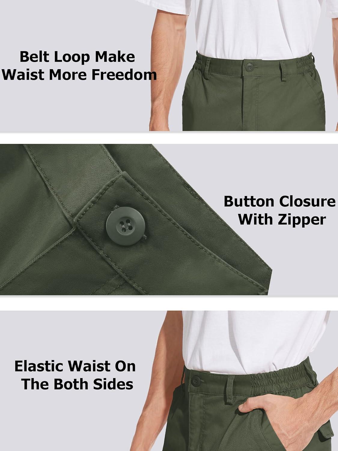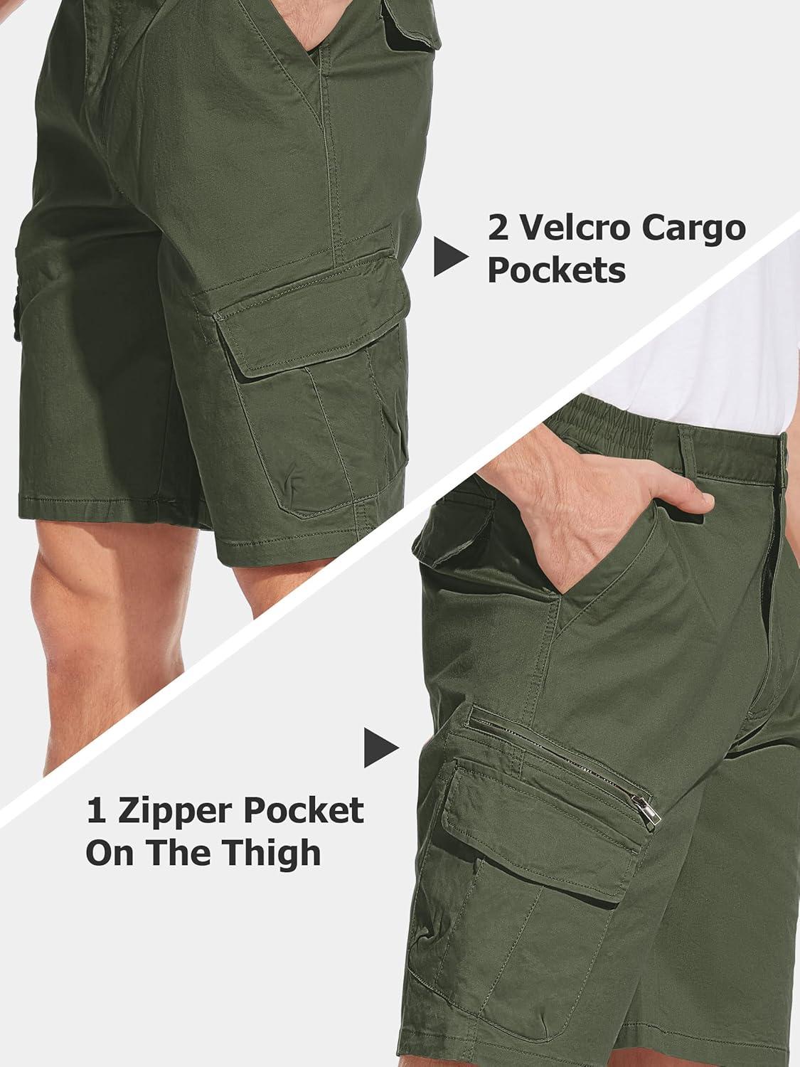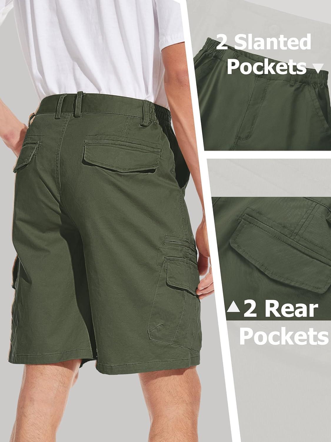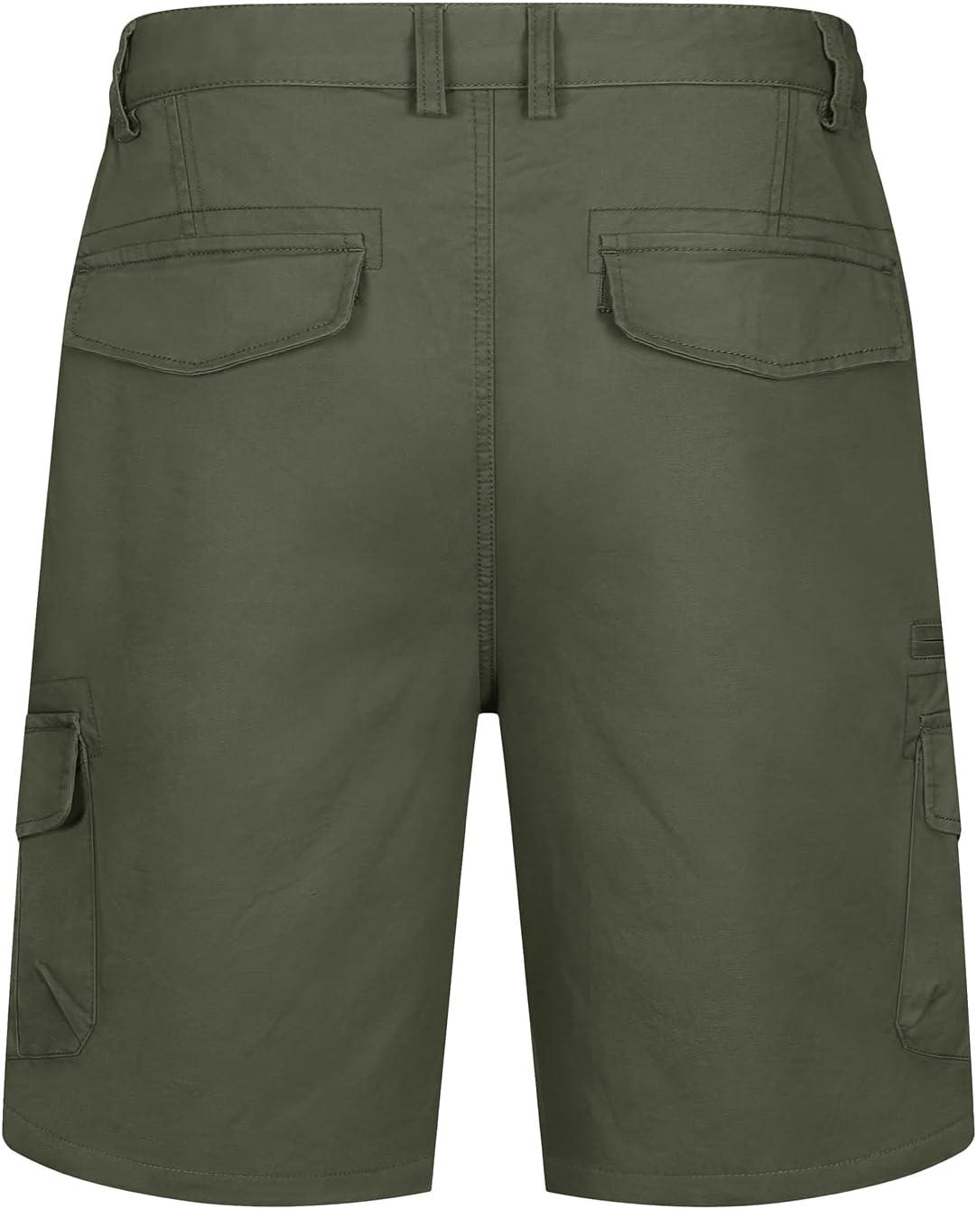 TACVASEN Men’s Cargo Short 7 Pockets Comfortable Cotton Elastic Waist Causal Work Shorts(Army Green)