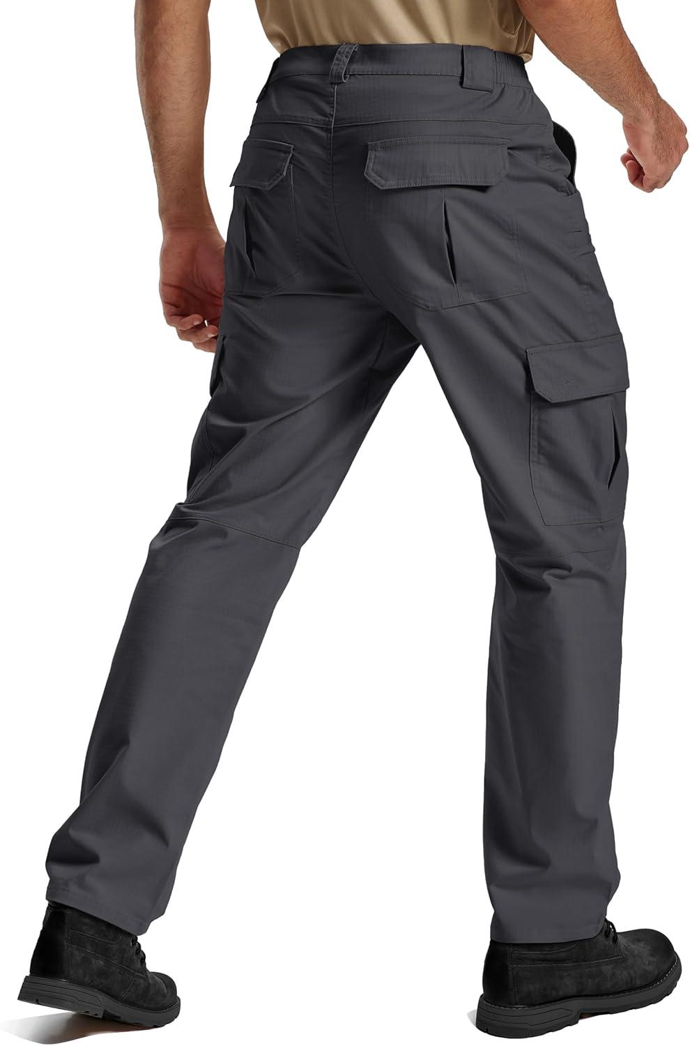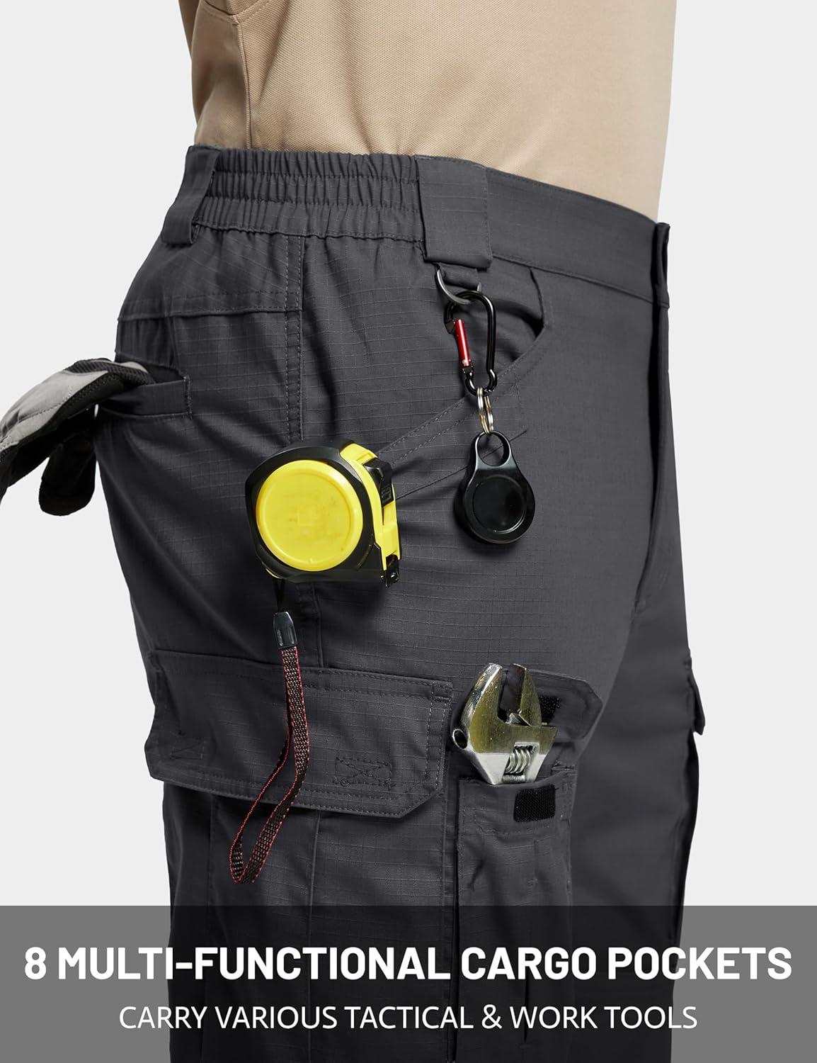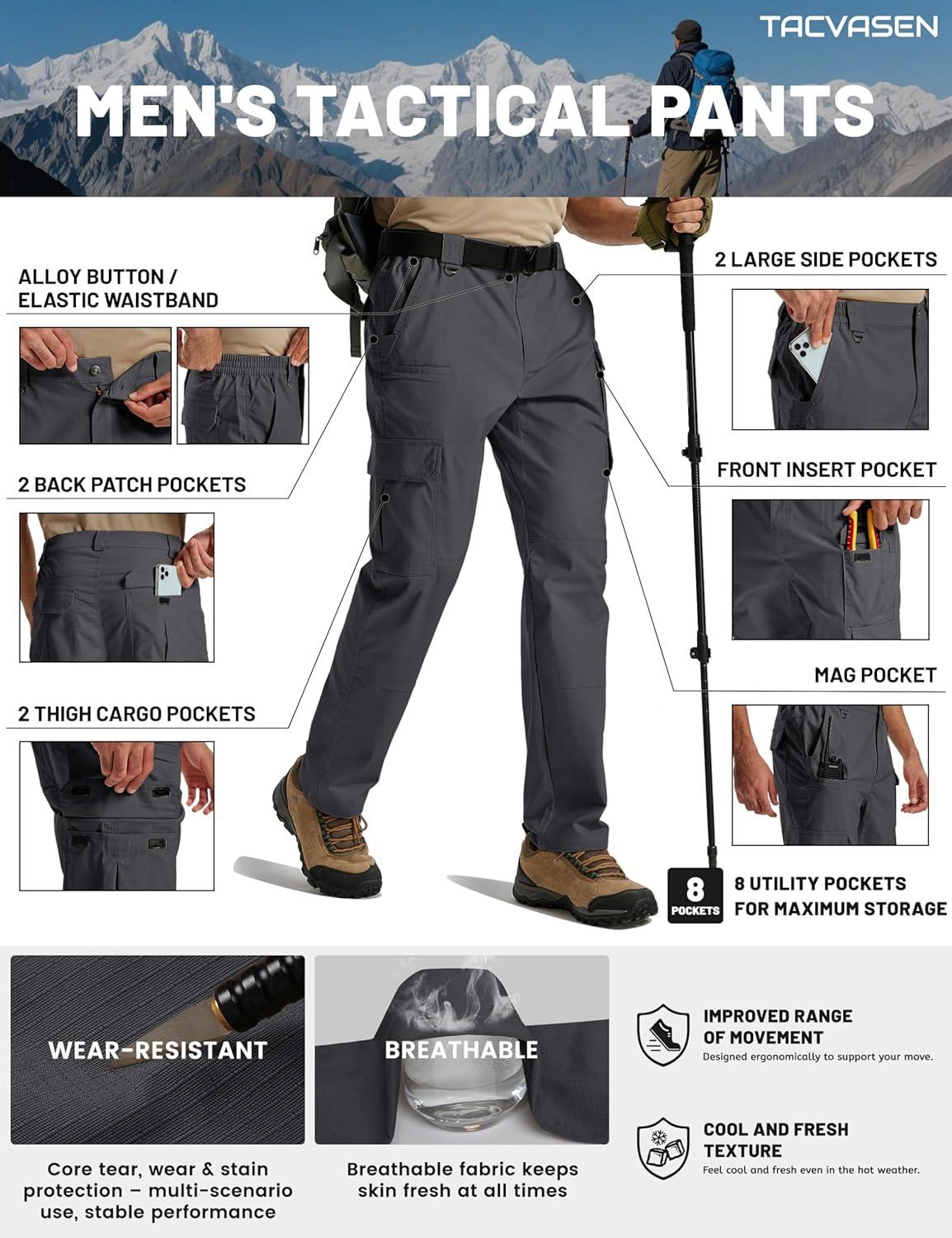 TACVASEN Mens Cargo Work Pants Hiking Tactical Waterproof Ripstop Breathable Stretch Pants with 8 Pockets(No Belt)(Dark Grey)
