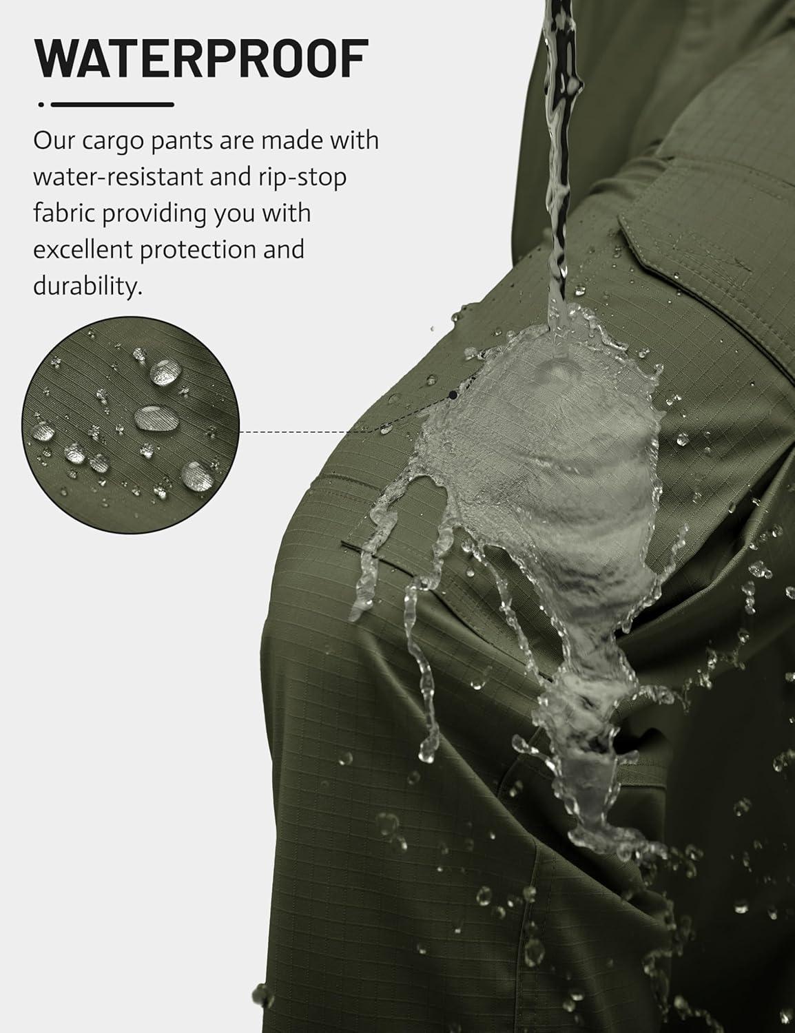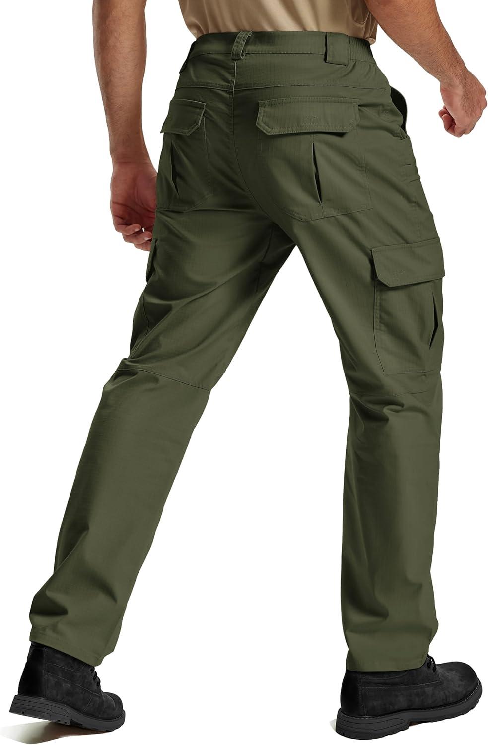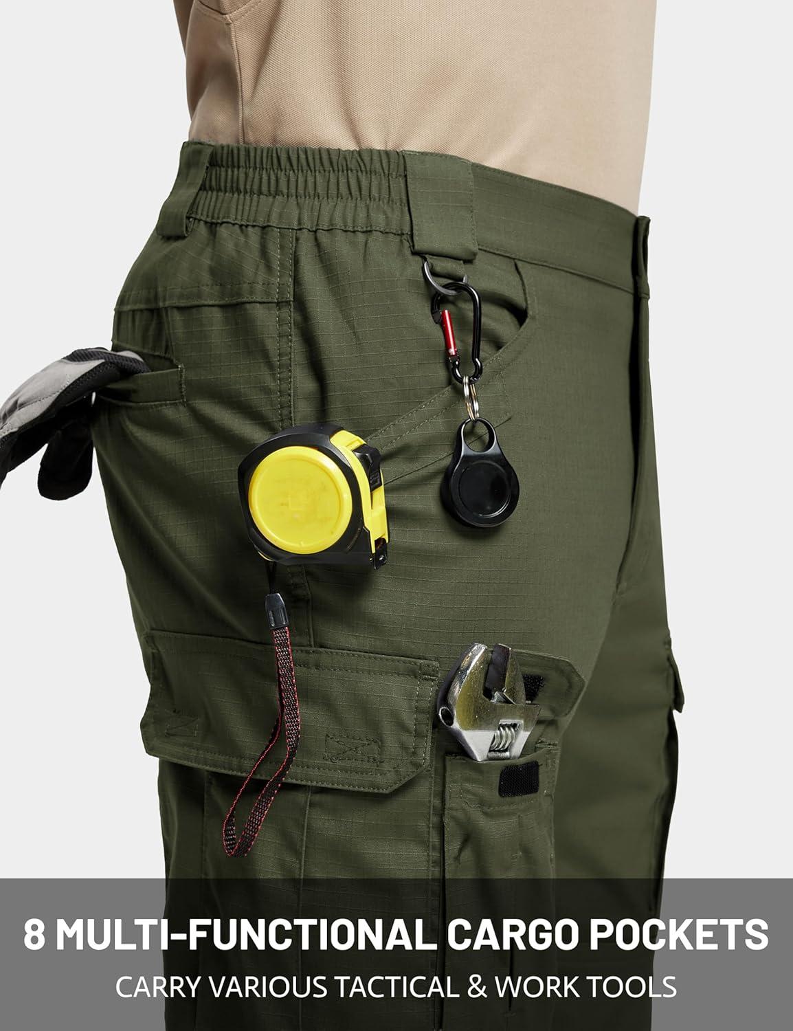 TACVASEN Mens Cargo Work Pants Hiking Tactical Waterproof Ripstop Breathable Stretch Pants with 8 Pockets(No Belt)(Green)