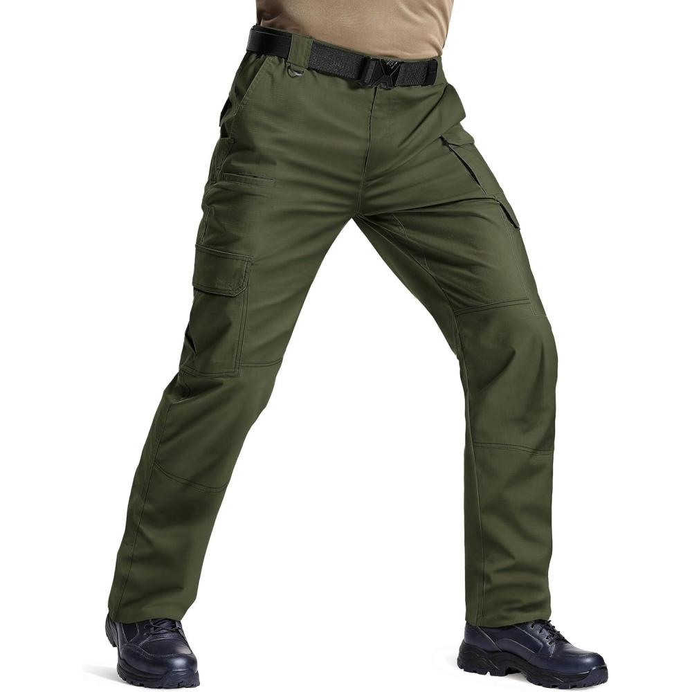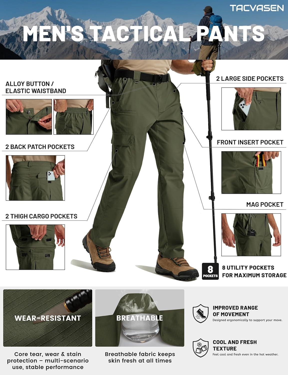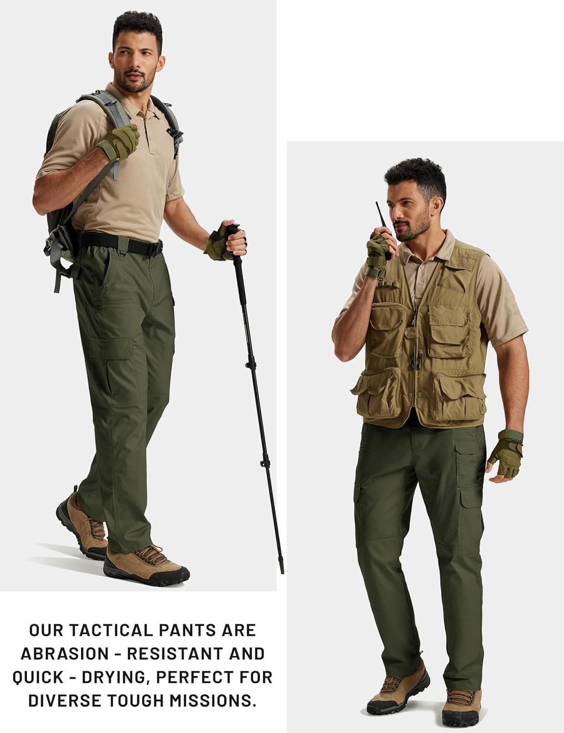 TACVASEN Mens Cargo Work Pants Hiking Tactical Waterproof Ripstop Breathable Stretch Pants with 8 Pockets(No Belt)(Green)