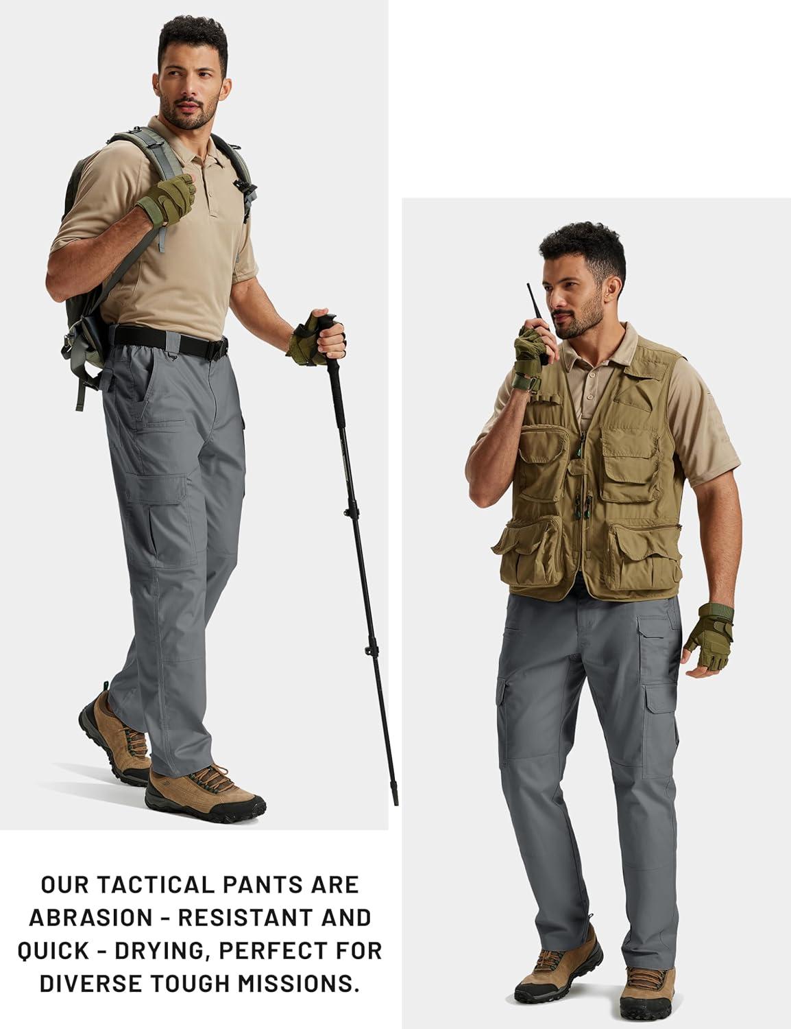 TACVASEN Mens Cargo Work Pants Hiking Tactical Waterproof Ripstop Breathable Stretch Pants with 8 Pockets(No Belt)(Medium Grey)