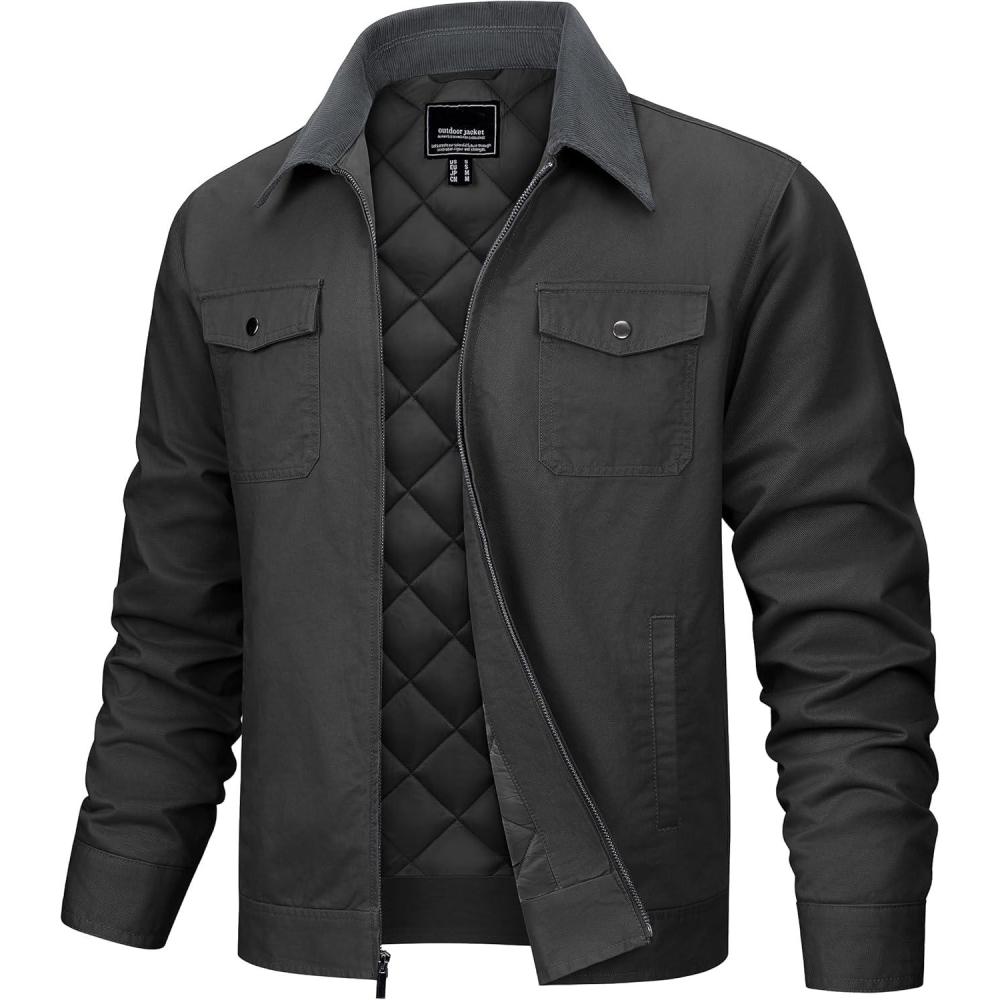TACVASEN Men’s Casual Quilted Cotton Jacket Cargo Corduroy Collar Jacket Work Shacket with 5 Pockets for Fall and Winter(Darkgrey)