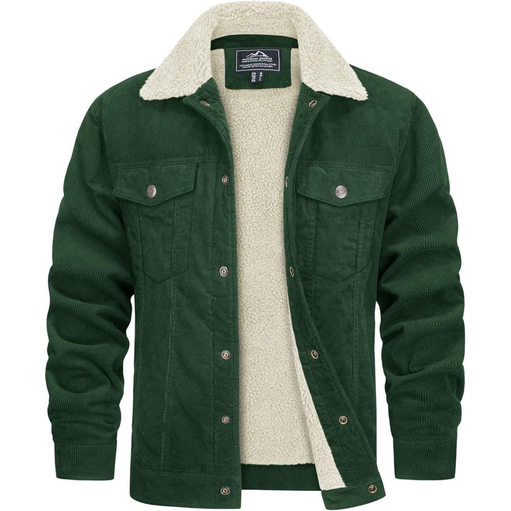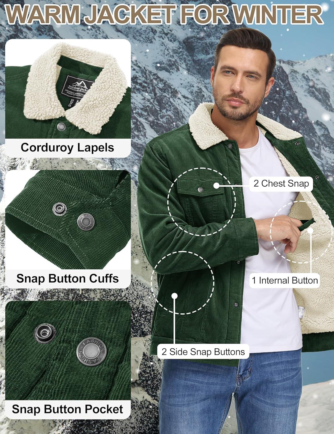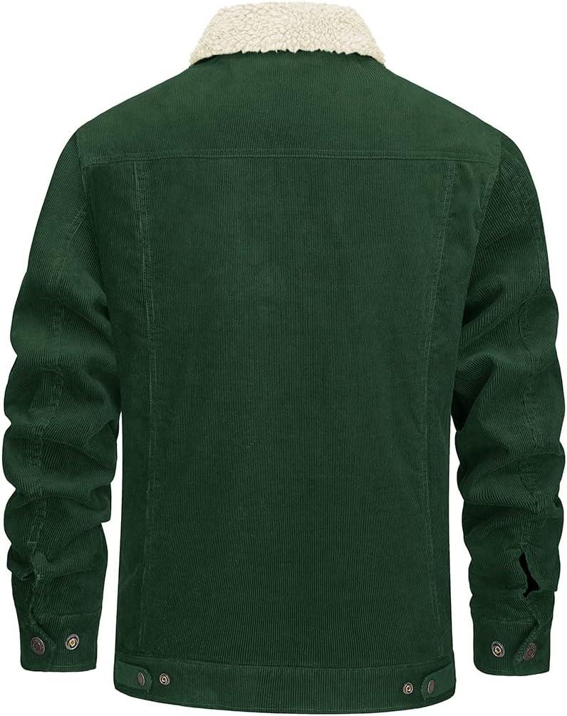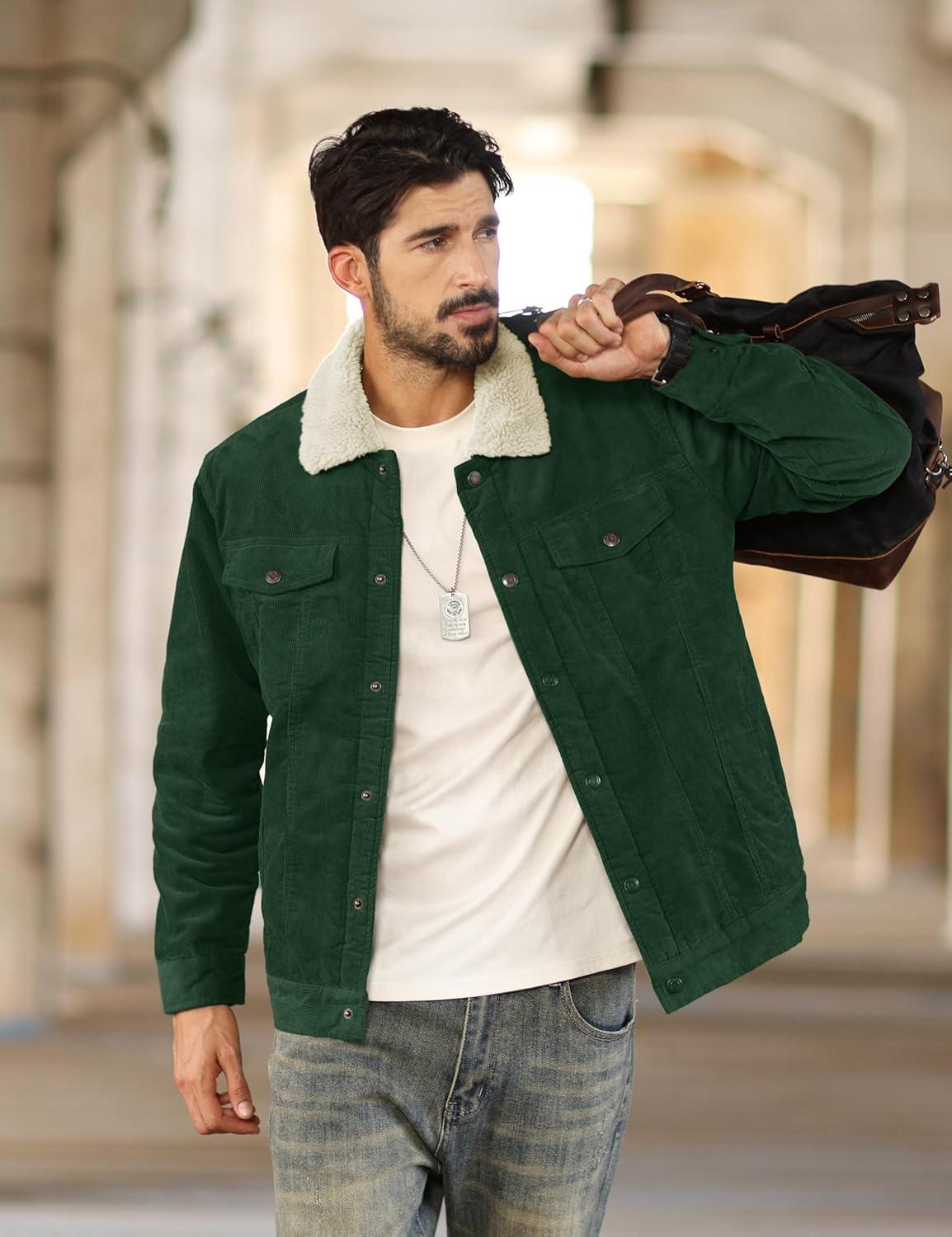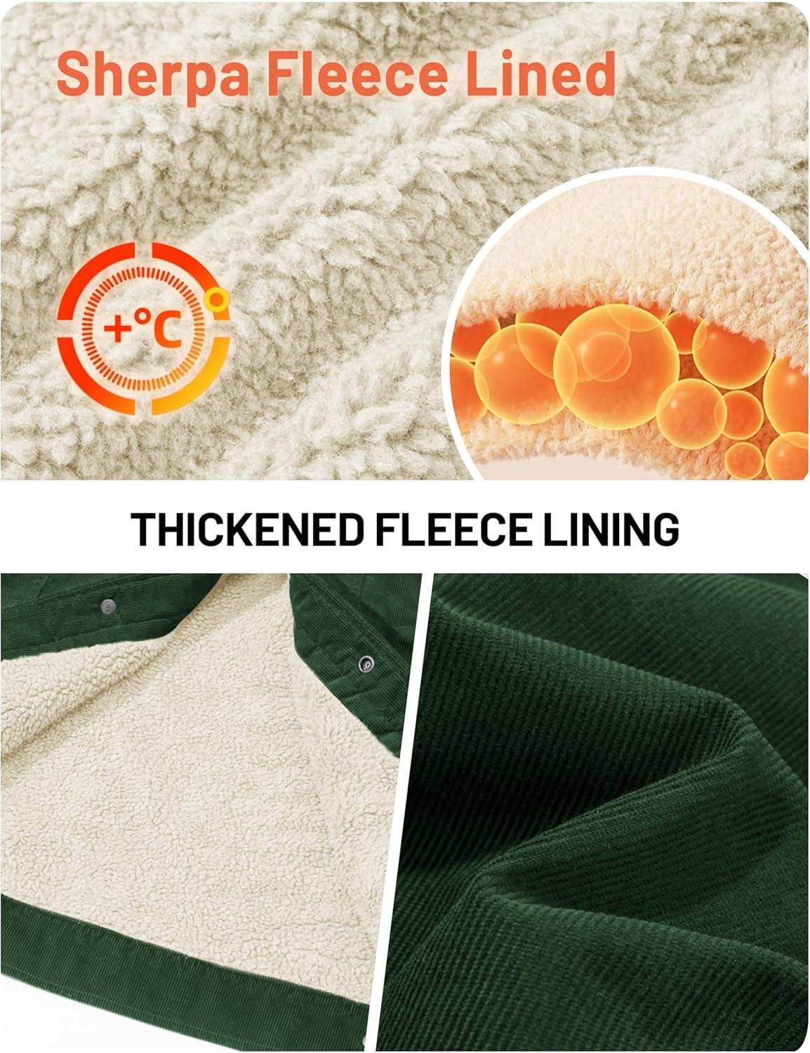 TACVASEN Men’s Corduroy Jacket Fleece Sherpa Lined Winter Coats Warm Cotton Casual Trucker Cargo Jacket with Multi Pockets(Green)