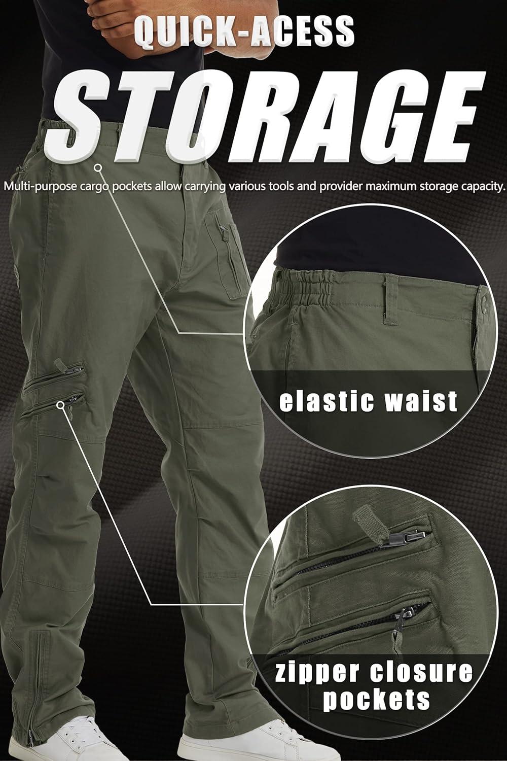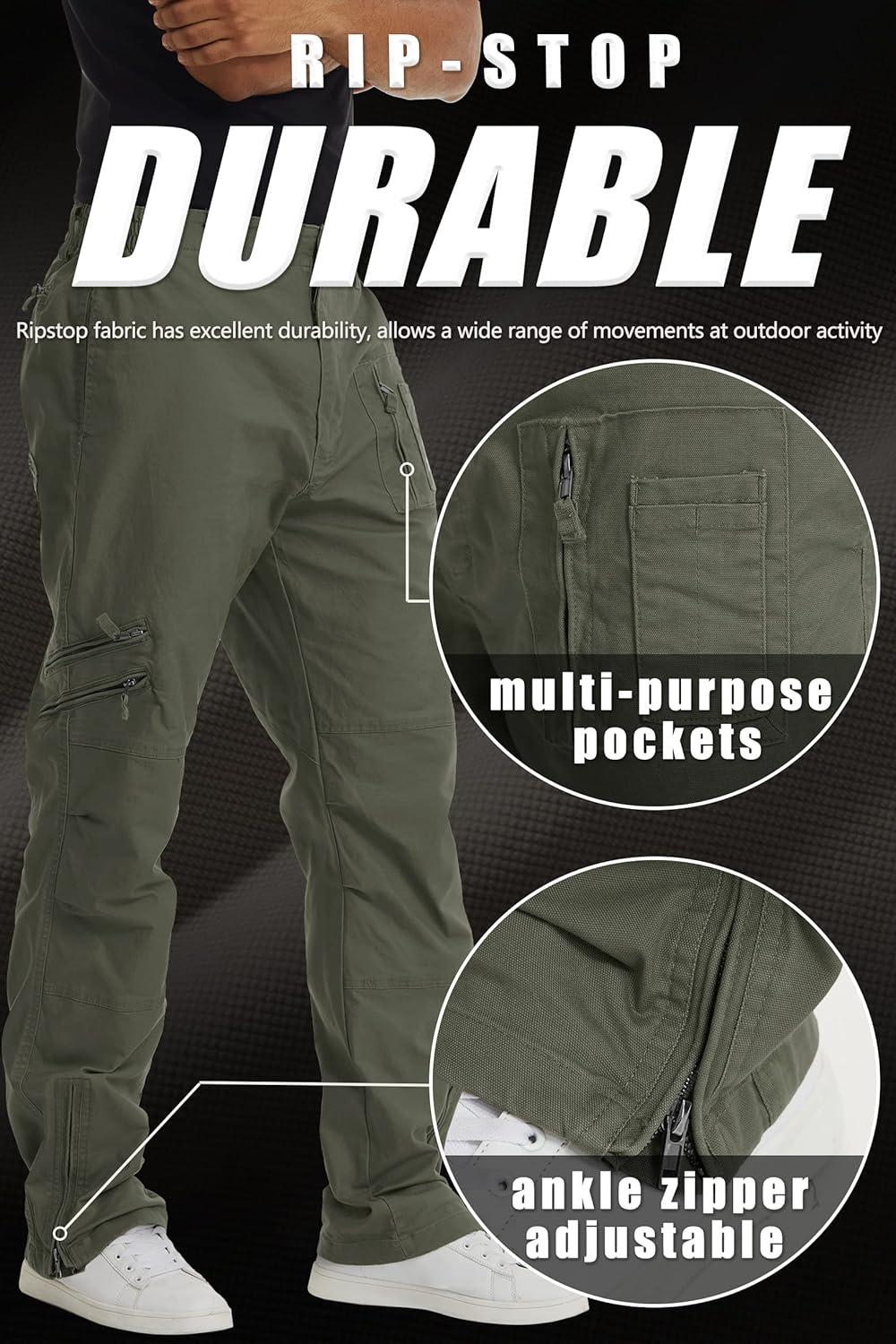 Men's Cargo Pants Casual Work Cotton Lightweight Ripstop 9 Pockets Pants
