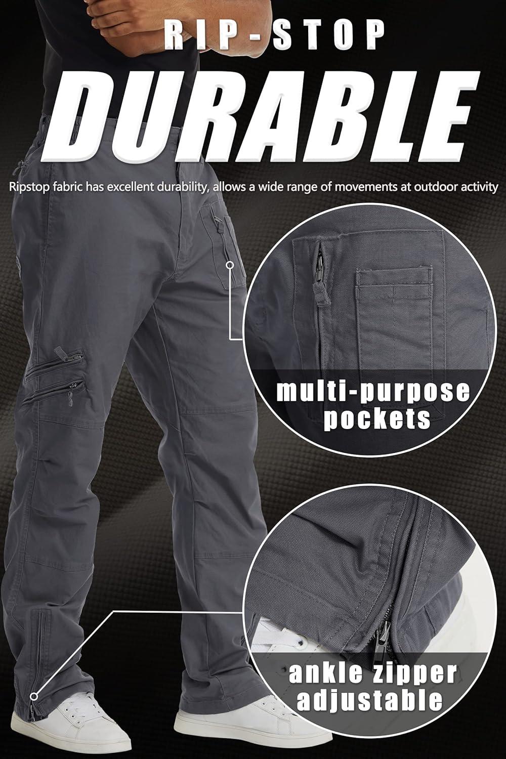 Men's Cargo Pants Casual Work Cotton Lightweight Ripstop 9 Pockets Pants
