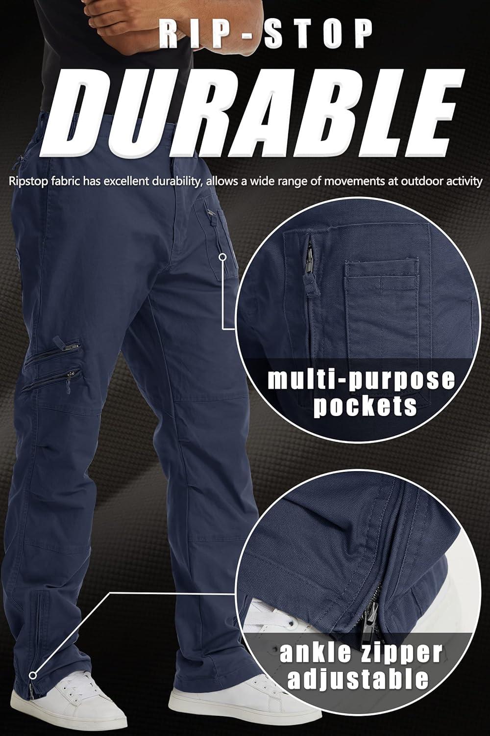 Men's Cargo Pants Casual Work Cotton Lightweight Ripstop 9 Pockets Pants