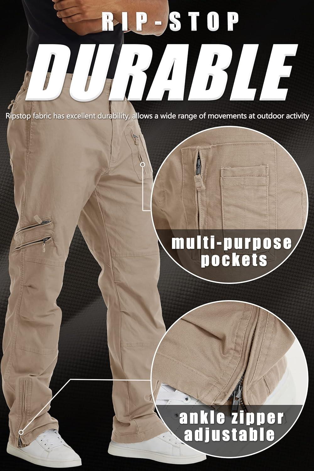 Men's Cargo Pants Casual Work Cotton Lightweight Ripstop 9 Pockets Pants