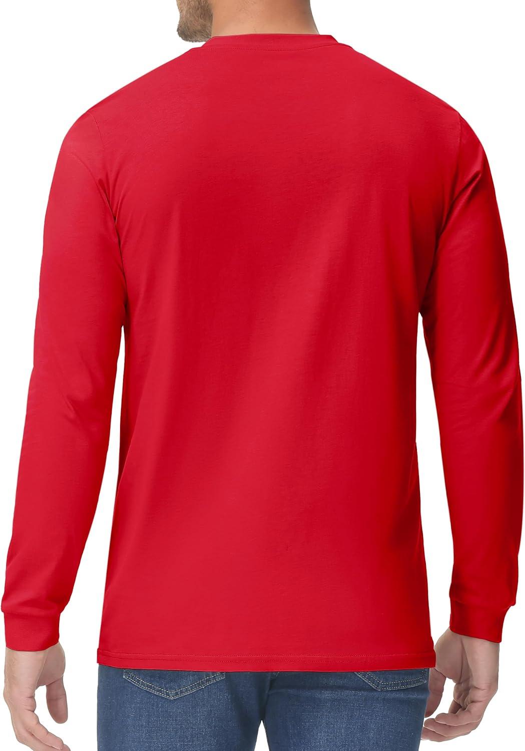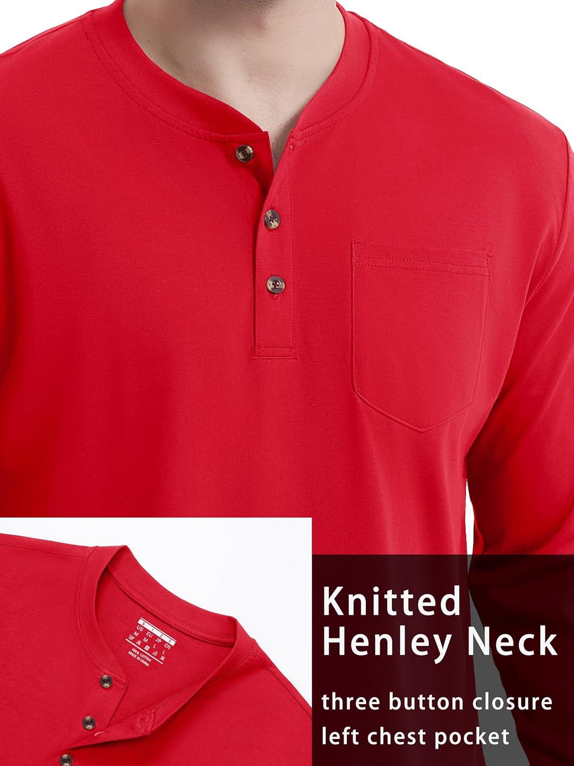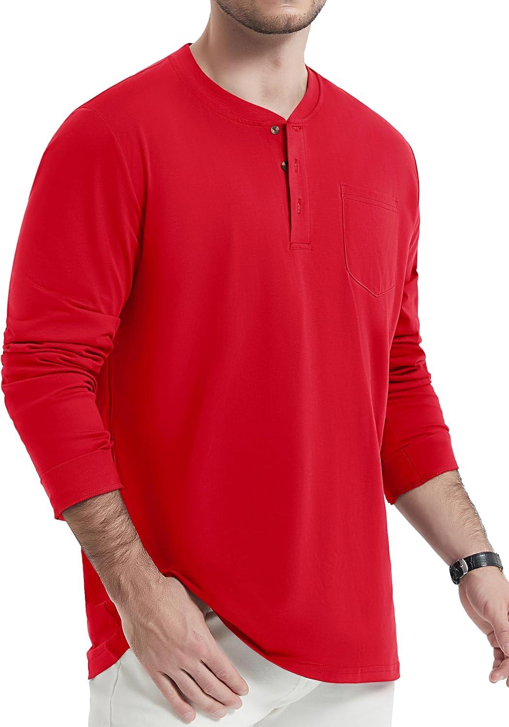 TACVASEN Men’s Cotton Henley Shirts Long Slevee 3-Button with Pocket Moisture Wicking Casual Shirts(Tomato Red)