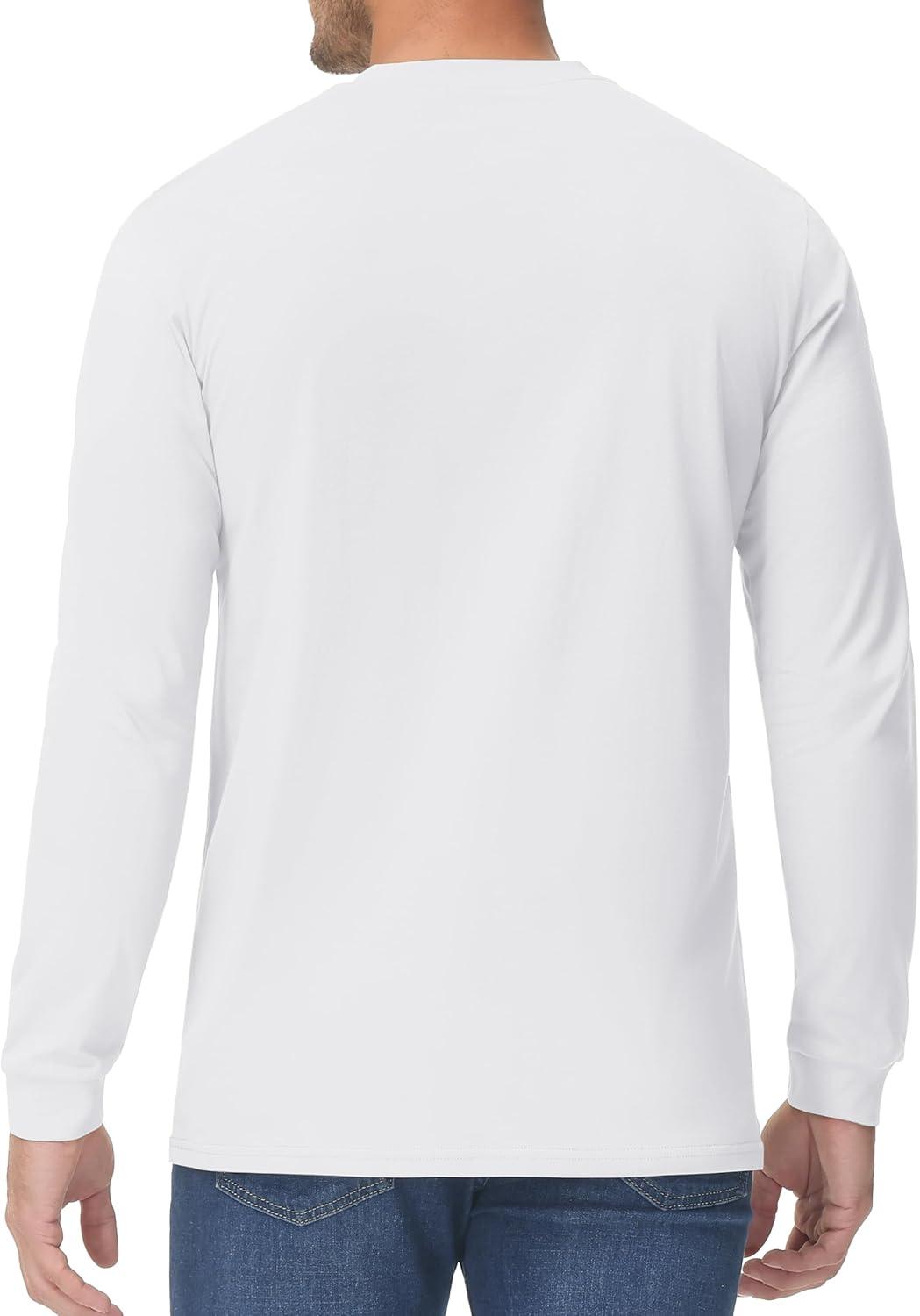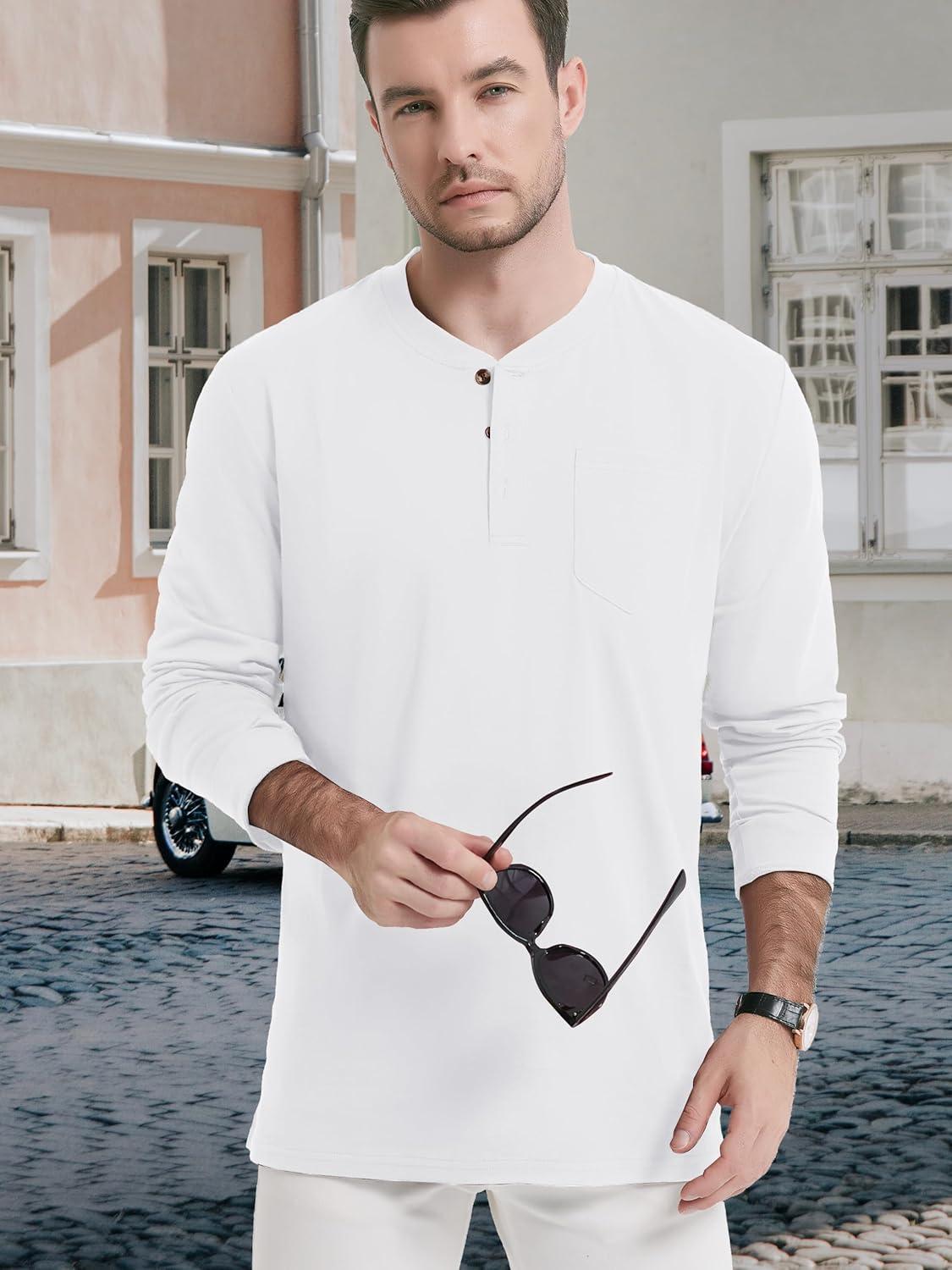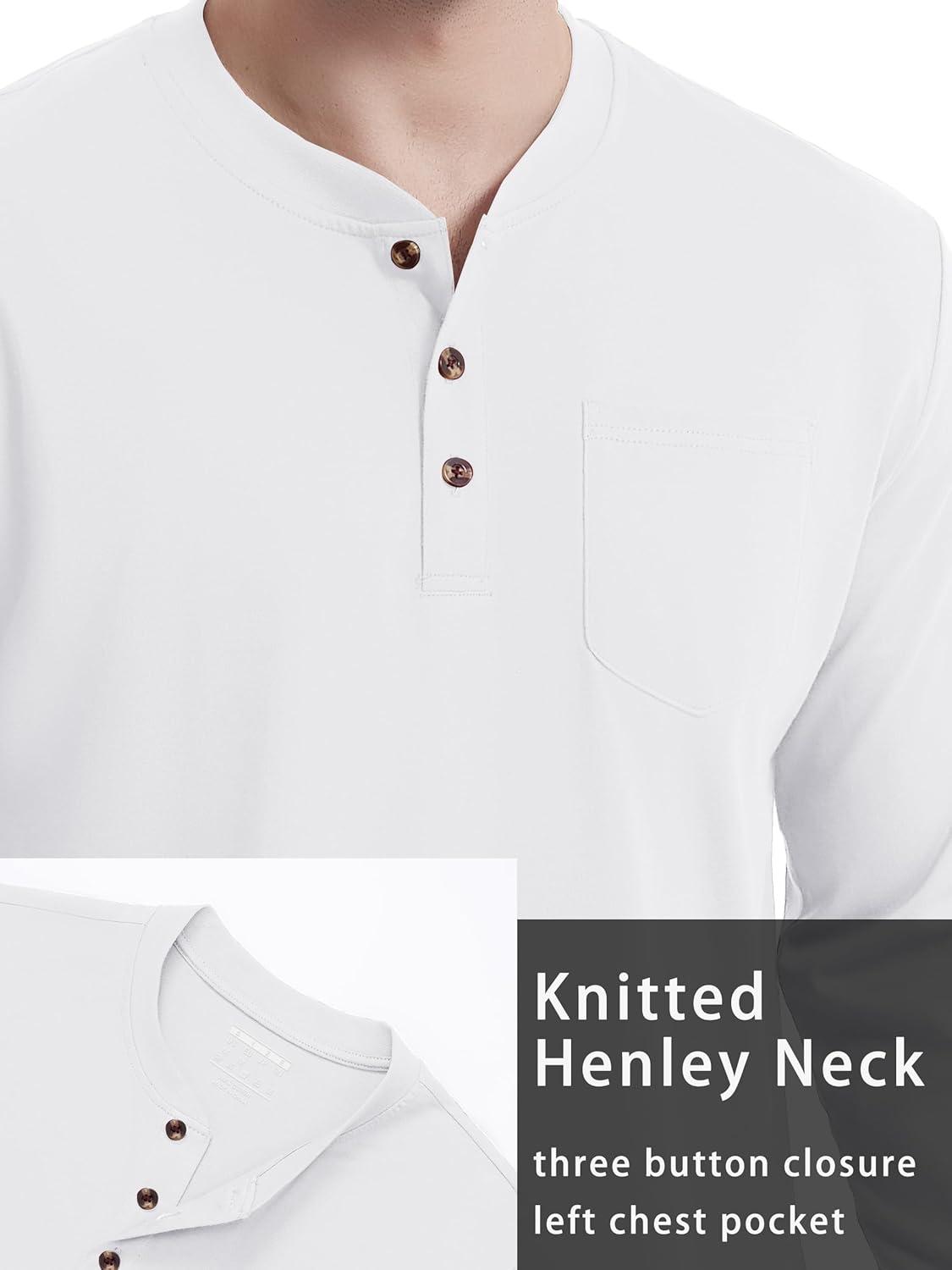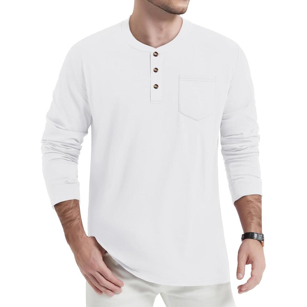 TACVASEN Men’s Cotton Henley Shirts Long Slevee 3-Button with Pocket Moisture Wicking Casual Shirts(White)