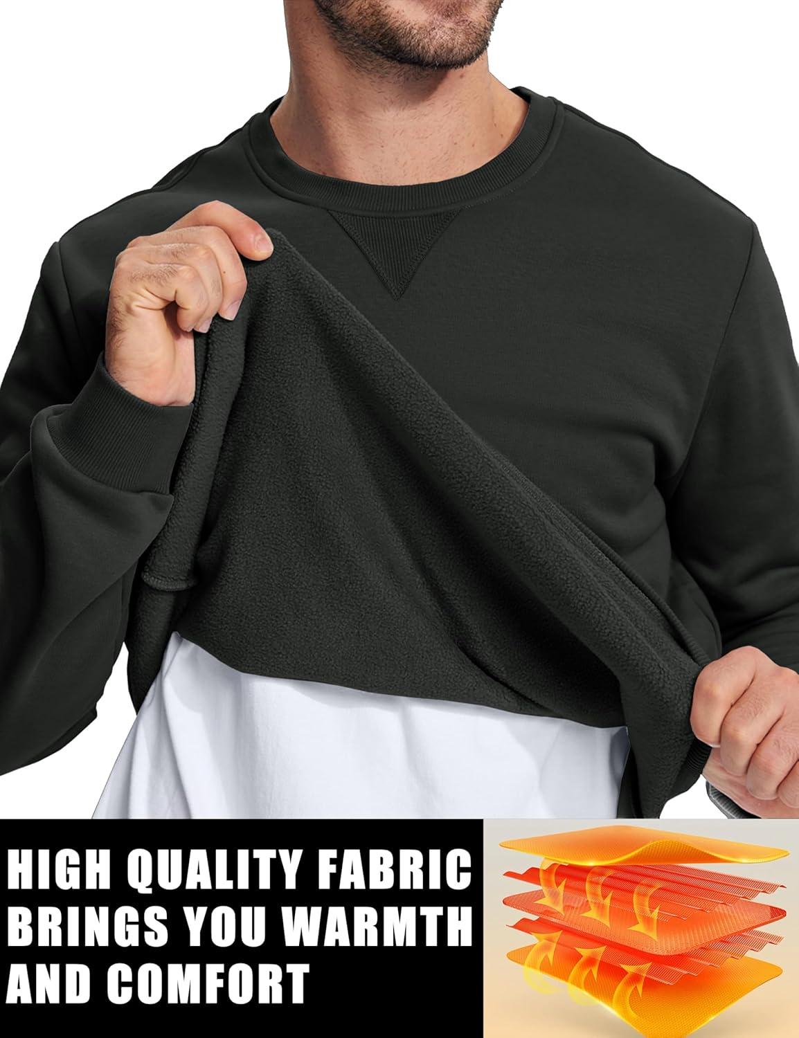 TACVASEN Men’s Crewneck Sweatshirt Fleece Lined with Pocket Winter Warm Midweight Casual Long Sleeve Pullover Sweatshirt(Black)