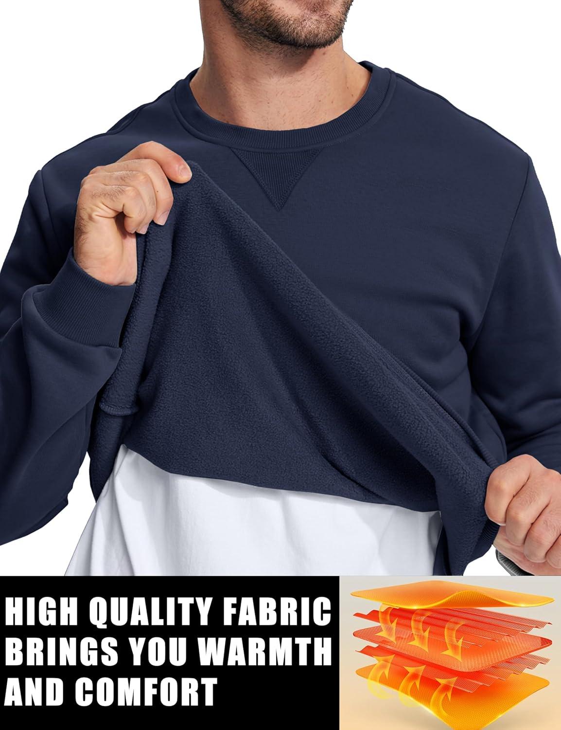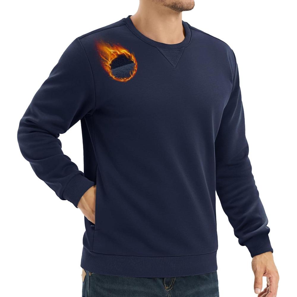 TACVASEN Men’s Crewneck Sweatshirt Fleece Lined with Pocket Winter Warm Midweight Casual Long Sleeve Pullover Sweatshirt(Navy)